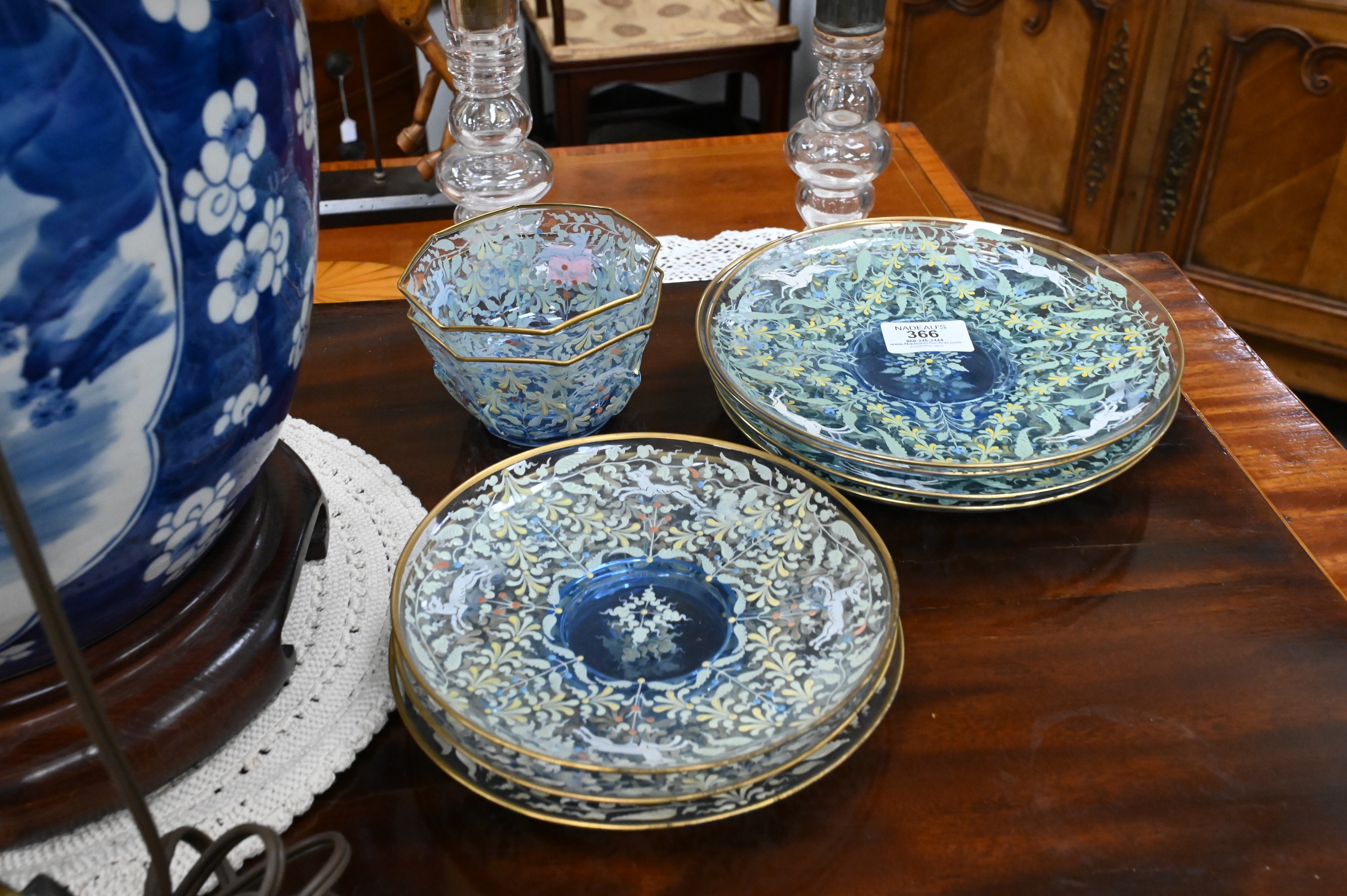 Lot 366: 30 Piece Salviati Moser “Canine and Foliate” Enameled Set