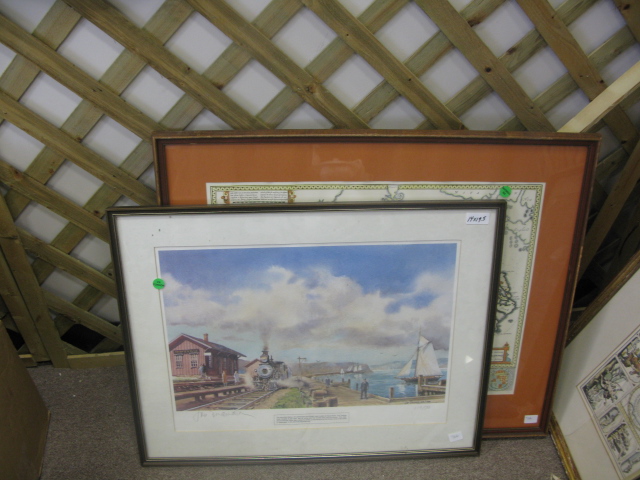 8 piece lot including 2 reproduction maps, a lighthouse, prints, mirrors, and misc.
