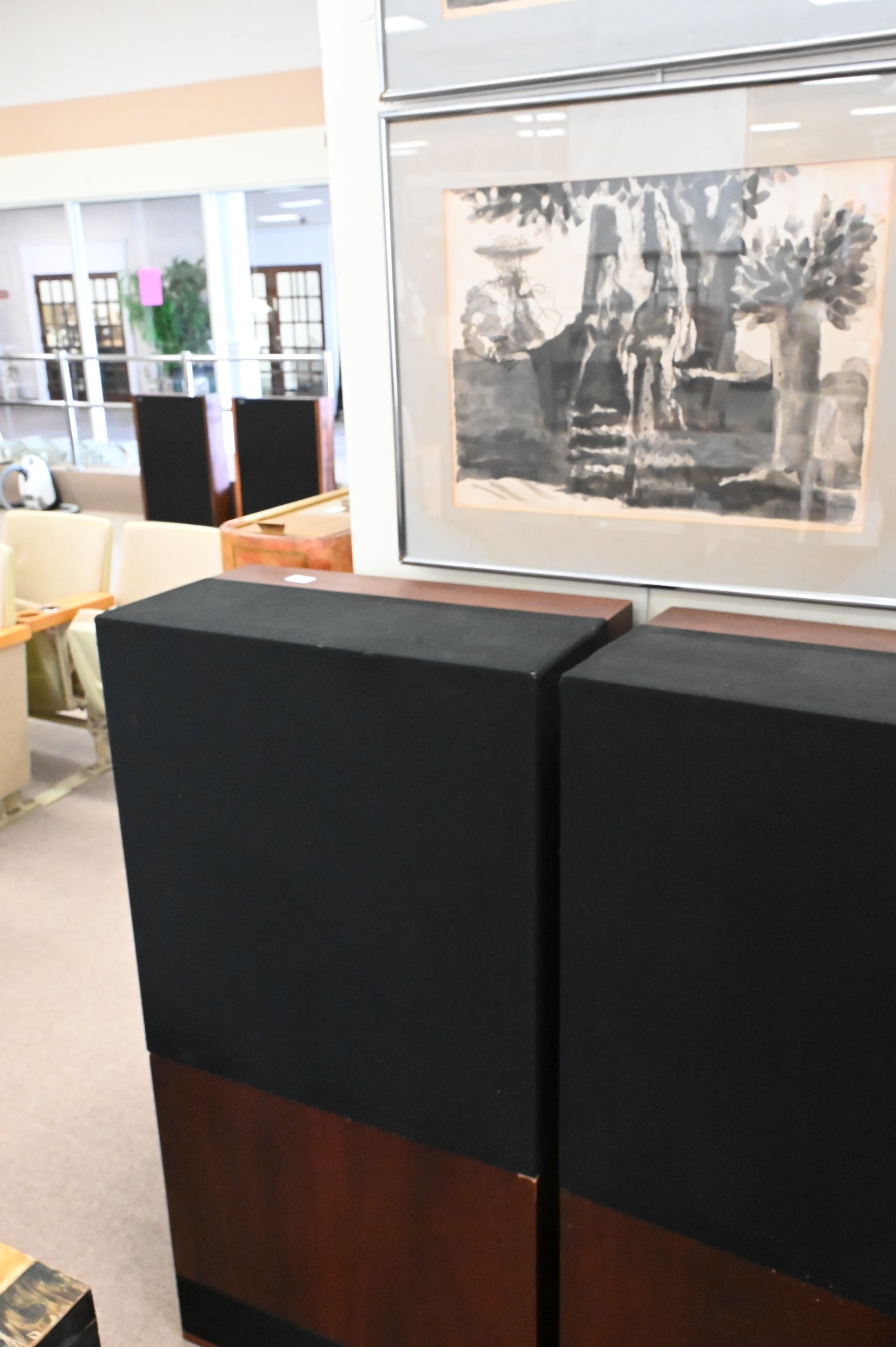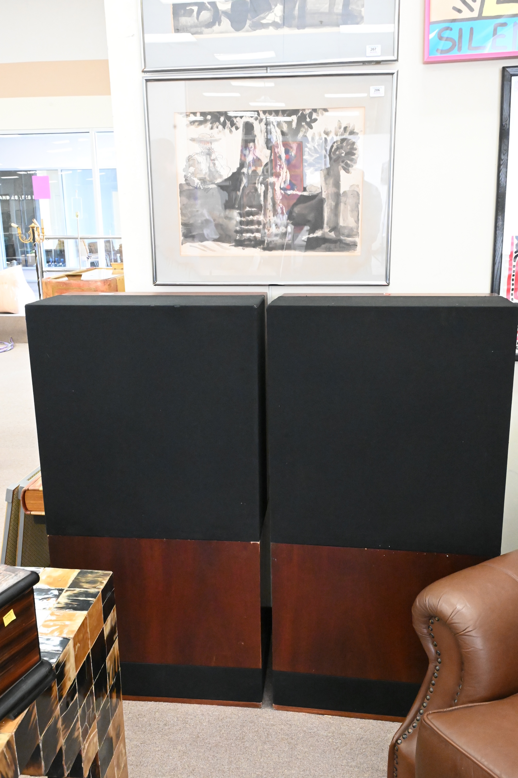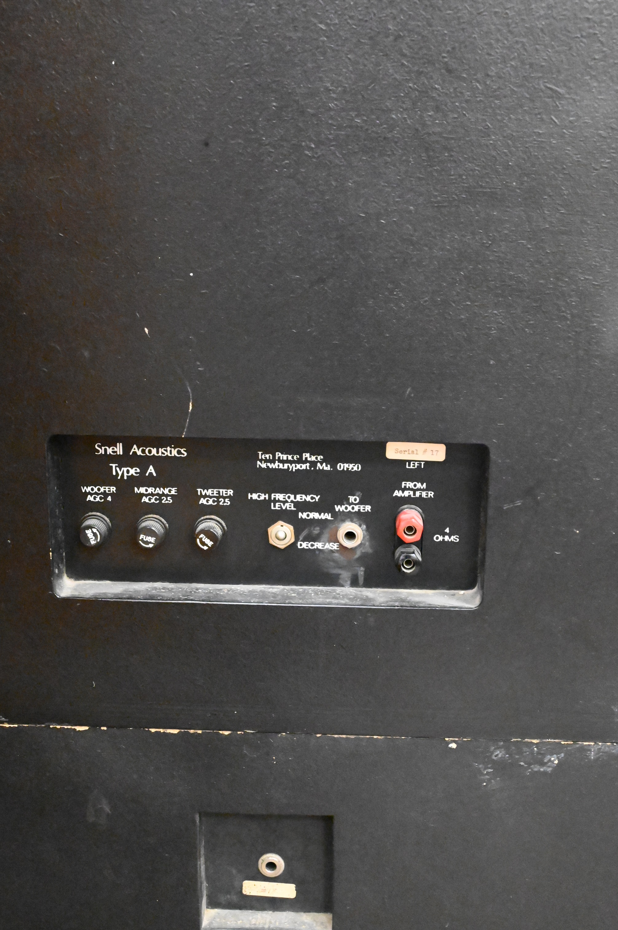 A Pair of Snell Acoustics Type A Speakers, height 47 inches, width 24 inches, depth 13 inches.