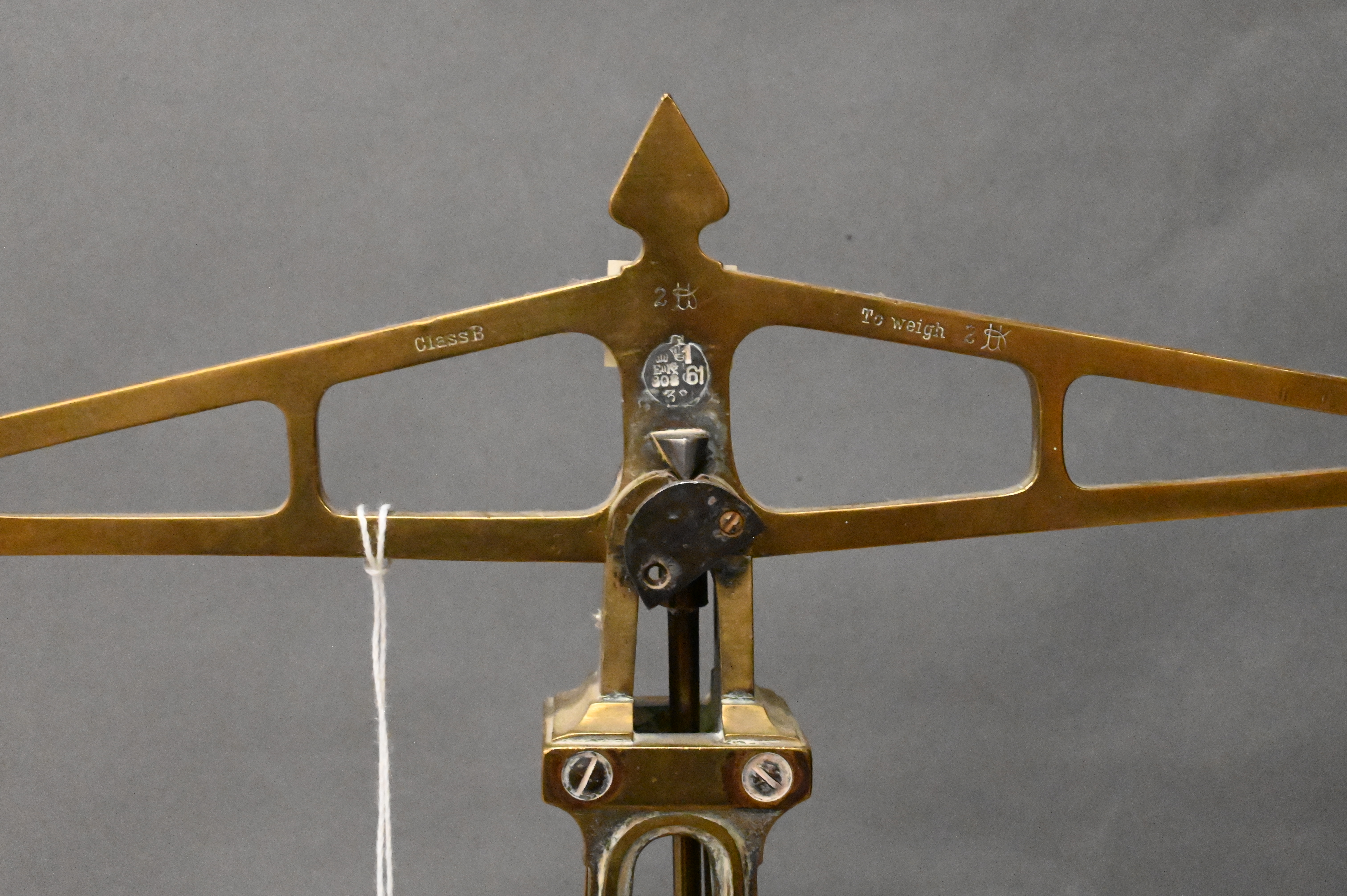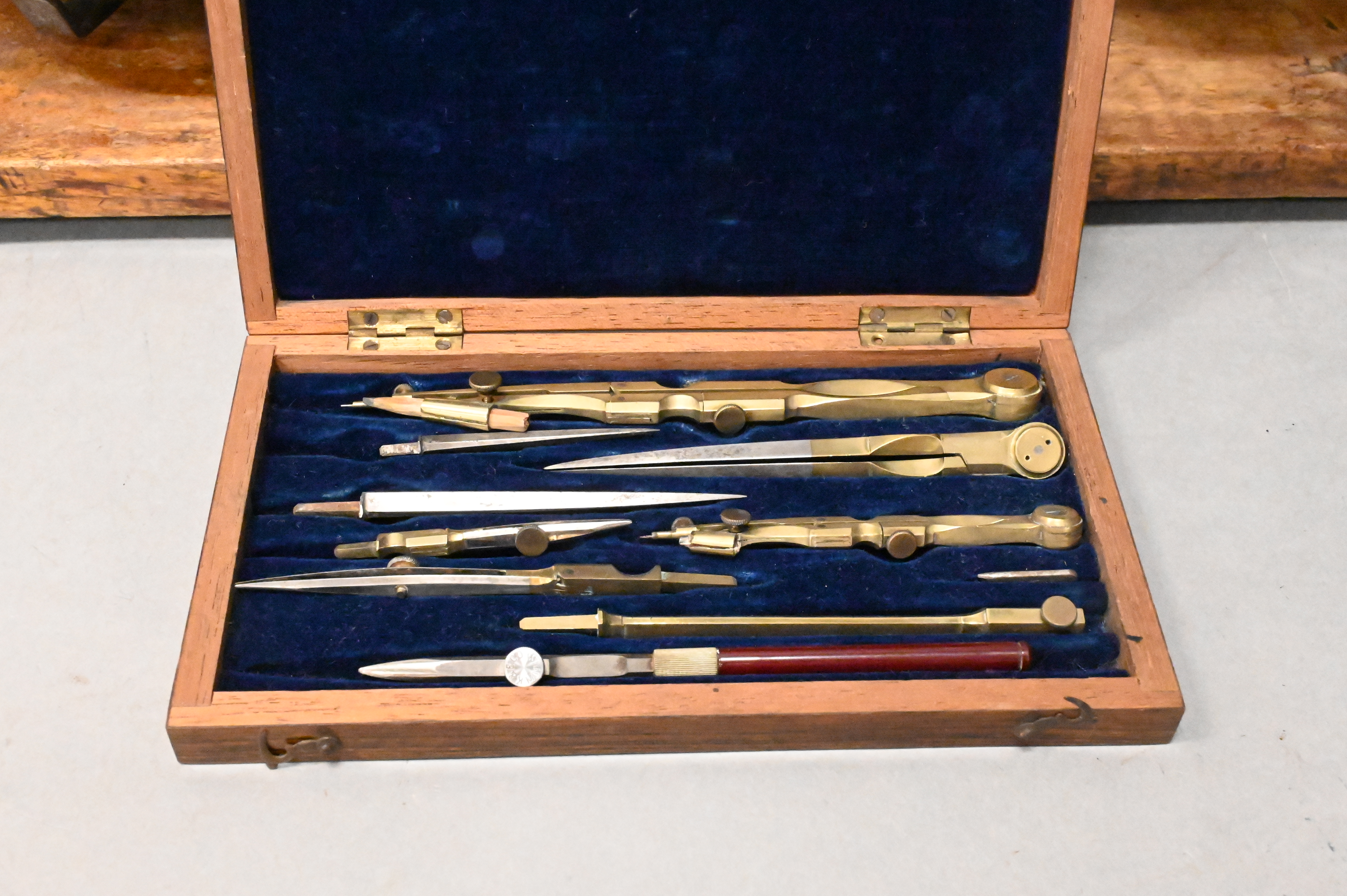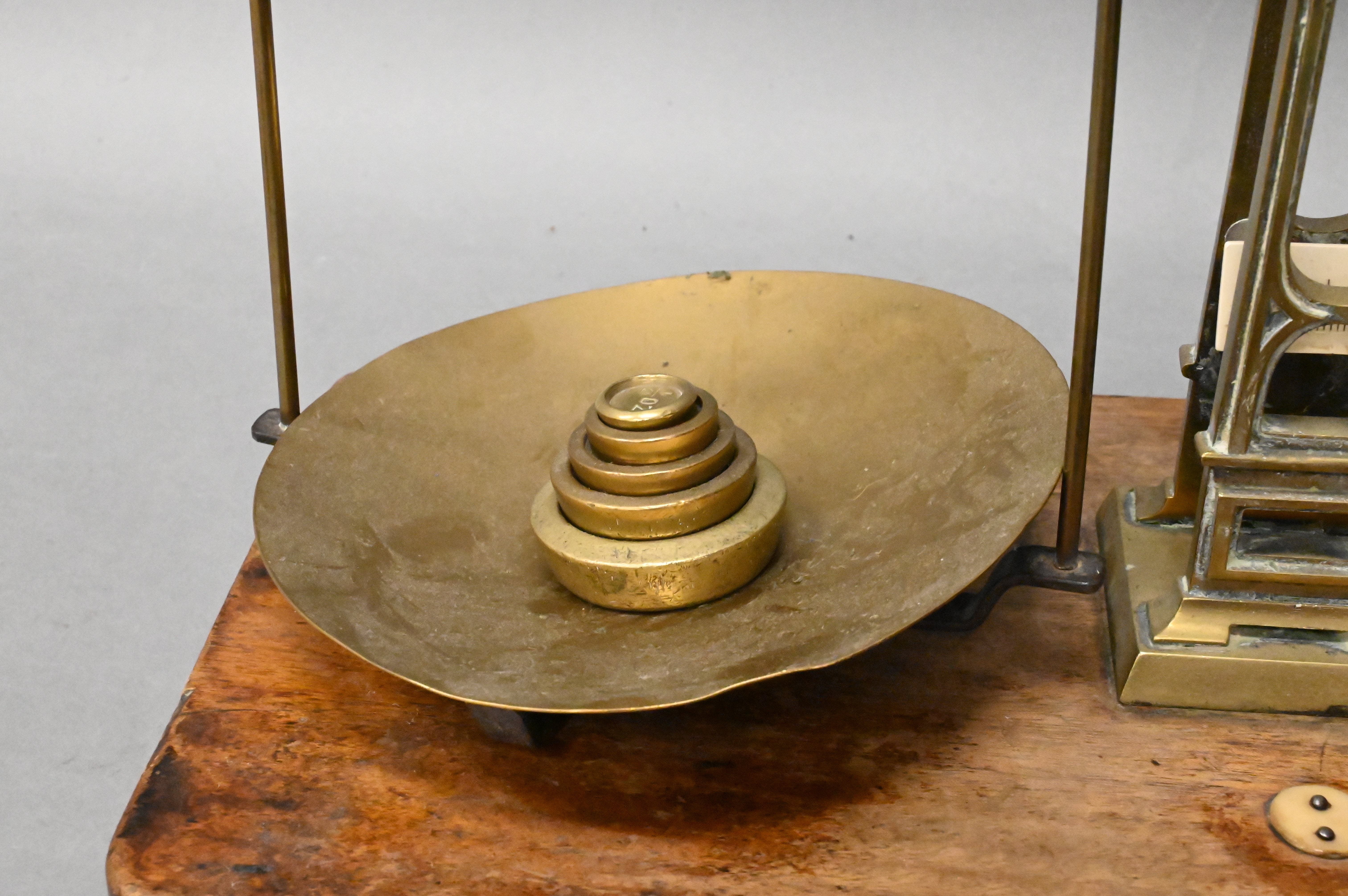 stone scale set on wood base with weights, 19th century, along with K & E Draftsman inlaid tool kit