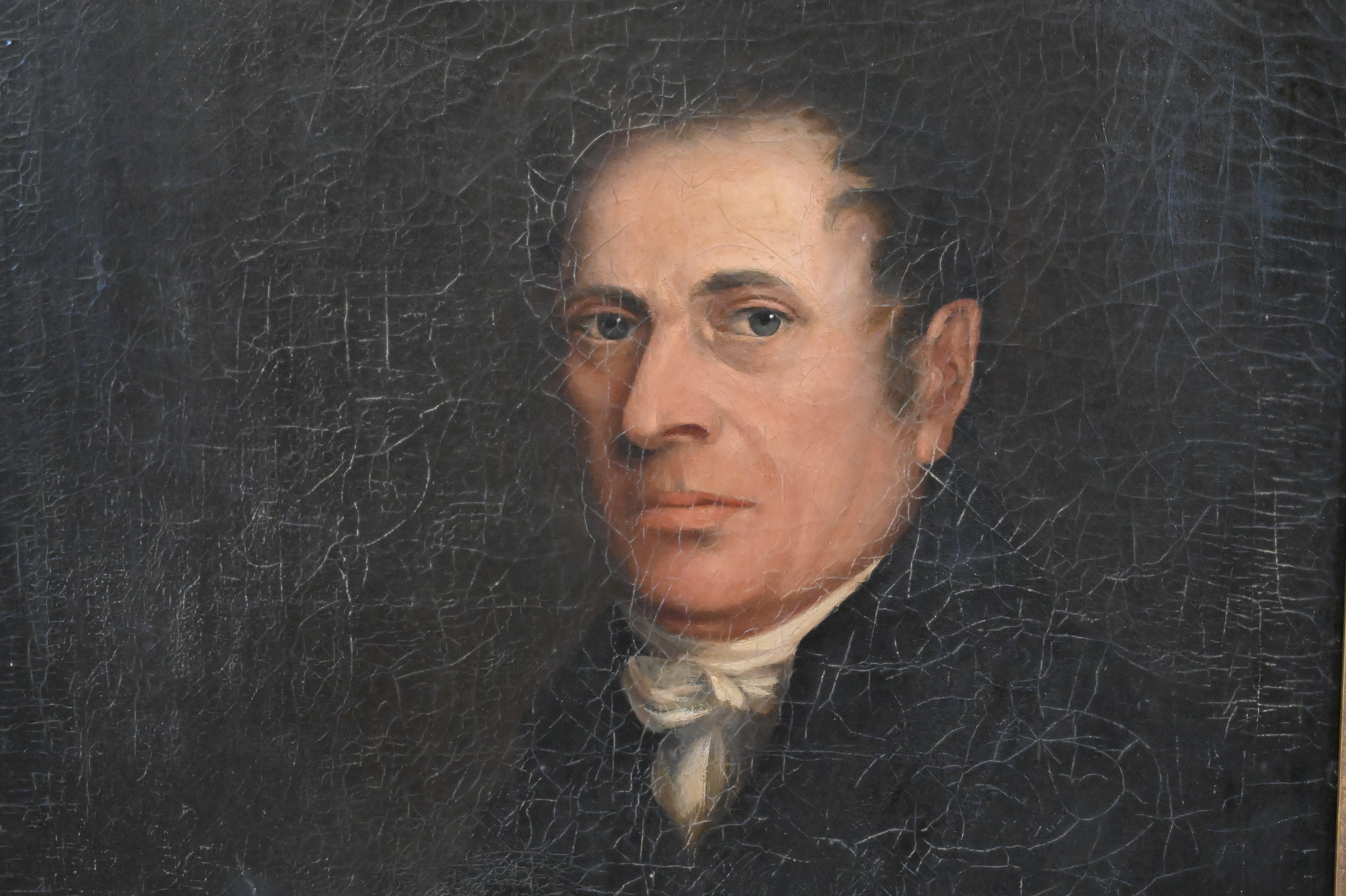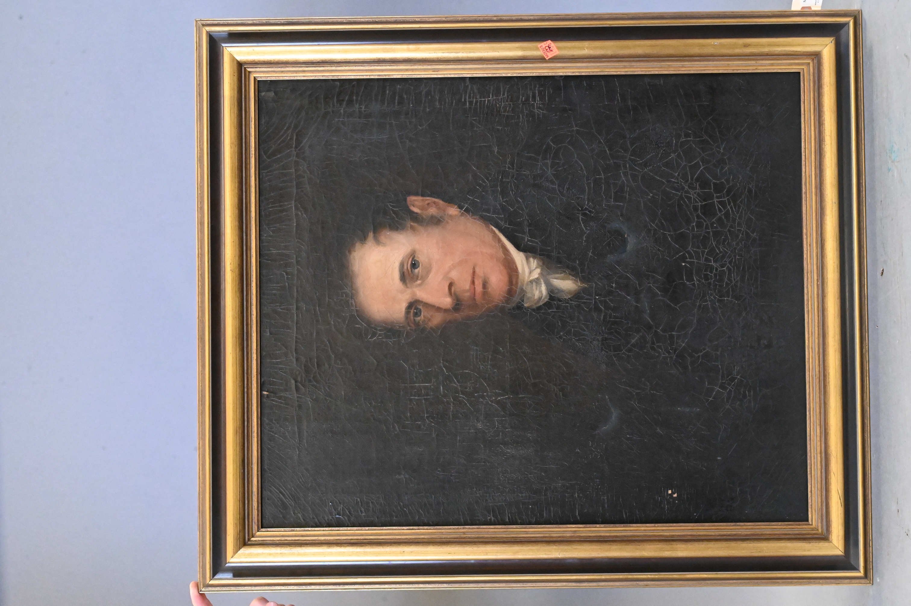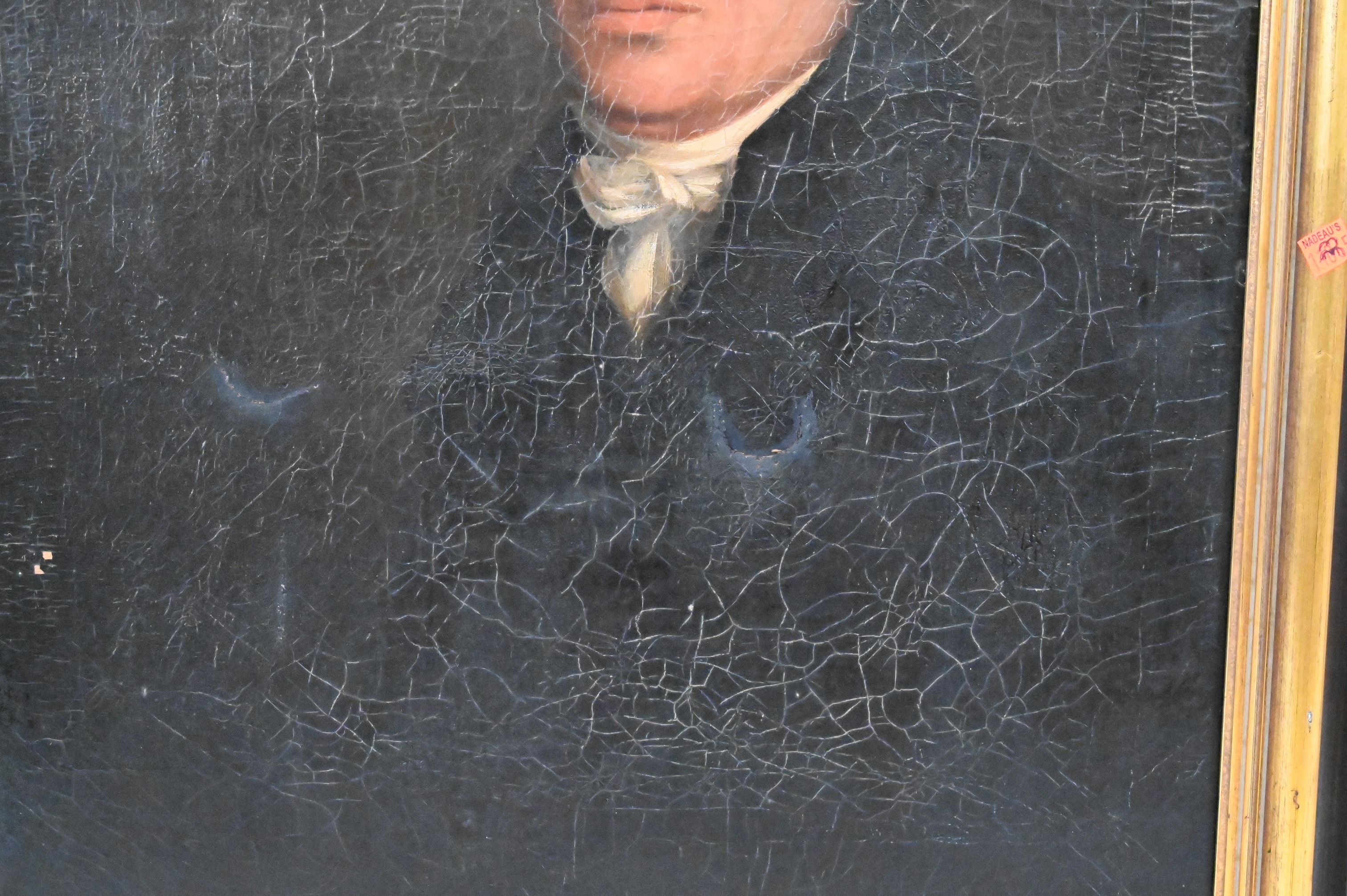 Condition: Pronounced craquelure across the surface, minor losses; relined or later stretcher likely; frame with wear.