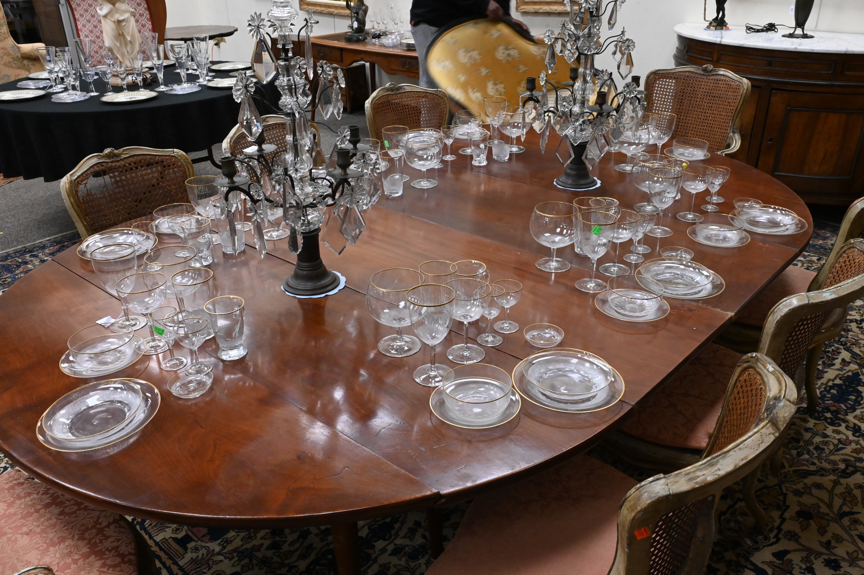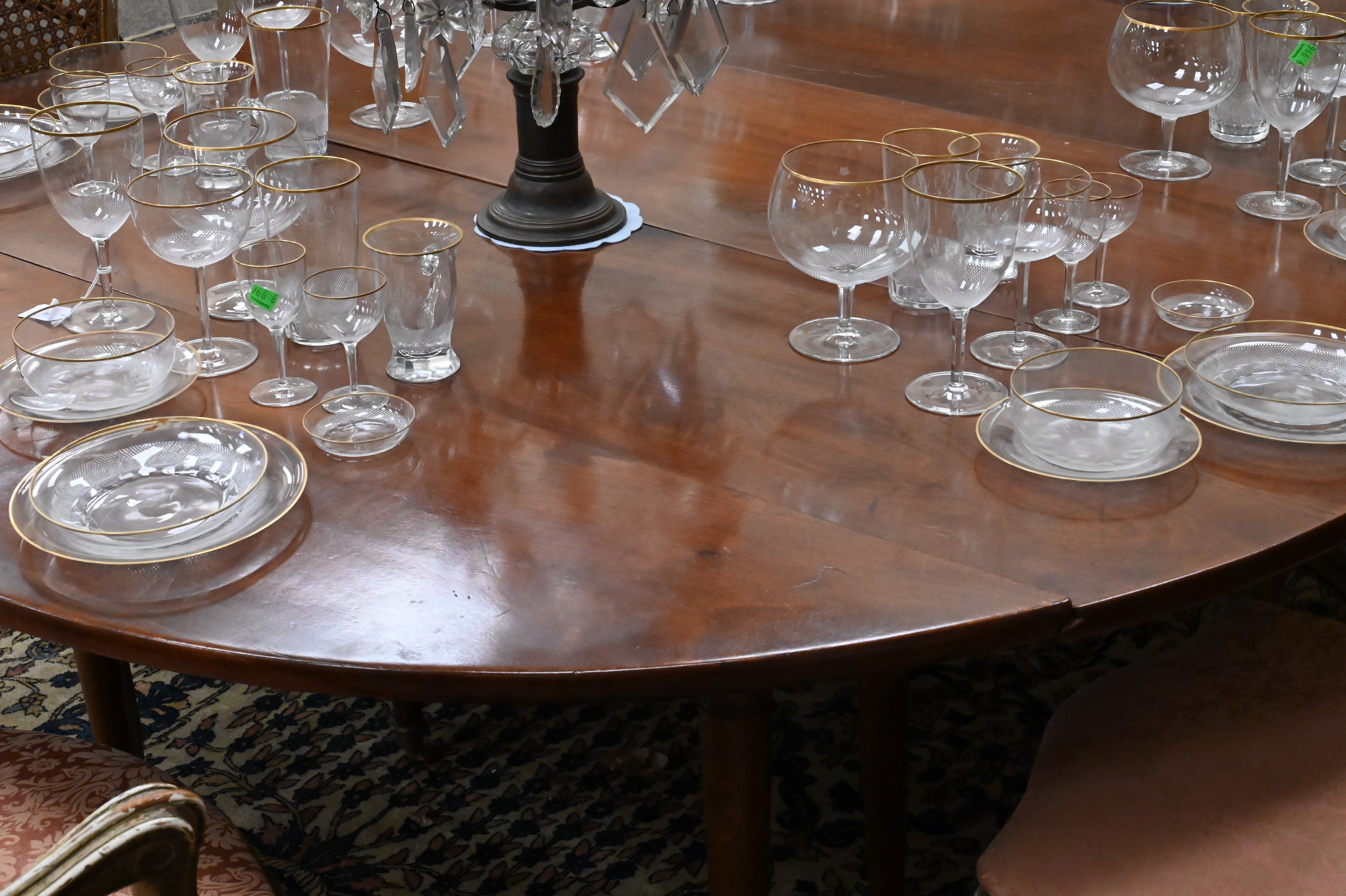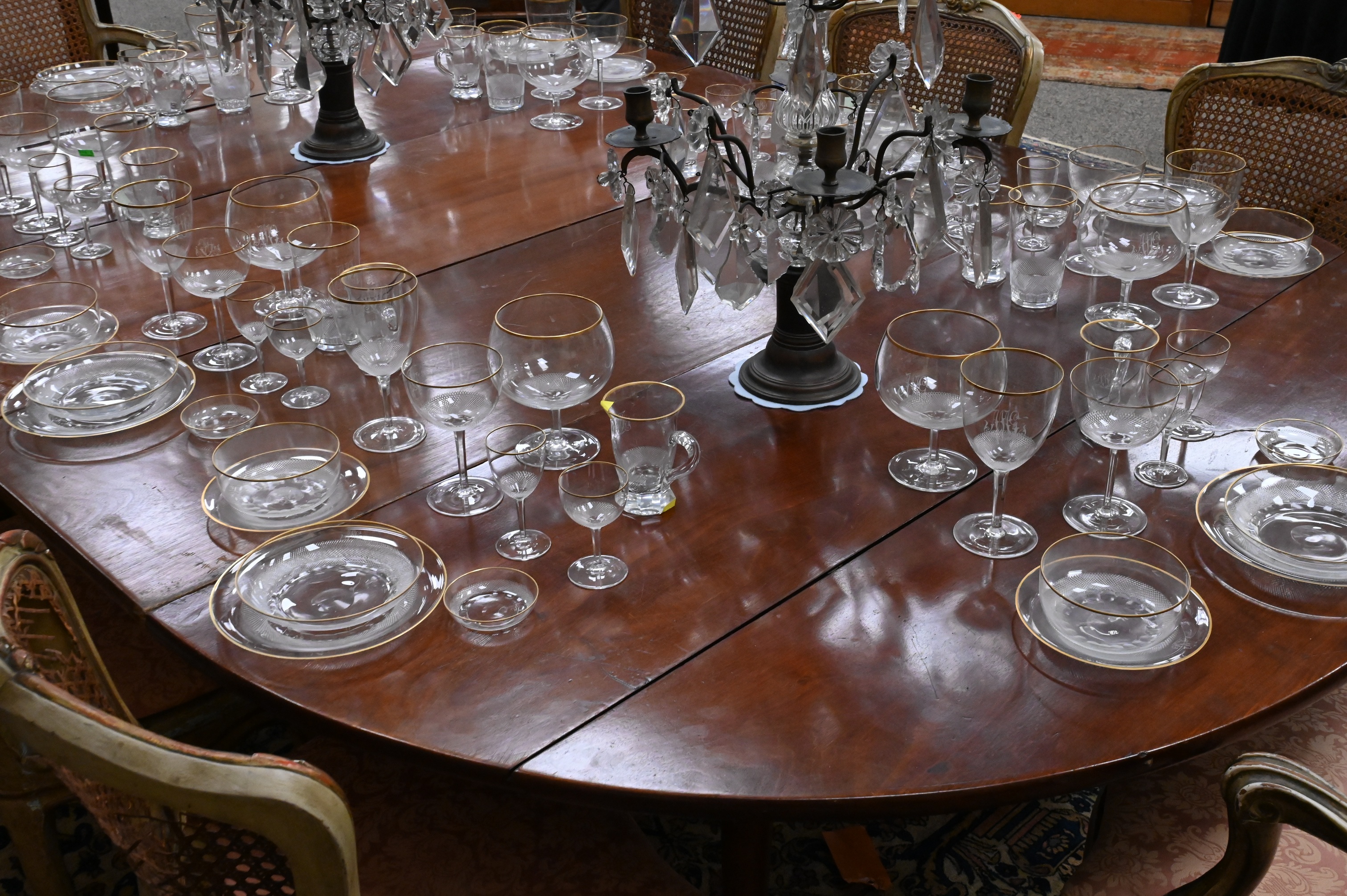 Lot 366: In the Manner of Maison Jansen Mahogany Drop-Leaf Dining Table with Two Leaves