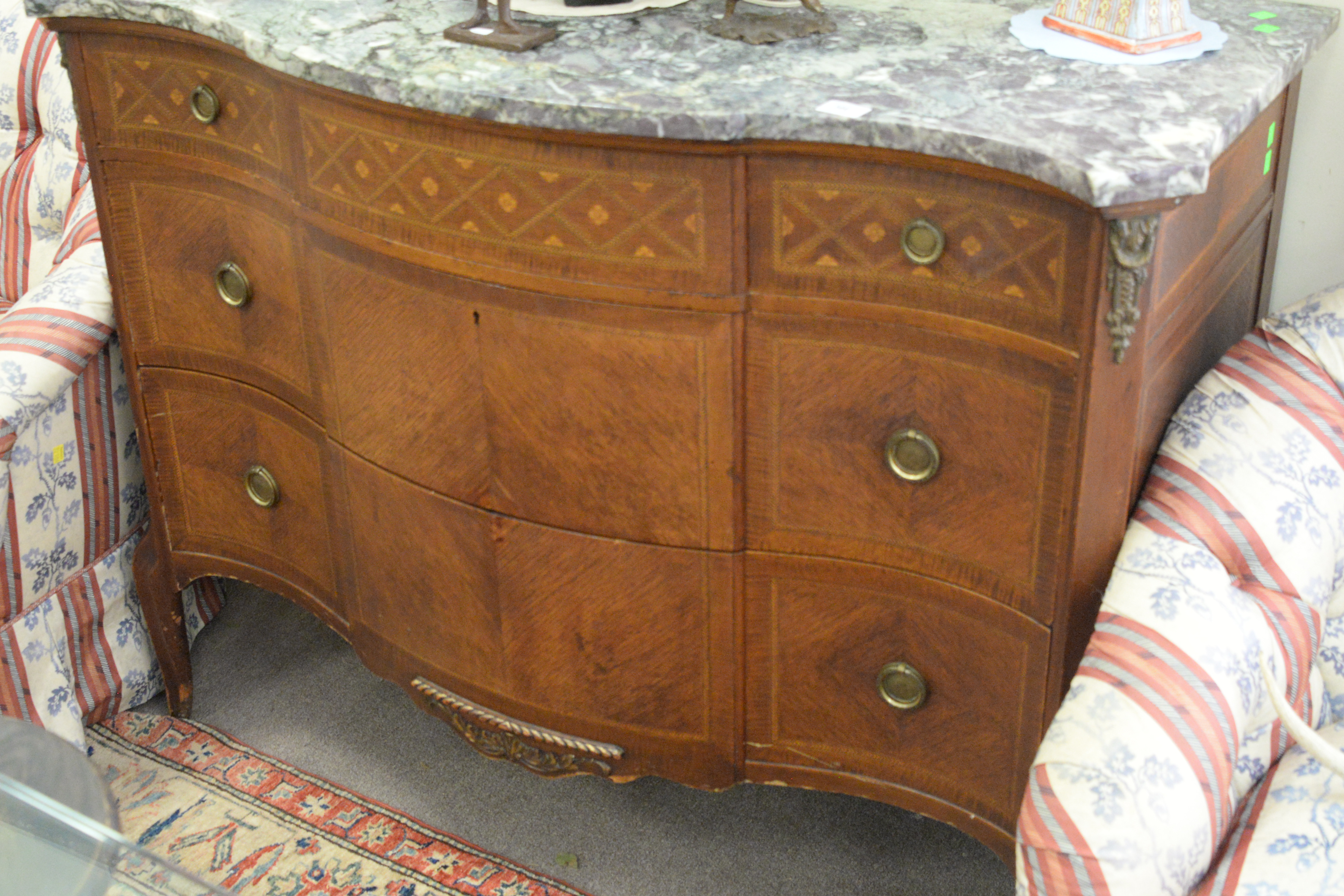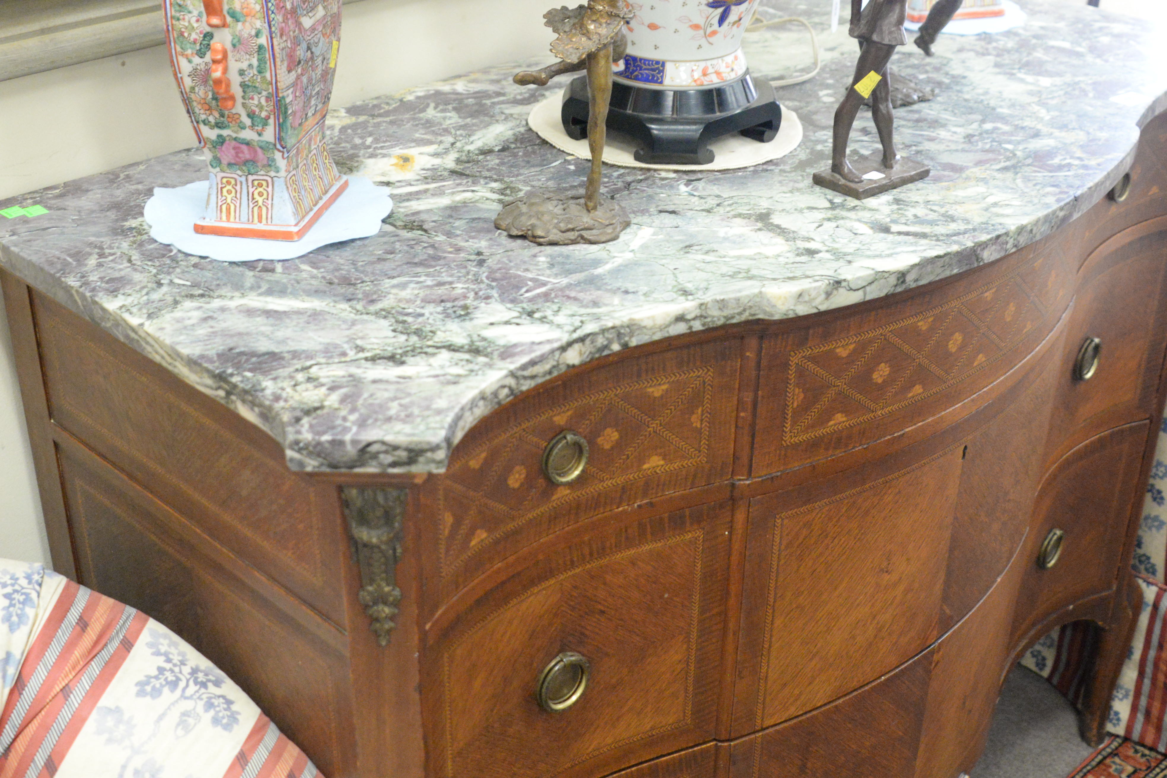 Lot 366: Louis XV Style Marble Top Inlaid Chest
