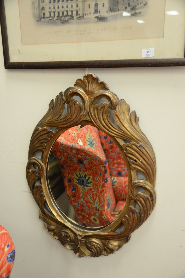 Lot 366: Pair of Continental Style Giltwood Mirrors, carved giltwood and gesso, heights 29 1/2 inches.