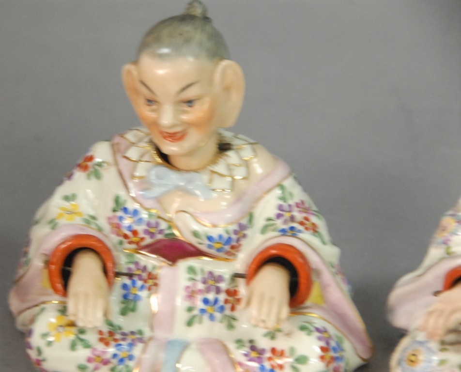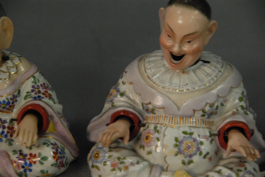 Three nodding figures one is Capo di Monte nodding figure, two are 4 1/2in. and one is 4in.