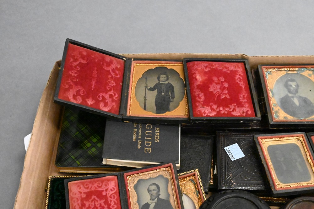 Tray Lot of Daguerreotypes and Ambrotypes. Provenance: Estate of Florence Yannios, Cheshire, CT.