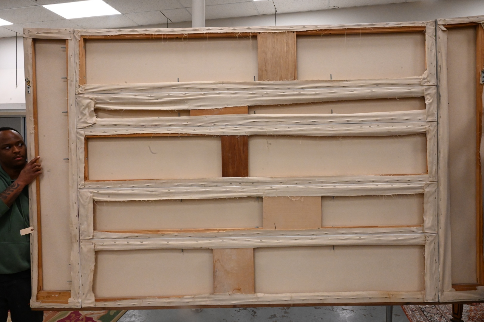 Condition: In good condition. Canvas of left panel slightly loose. Good under black light