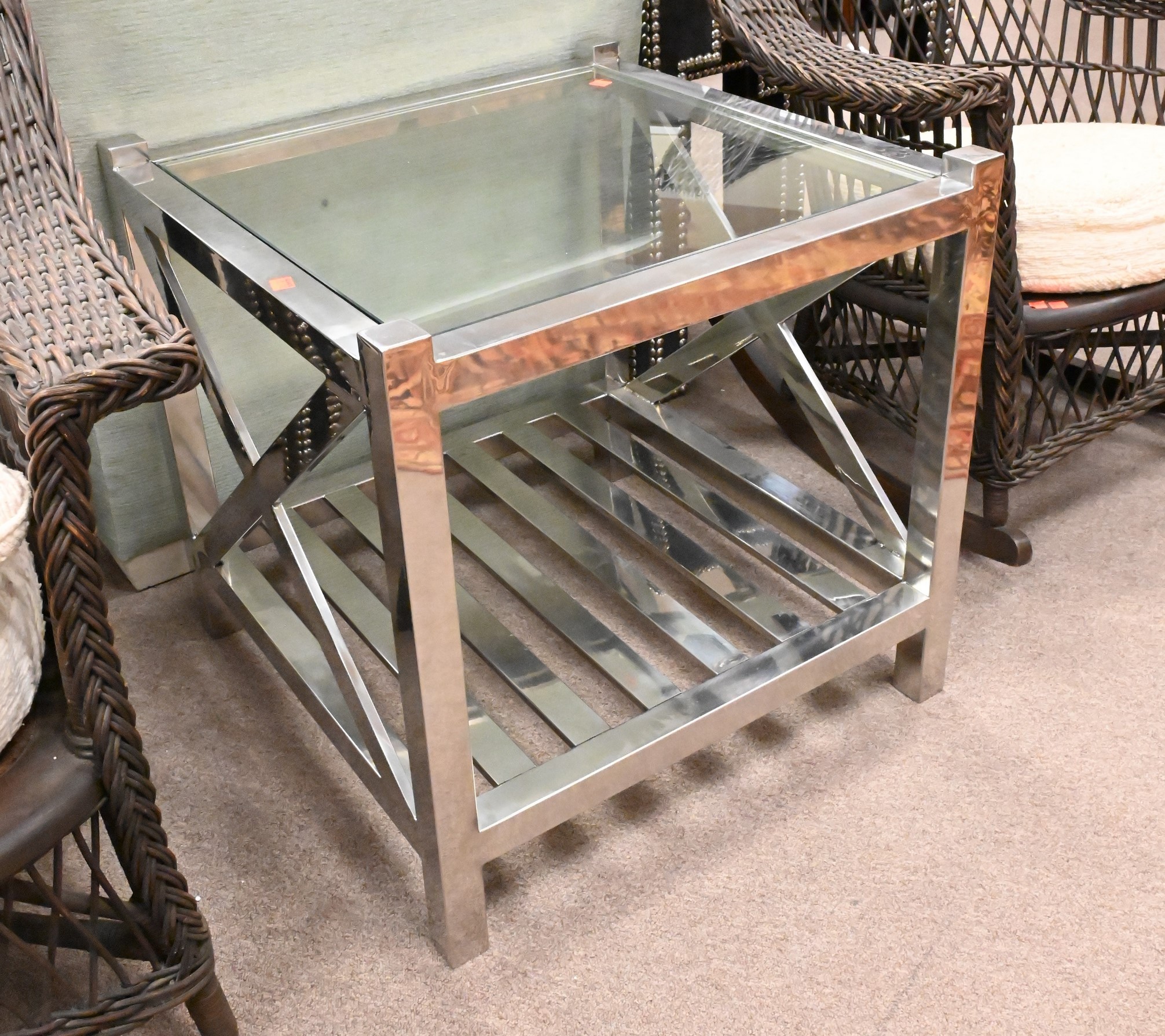 Lot 366: Two Andrew Martin Glass Top Side Tables