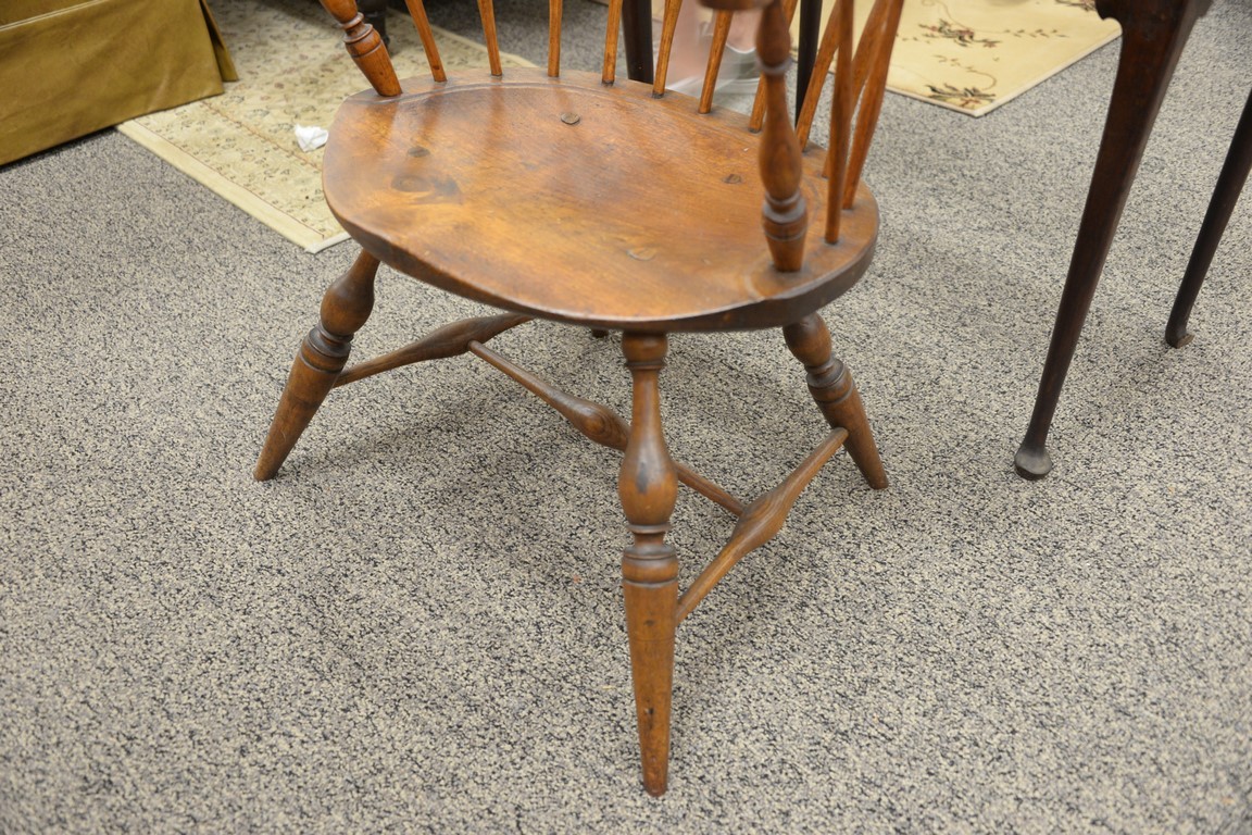 Lot 366: Windsor bow back armchair with bold turned legs, 18th century. seat ht. 16in. Provenance: Estate of Arthur C. Pinto, MD