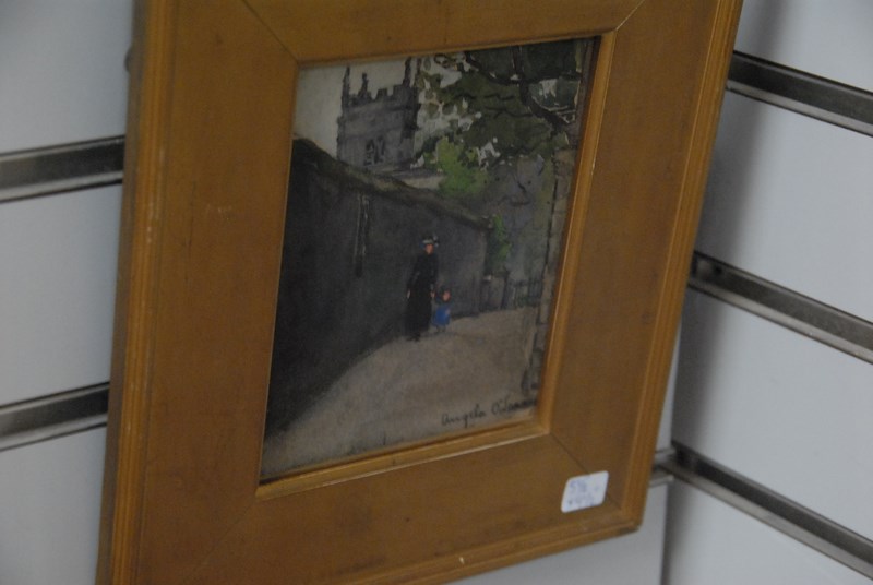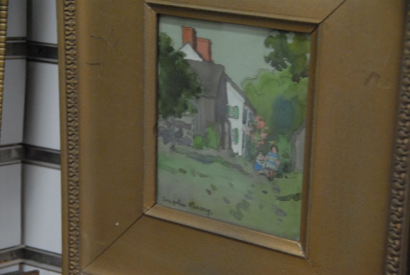Angela O’Leary 1879-1921 three landscapes with people, two signed lower left and one signed lower right Angela O’Leary, 5 1/2 x 4 1/2, 5 1/2 x 4 1/2, and 5 x 4 1/2.