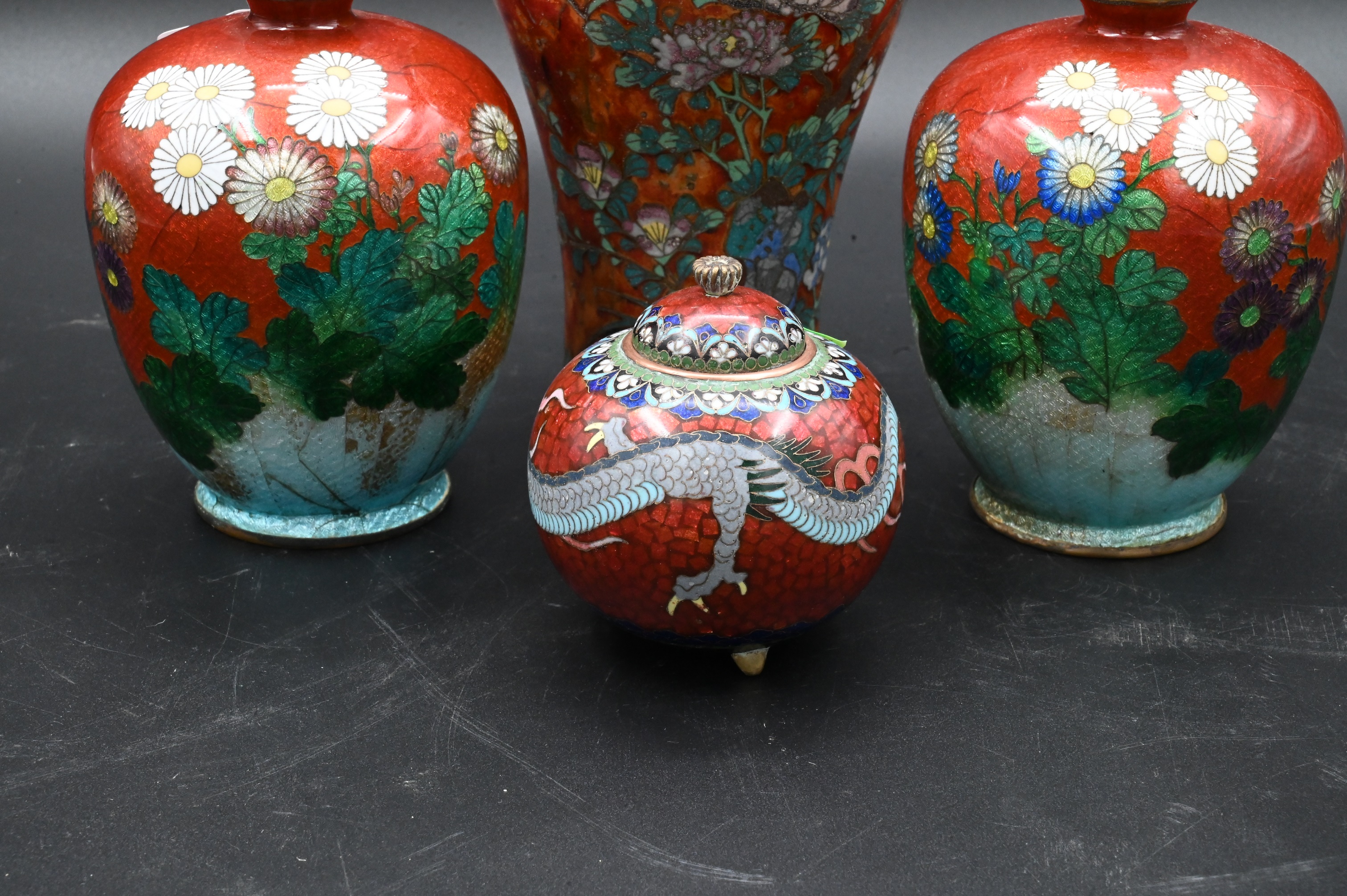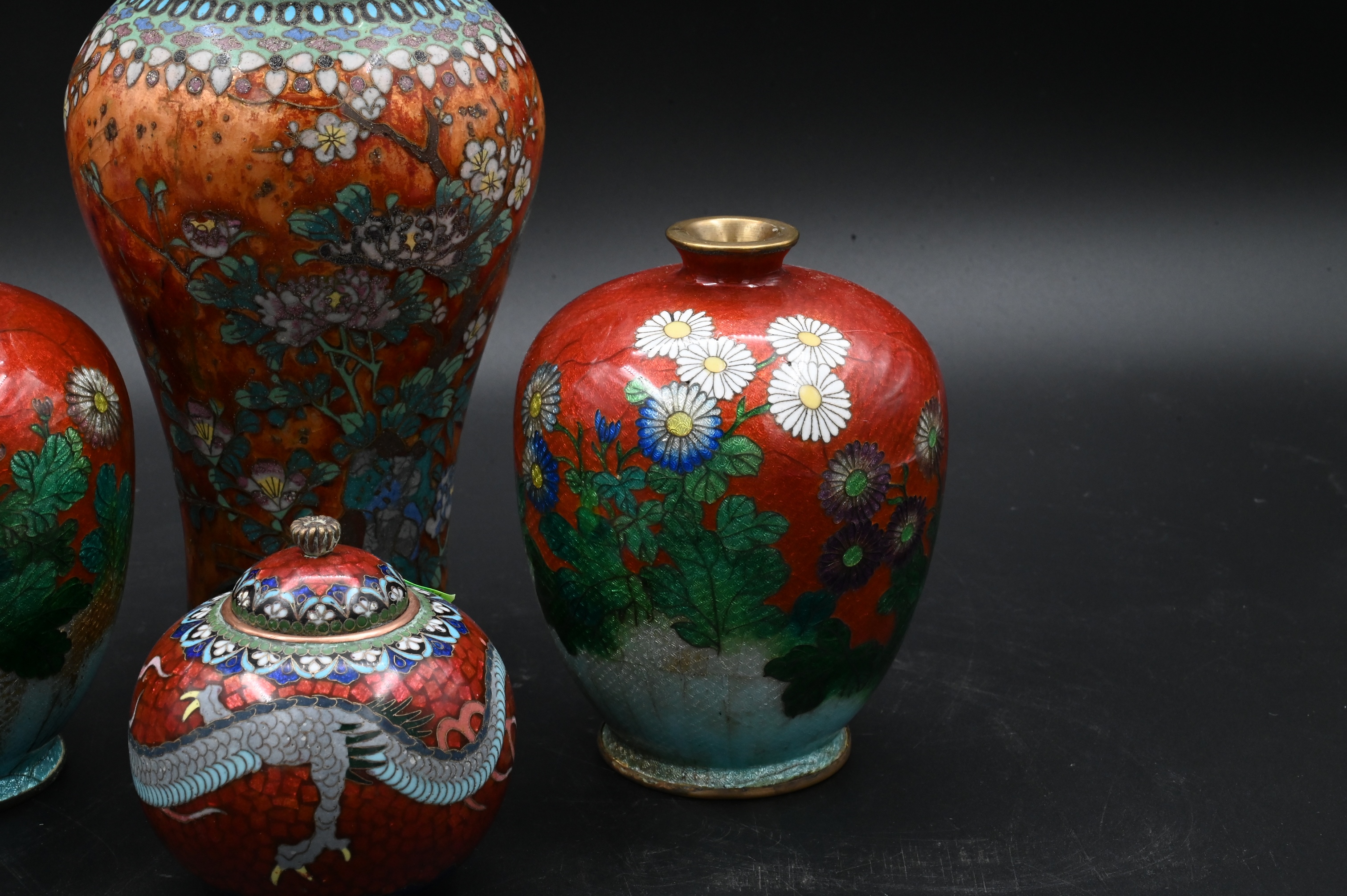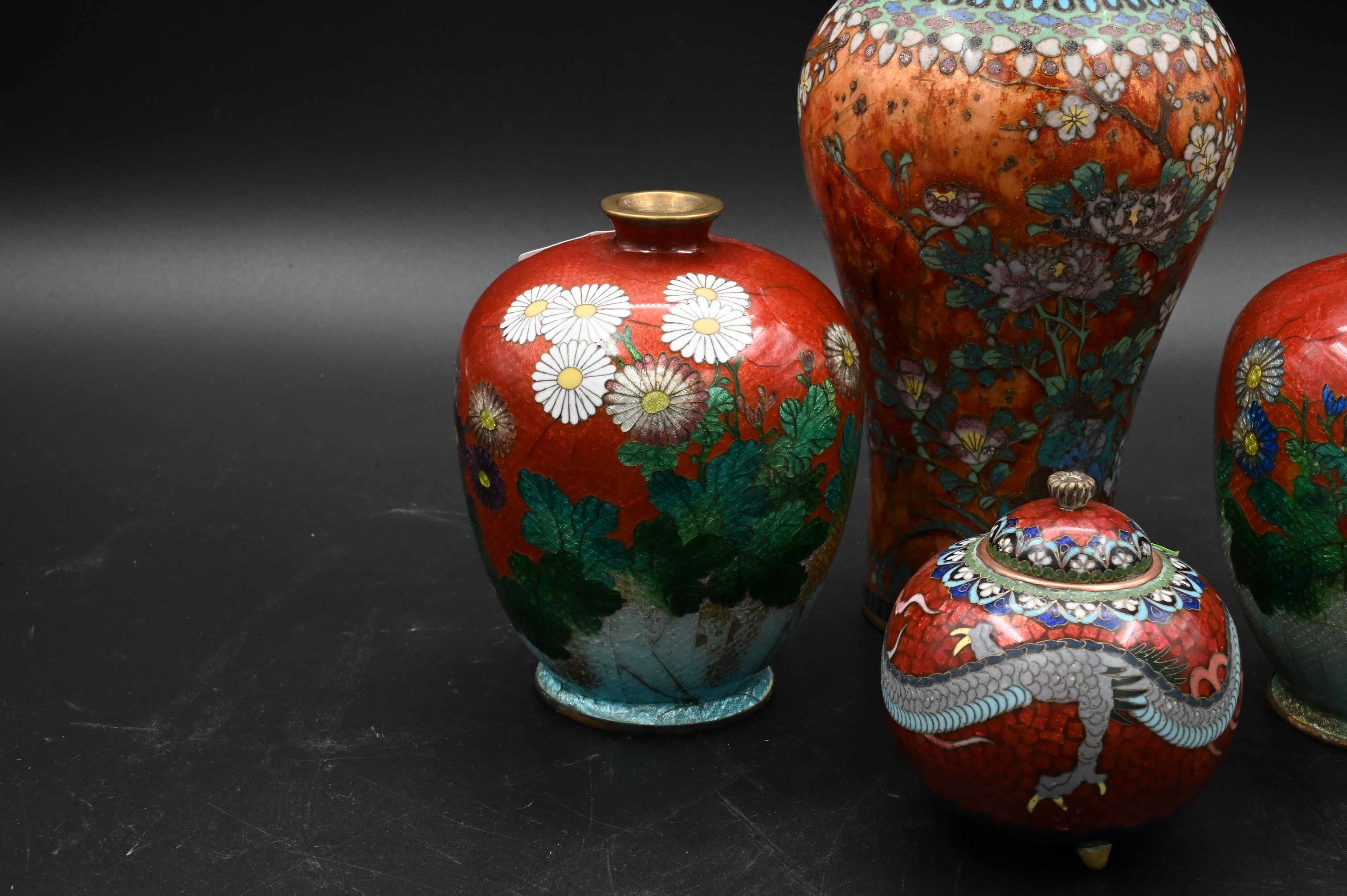 Lot 367: Four Japanese Meiji Style Cloisonne Enamel Vases