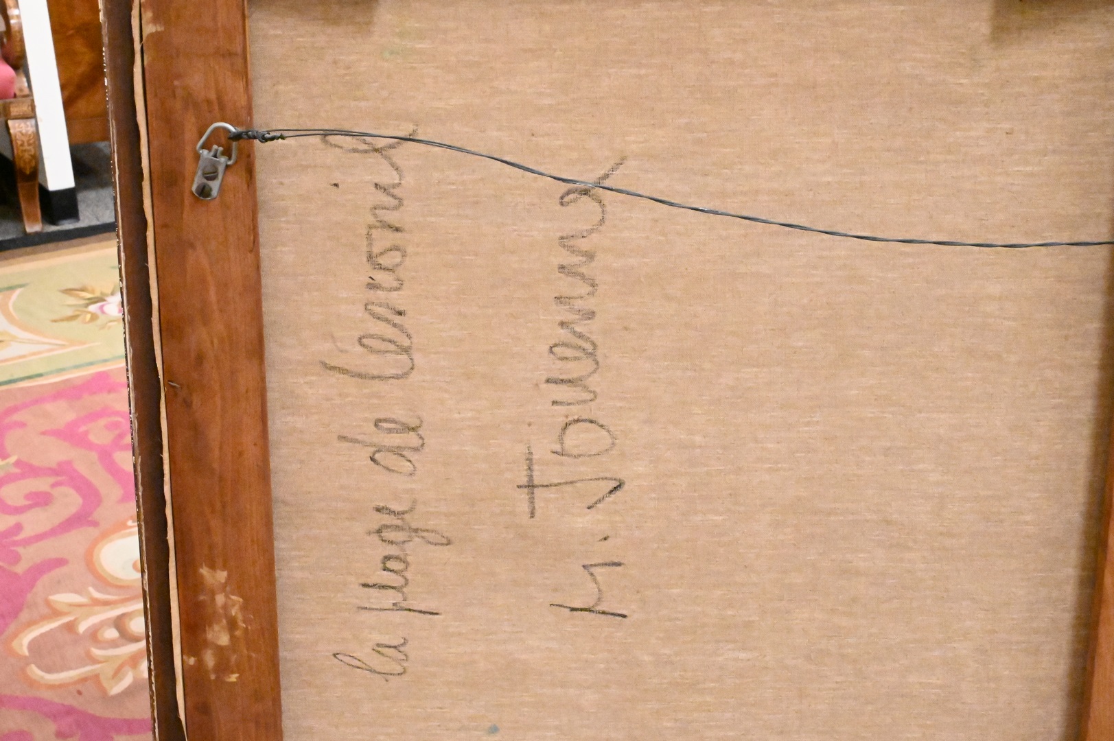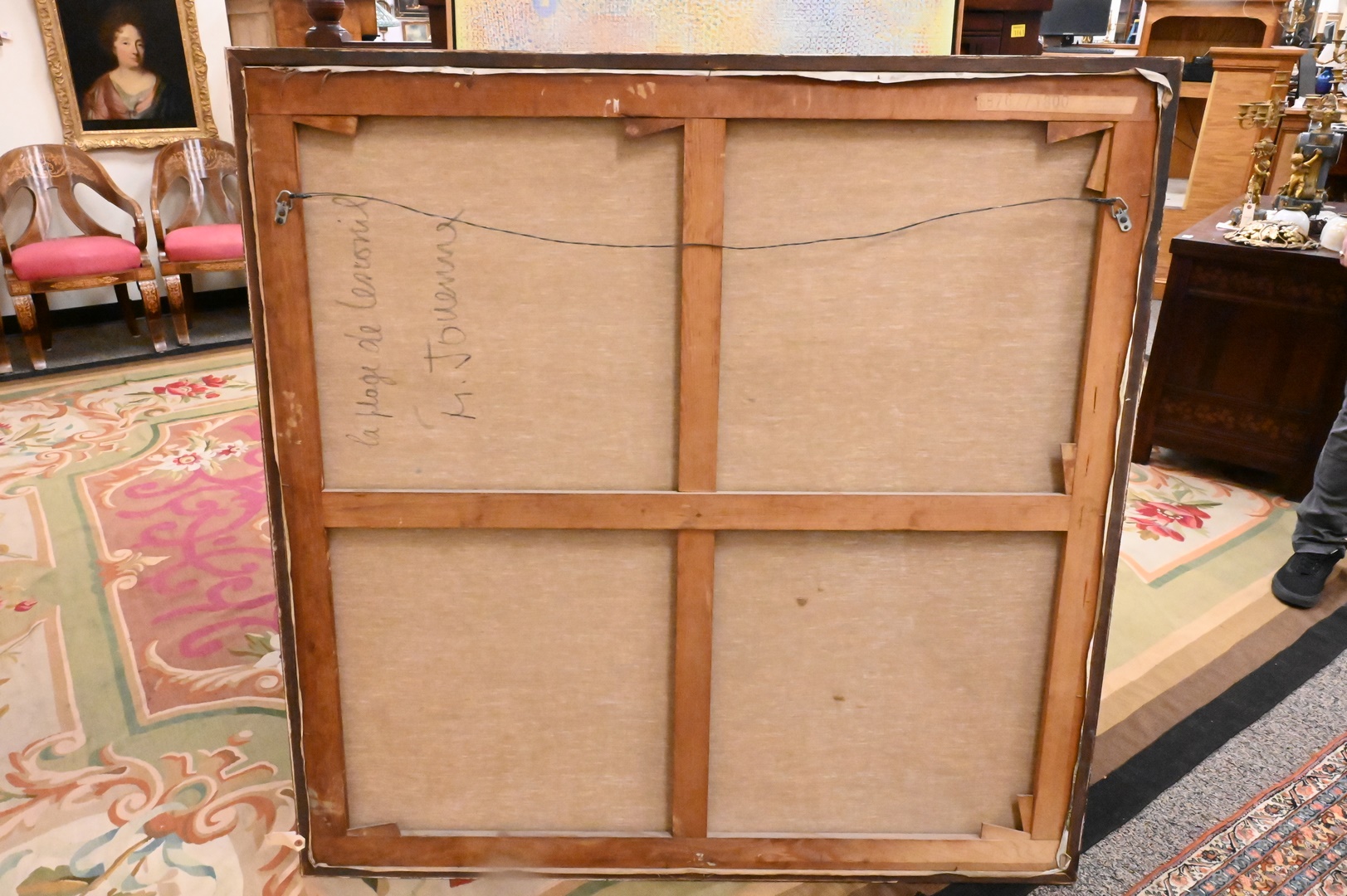 Michel Jouenne (1933-2021) “La Plage de Lenonil” oil on canvas signed lower right M. Jouenne 51″ x 51″ Condition: Dirty, otherwise in good condition. Good under black light
