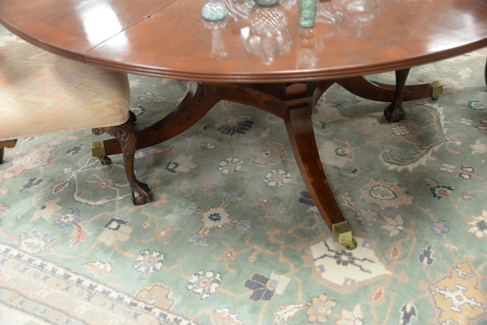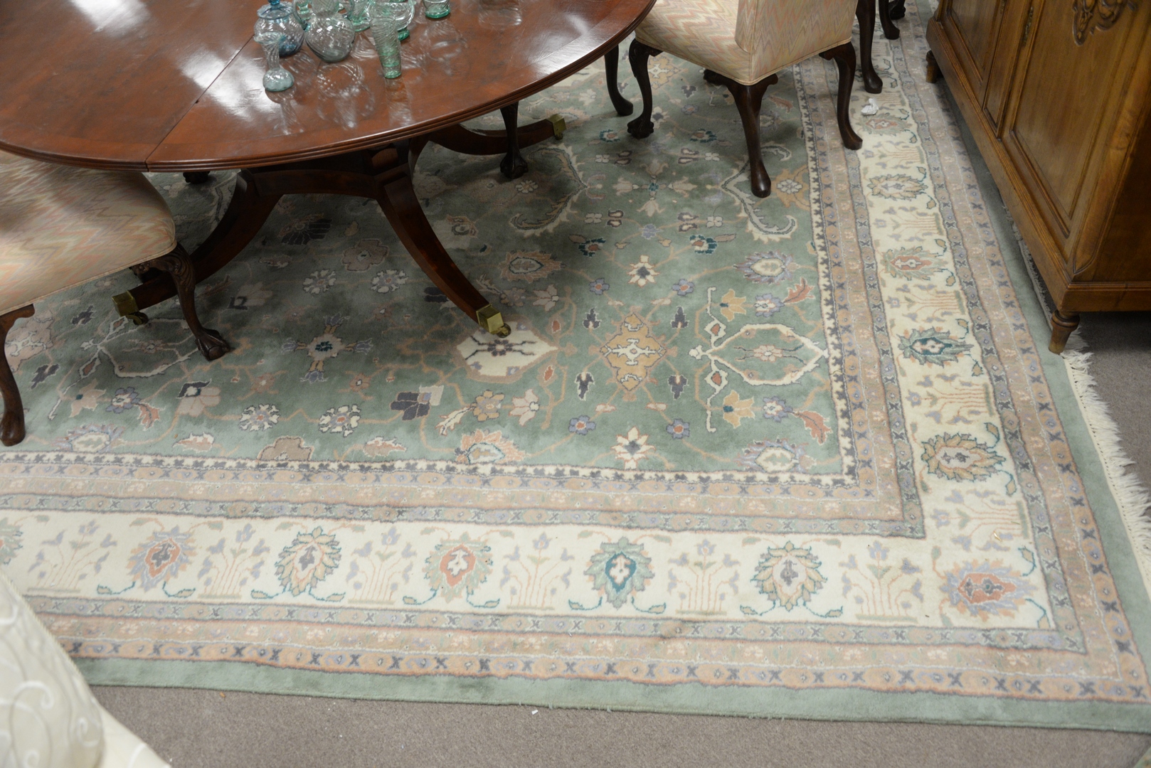 Oriental Carpet, pale green background, 11′ 7″ x 17′ 6″.
