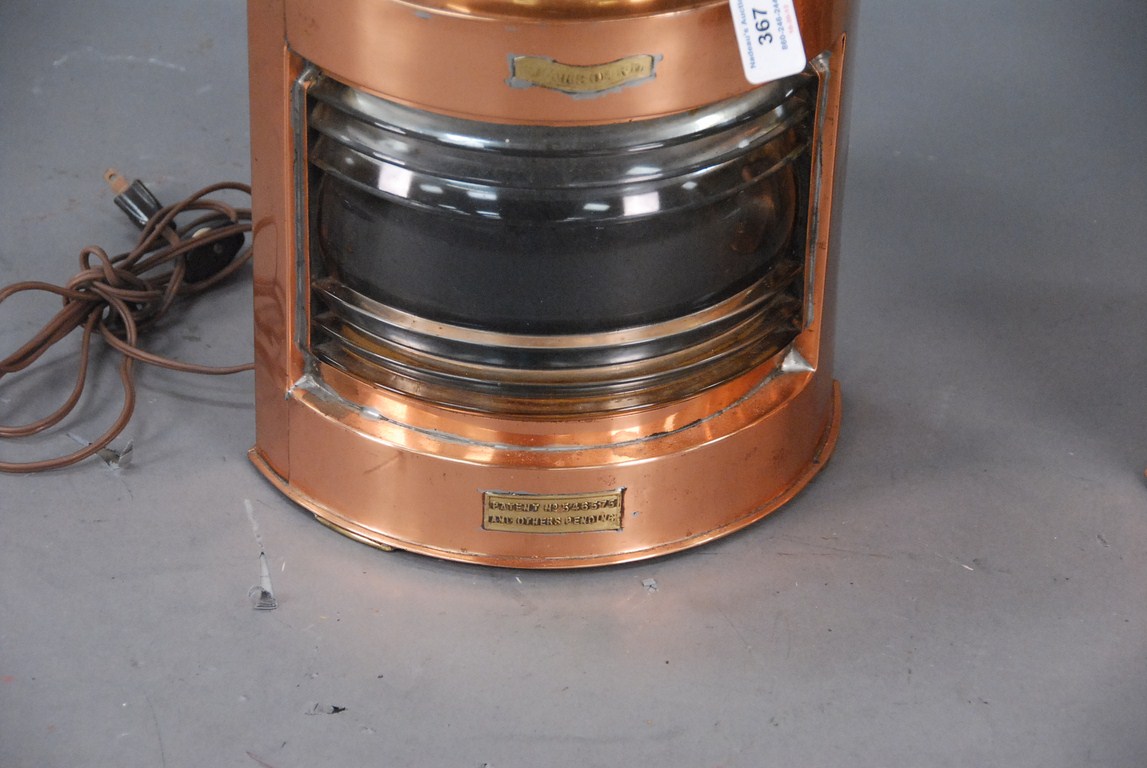 Lot 367: Pair of copper nautical ship’s lanterns one marked port and the other marked starboard having small maker’s plaque Patent no 54…