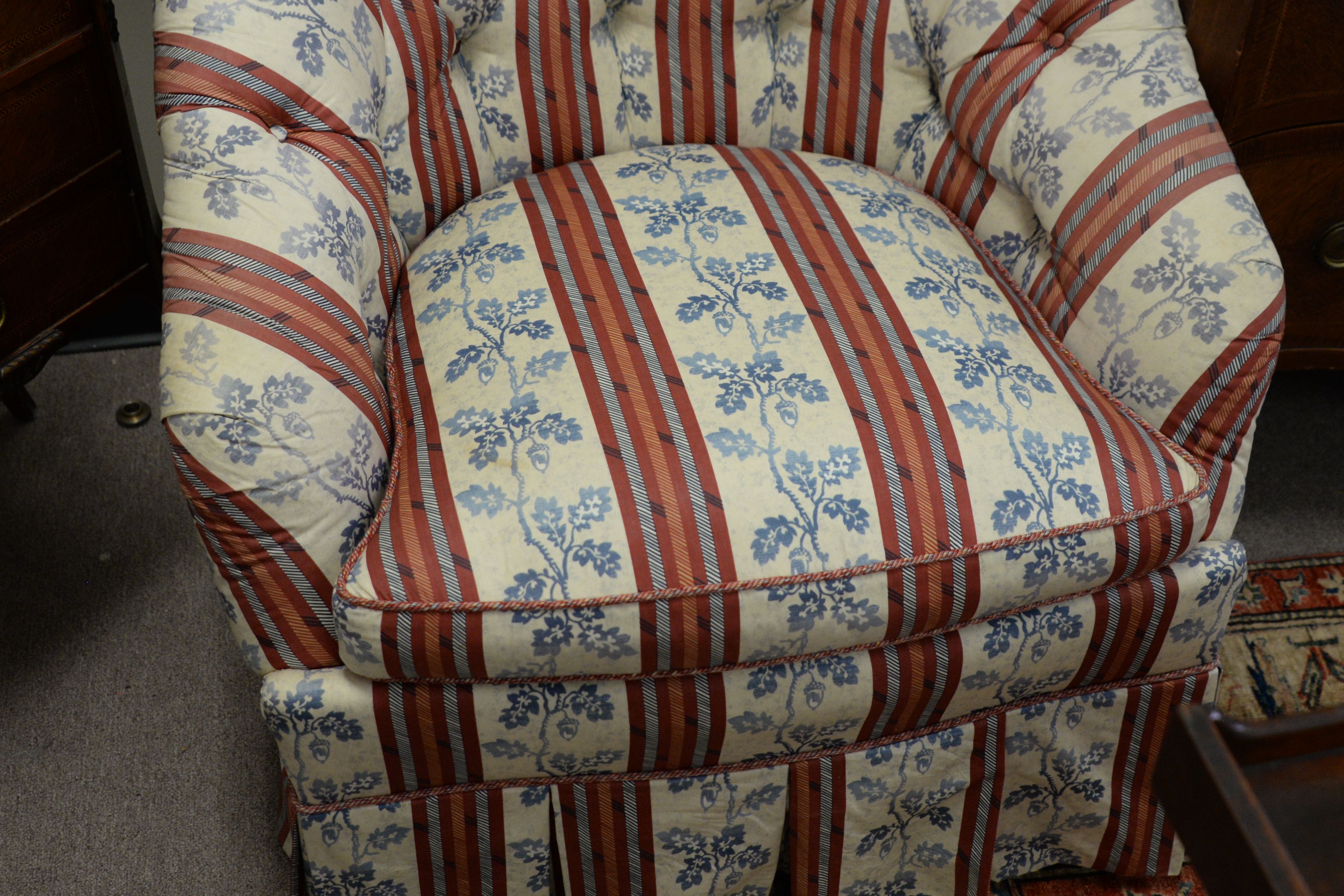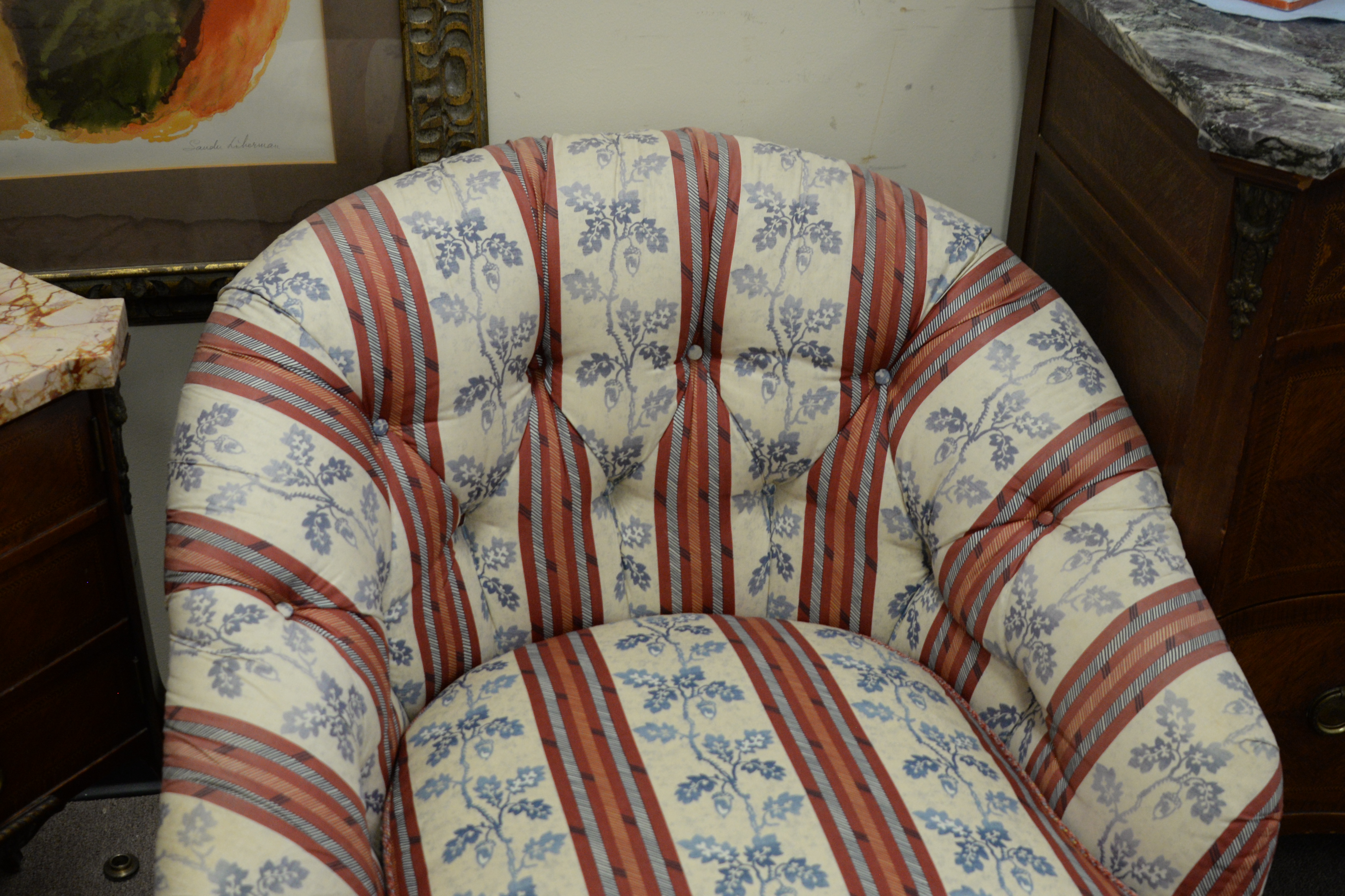 Pair of Hickory Chair Co. Upholstered Club Chairs, having tufted backs, height 31 inches, width 31 inches, depth 21 inches