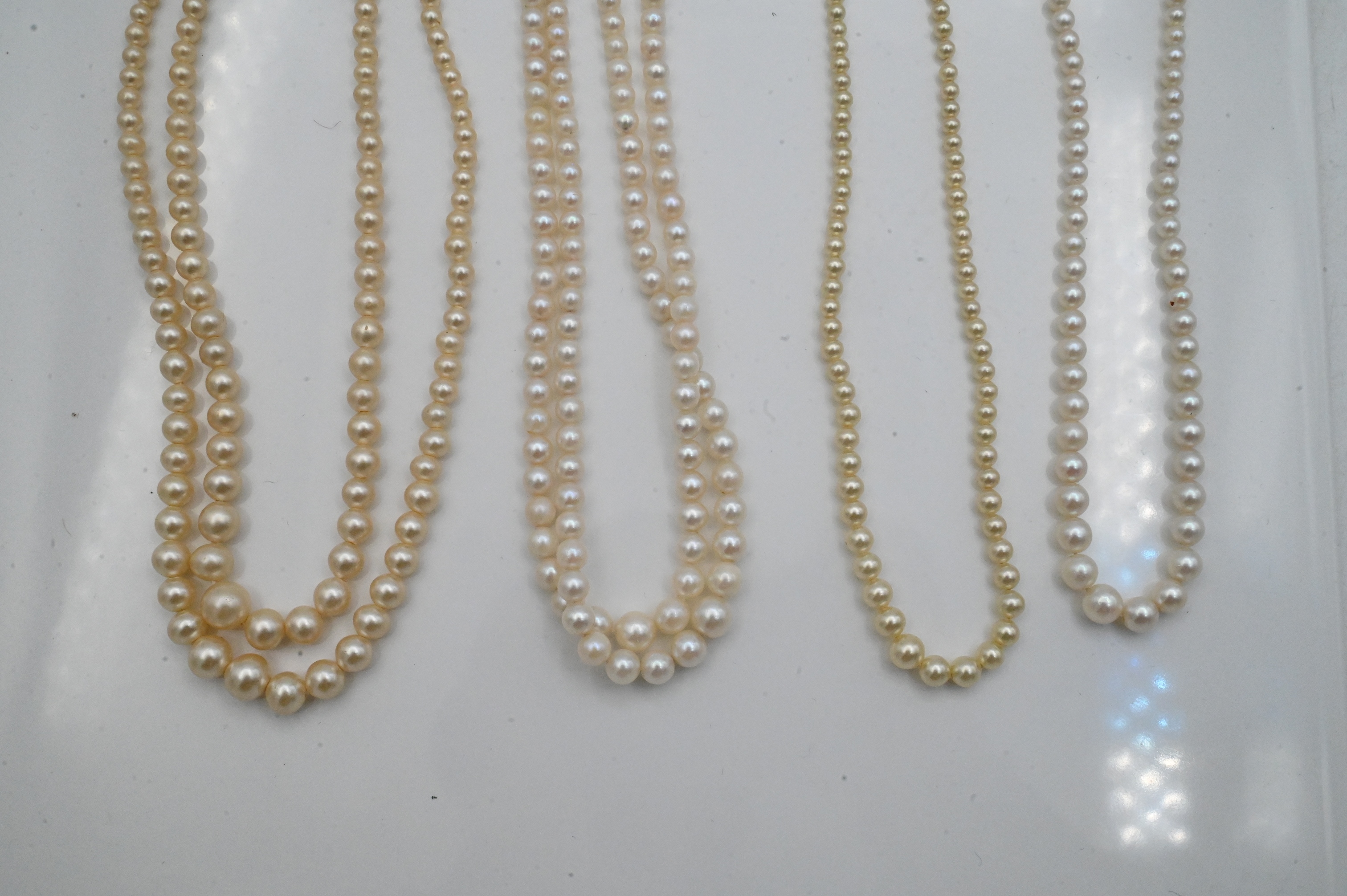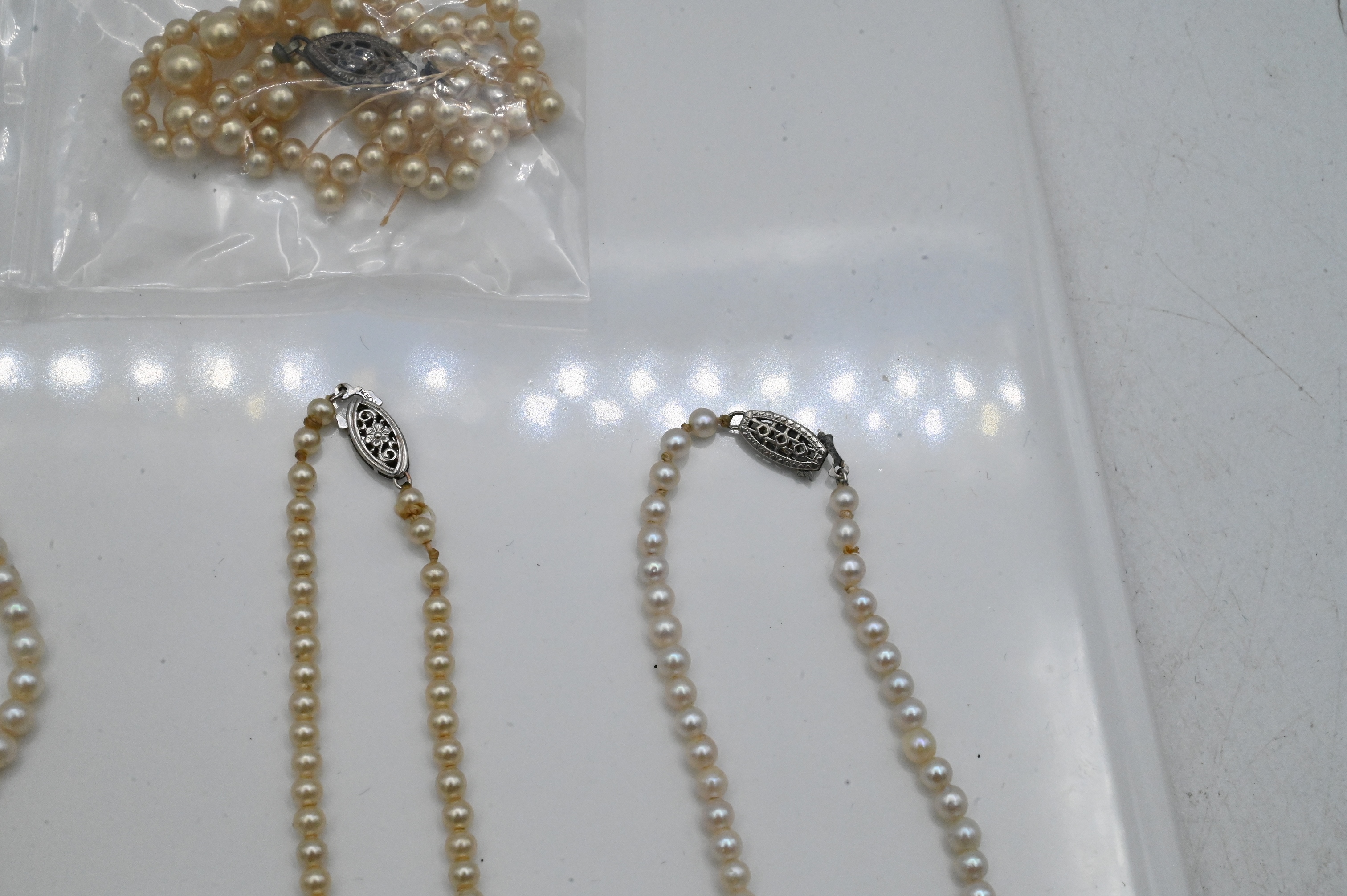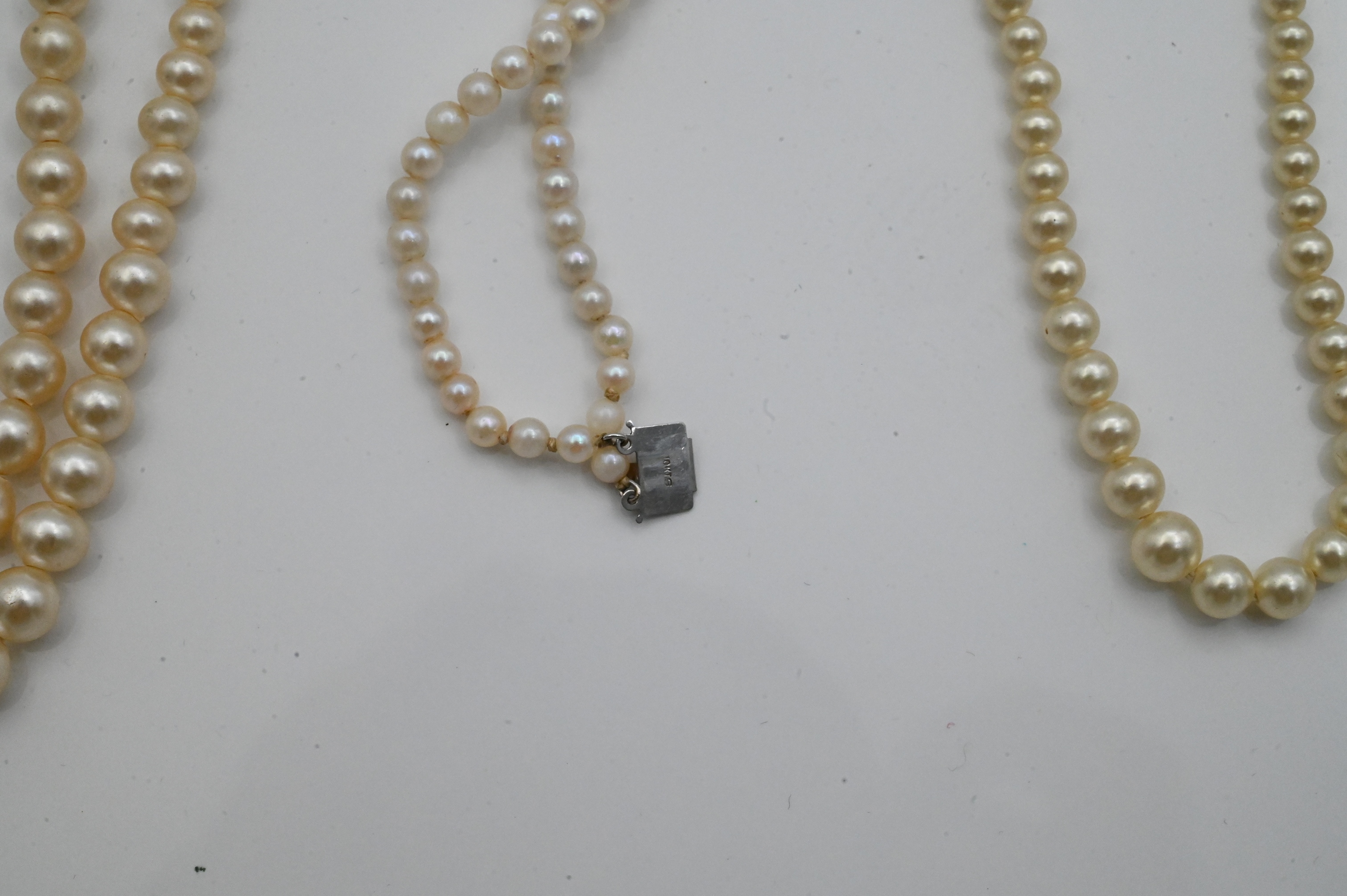 most with 10k gold clasp, and two without clasp, longest 17 inches