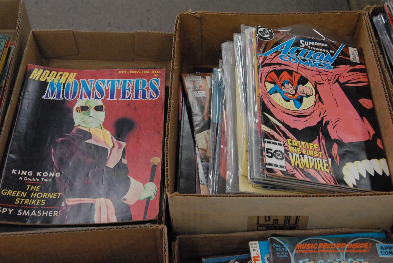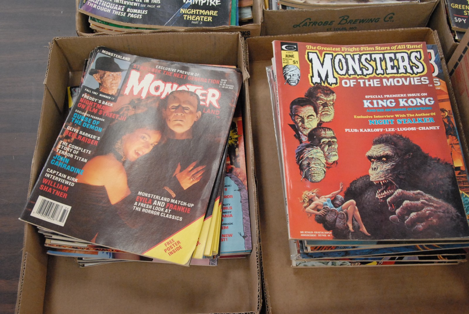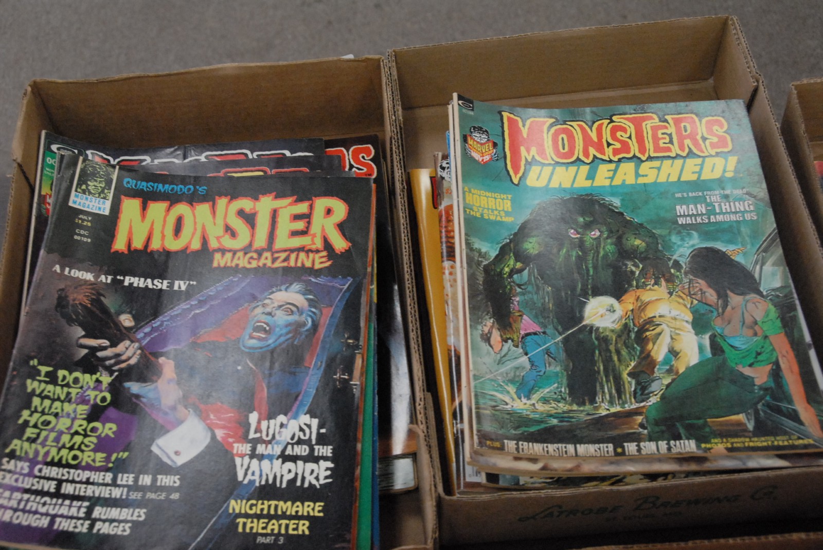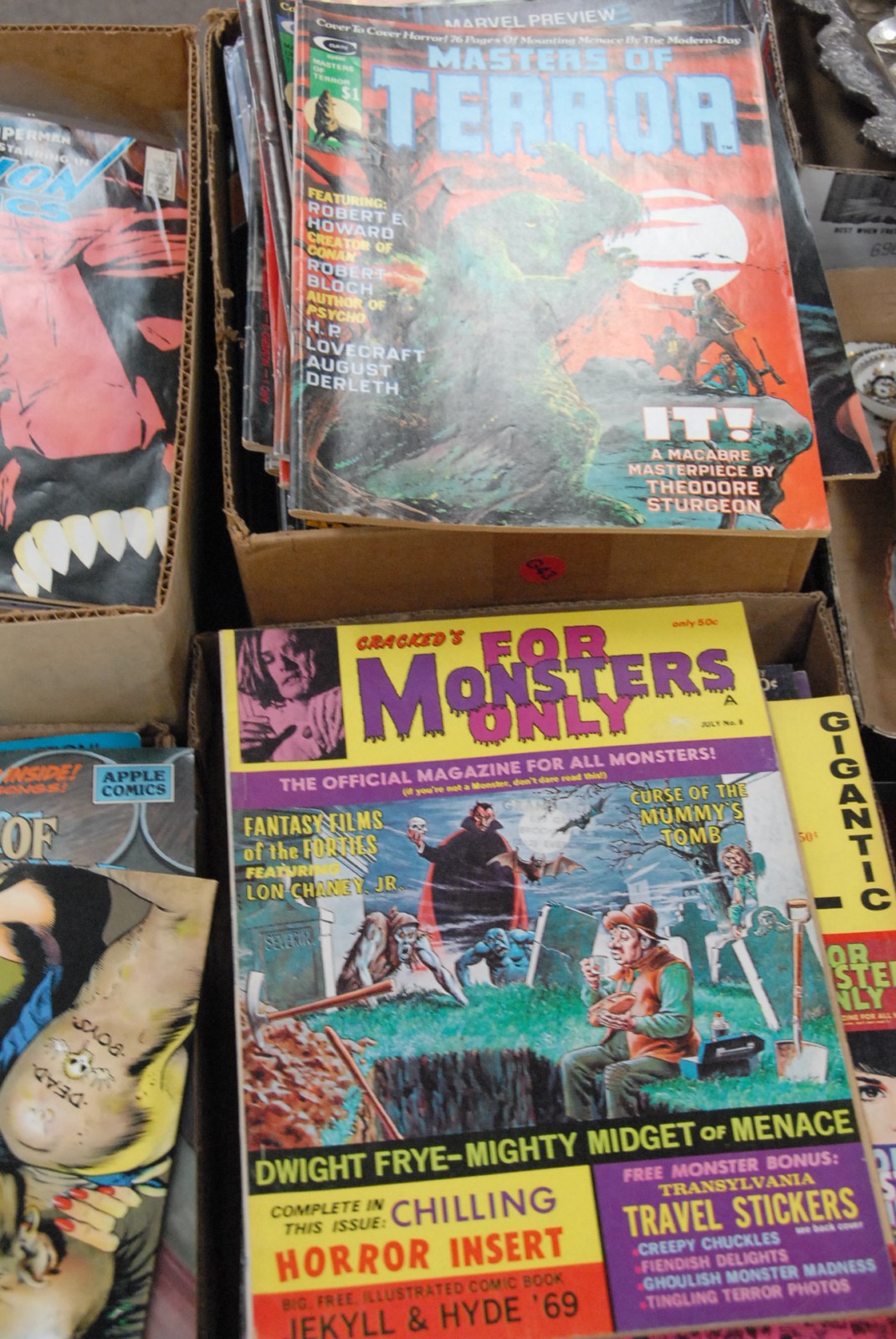 Ten boxes of magazines and comics to include Monster Magazine, Monster Unleashed, Monster memories, Monster Land, Monster of the movies, Santana, I…Vampire, etc