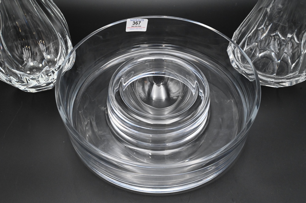 Lot 367: Three Crystal Pieces, to include Baccarat vase, crystal caviar dish, and a pitcher, tallest 12 inches.