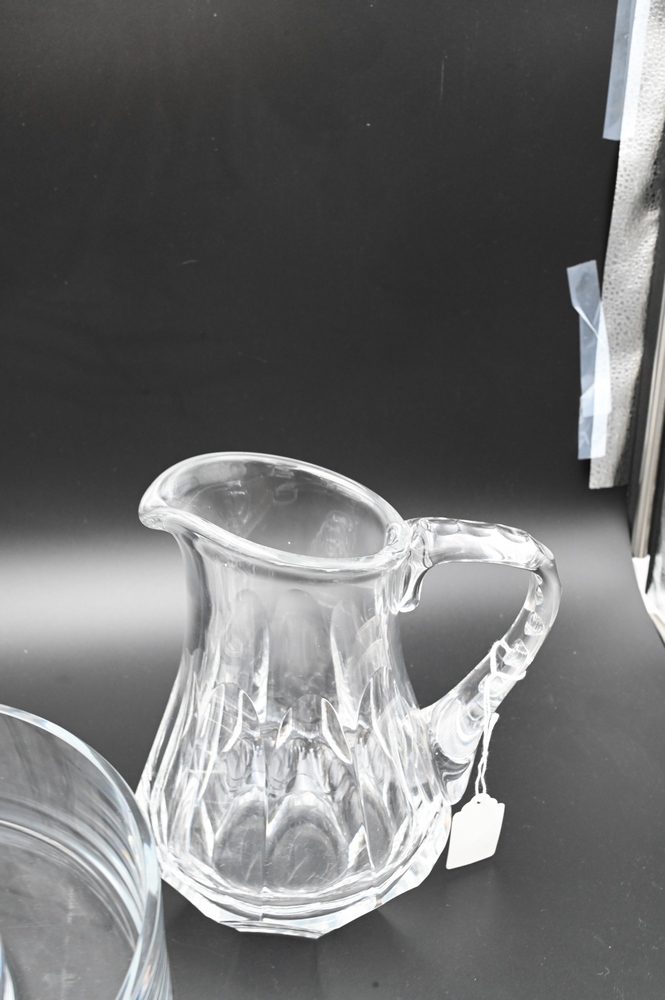 Three Crystal Pieces, to include Baccarat vase, crystal caviar dish, and a pitcher, tallest 12 inches.