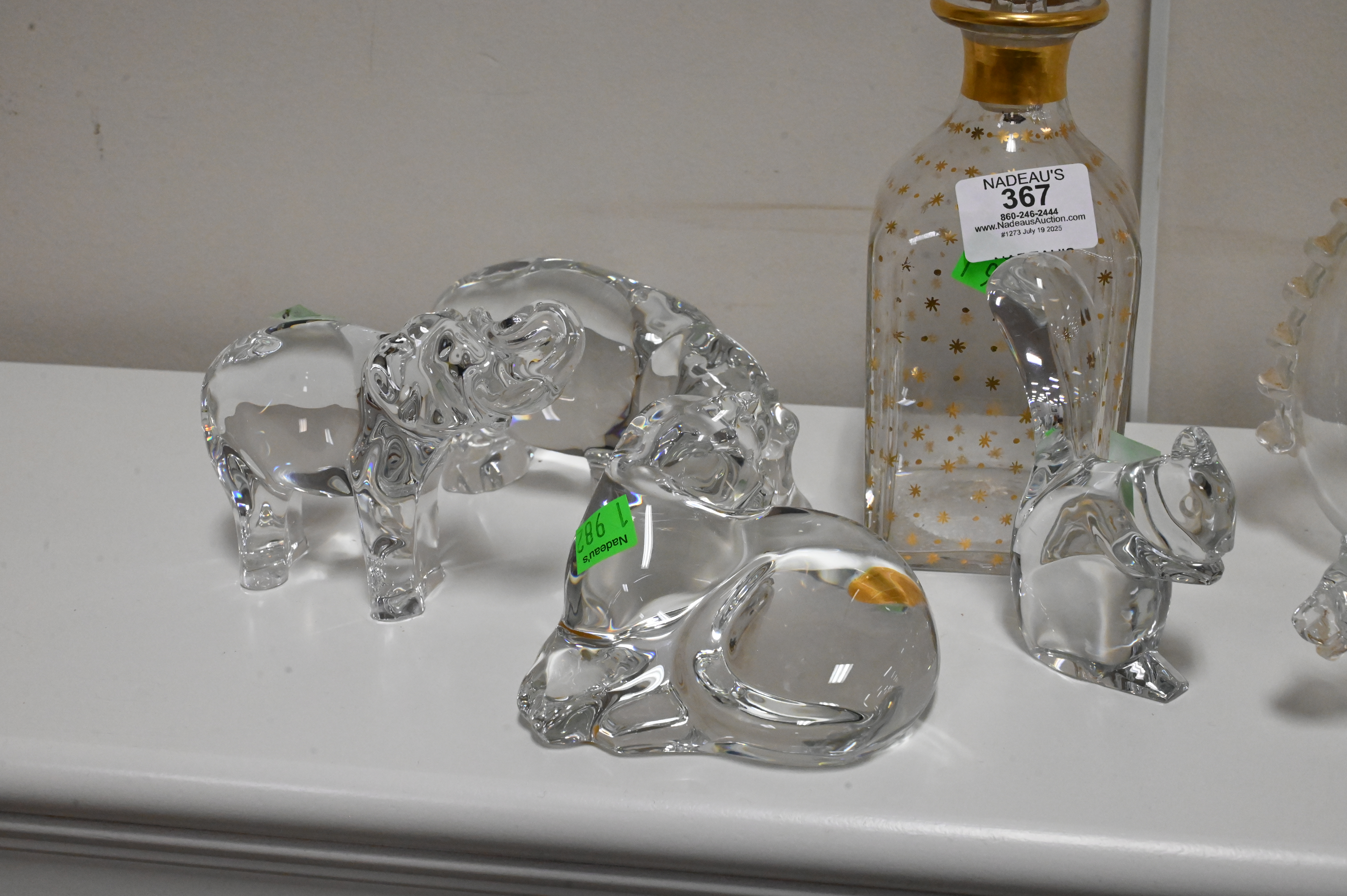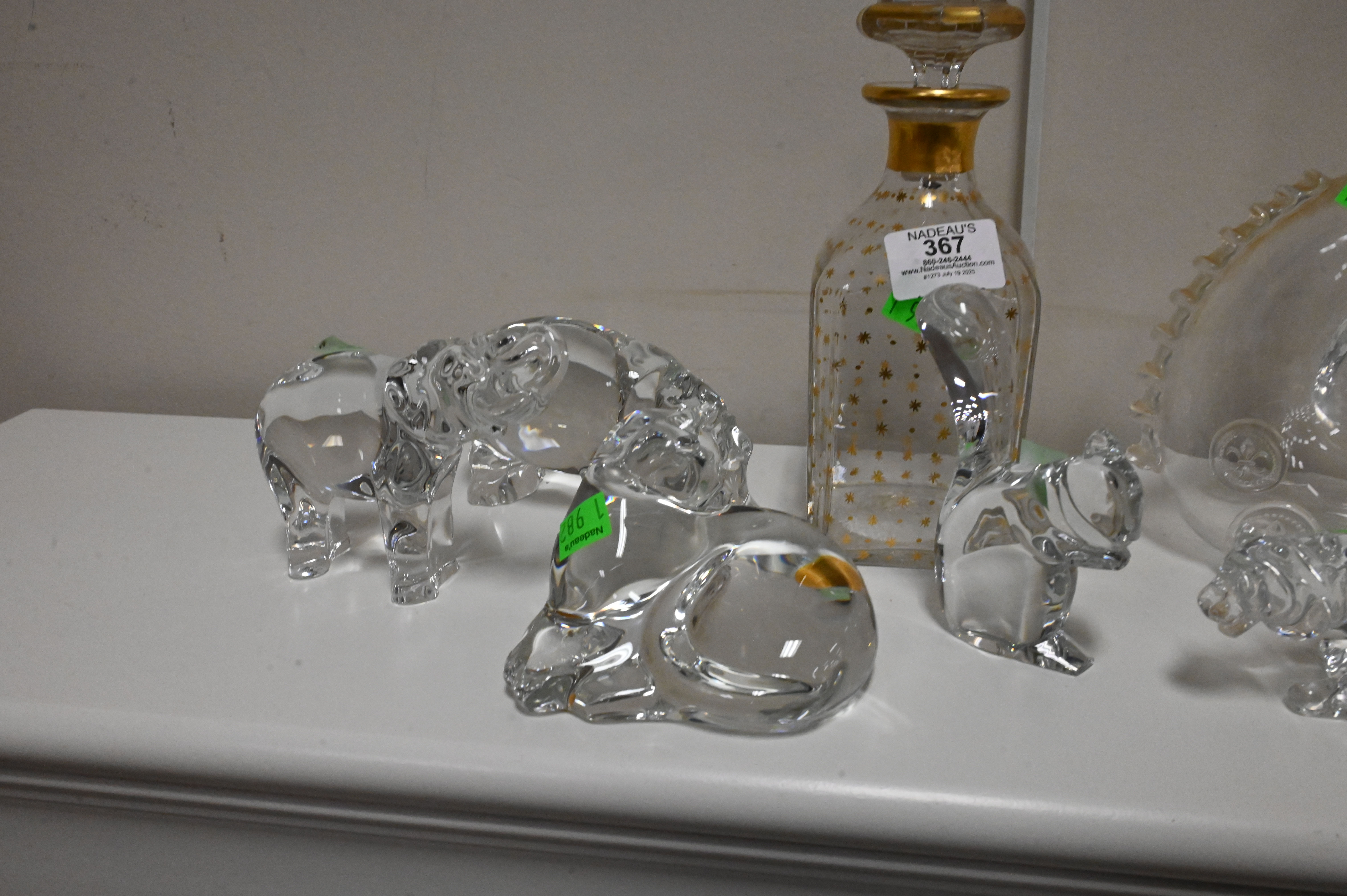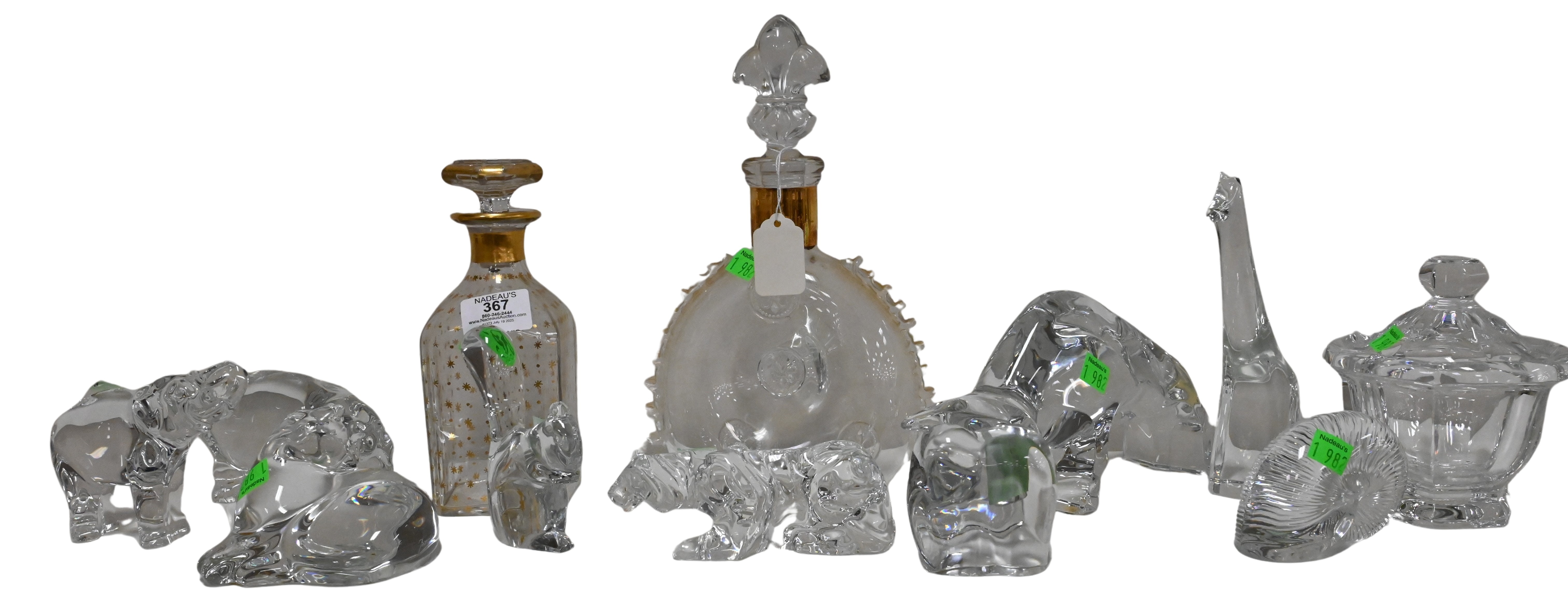Remy Martin cognac decanter Louis Xlll (purchased $4,929) Napoleon III gilt decanter, hippo, nautilus shell, squirrel, tiger, cat, Wall Street Bull (purchased $1,460) two elephants, giraffe, lidded jar