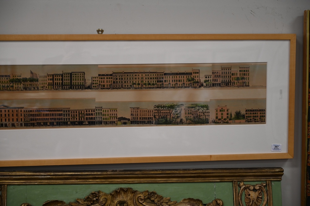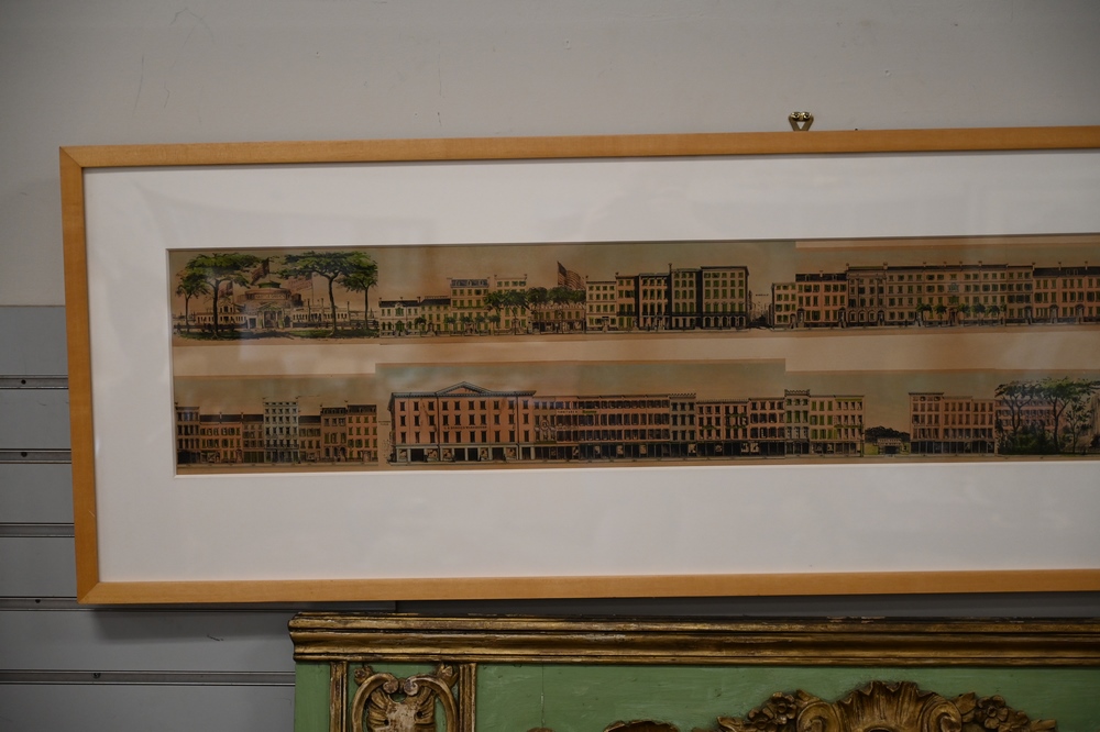 Lot 367: View of Broadway, circa 1850, lithograph in colors on paper, sight size 8 3/4″ x 48″.