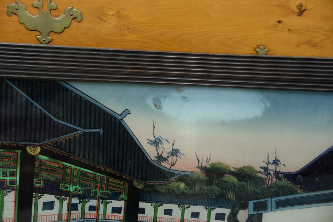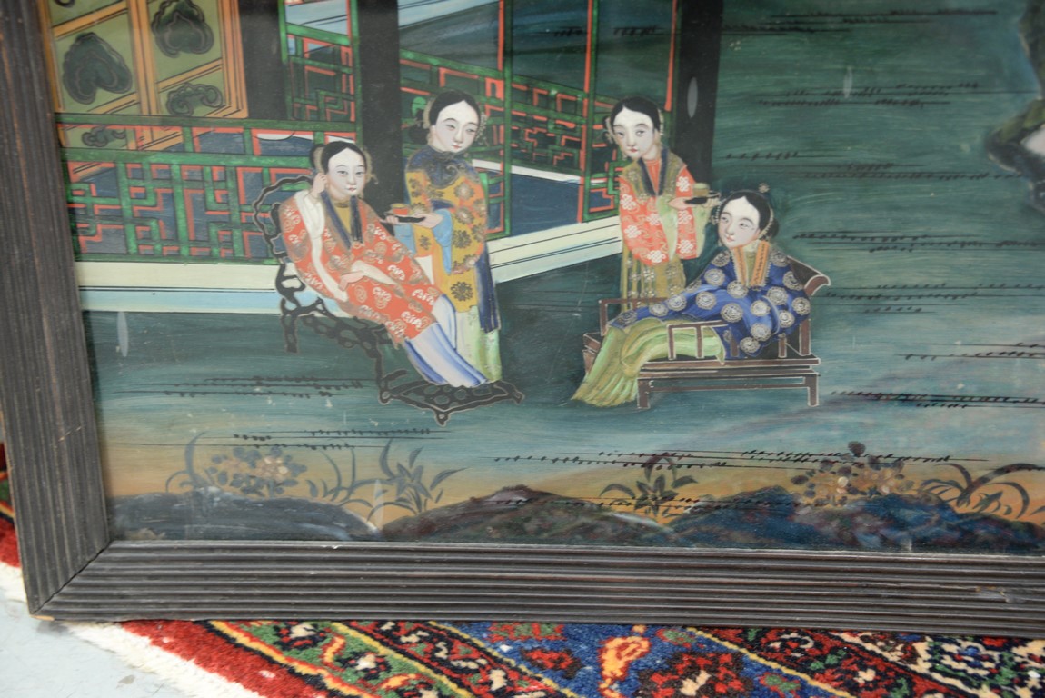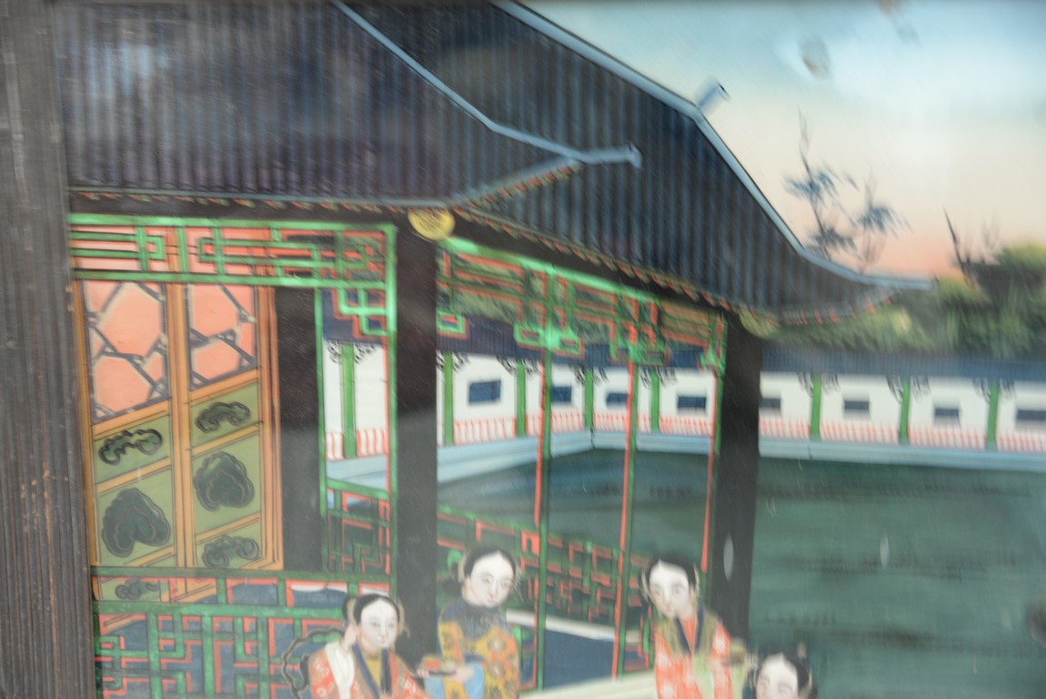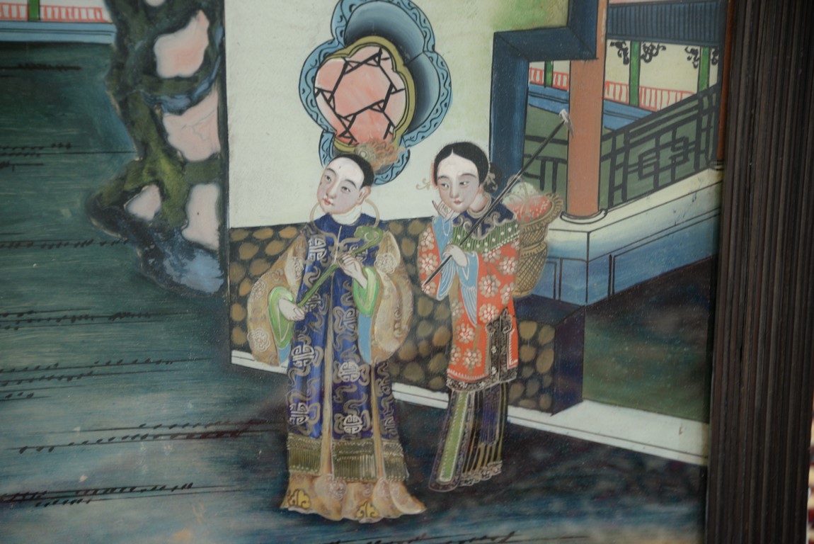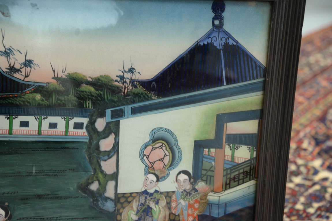 Chinese reverse painting on glass in hardwood frame, 18th-19th century. 19 x 27