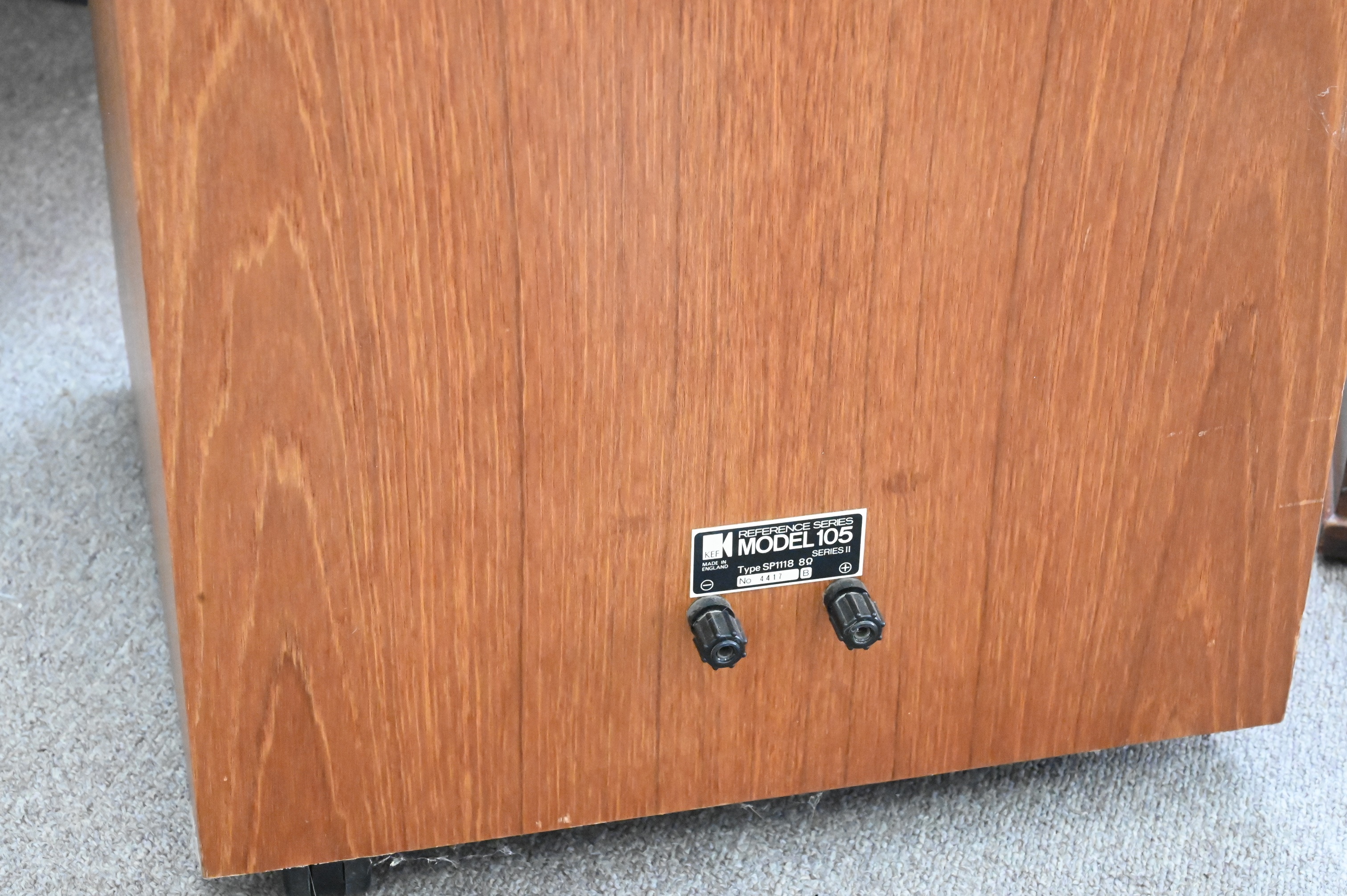 A Pair of KEF Speakers on Pedestals, model 105, Series II, height 39 inches, width 16 1/2 inches, depth 13 inches.