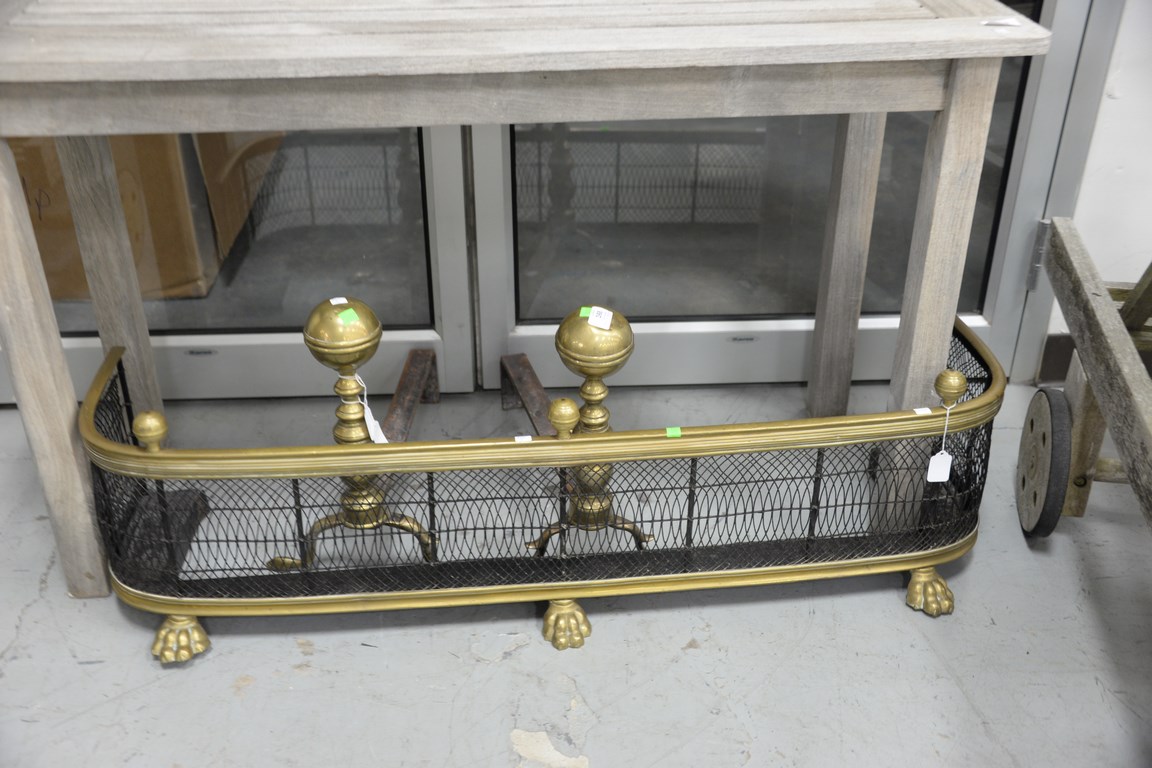 Fire fender and pair of andirons.