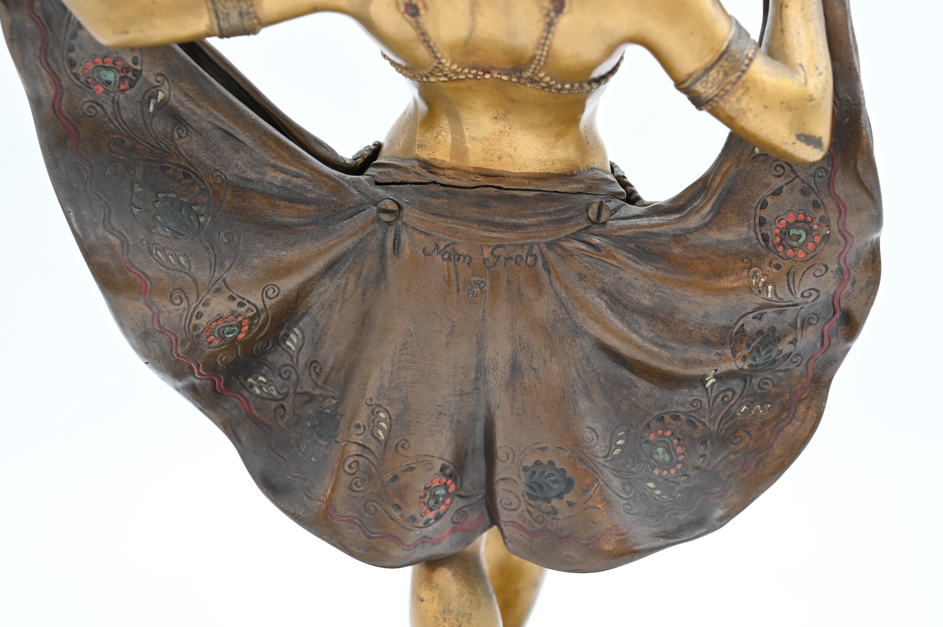 Signed under pseudonym on verso of skirt Nam Greb