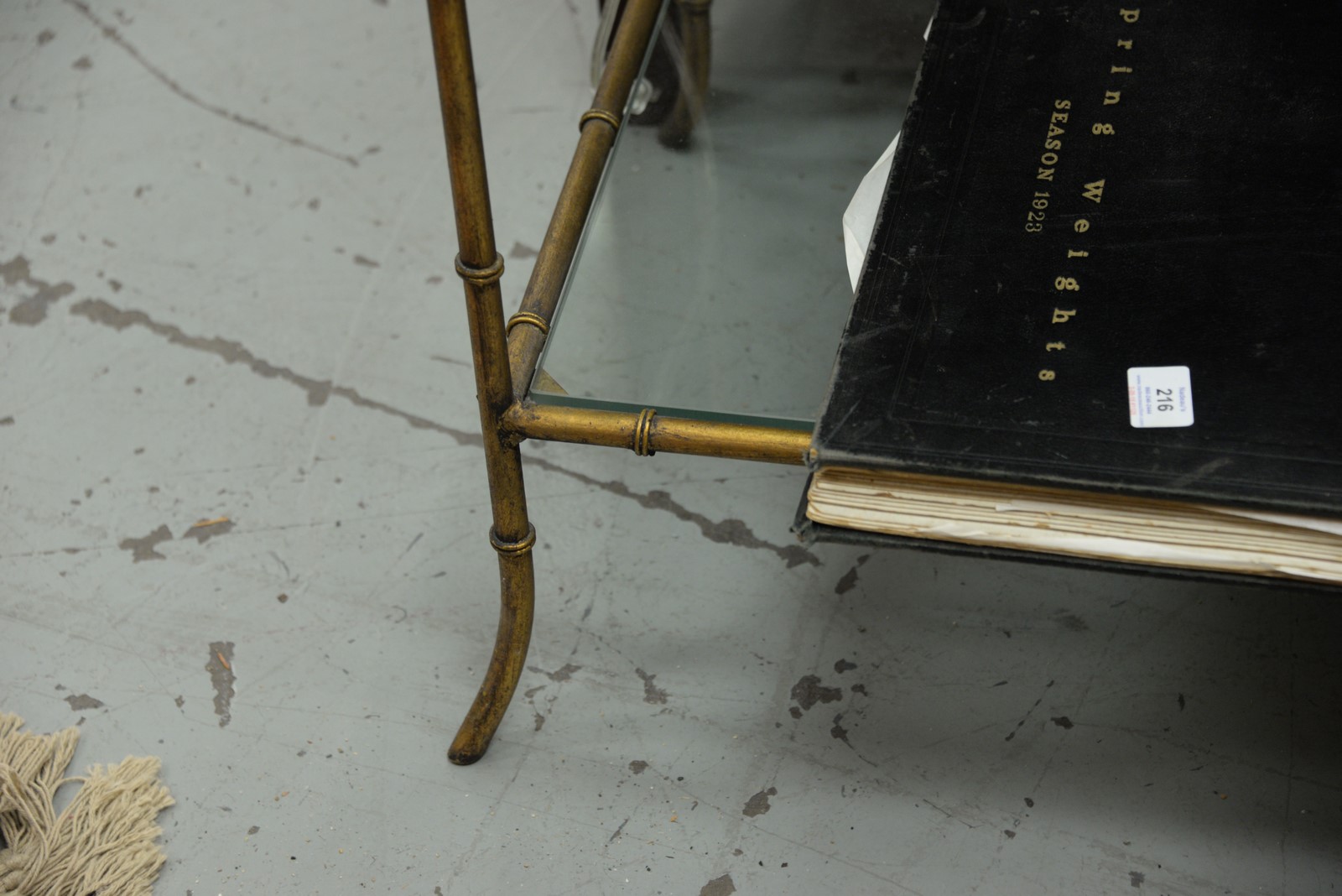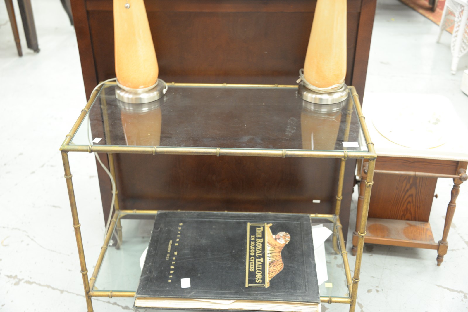 Metal and glass two tier bamboo style table. ht. 28 in. top: 17 x 32
