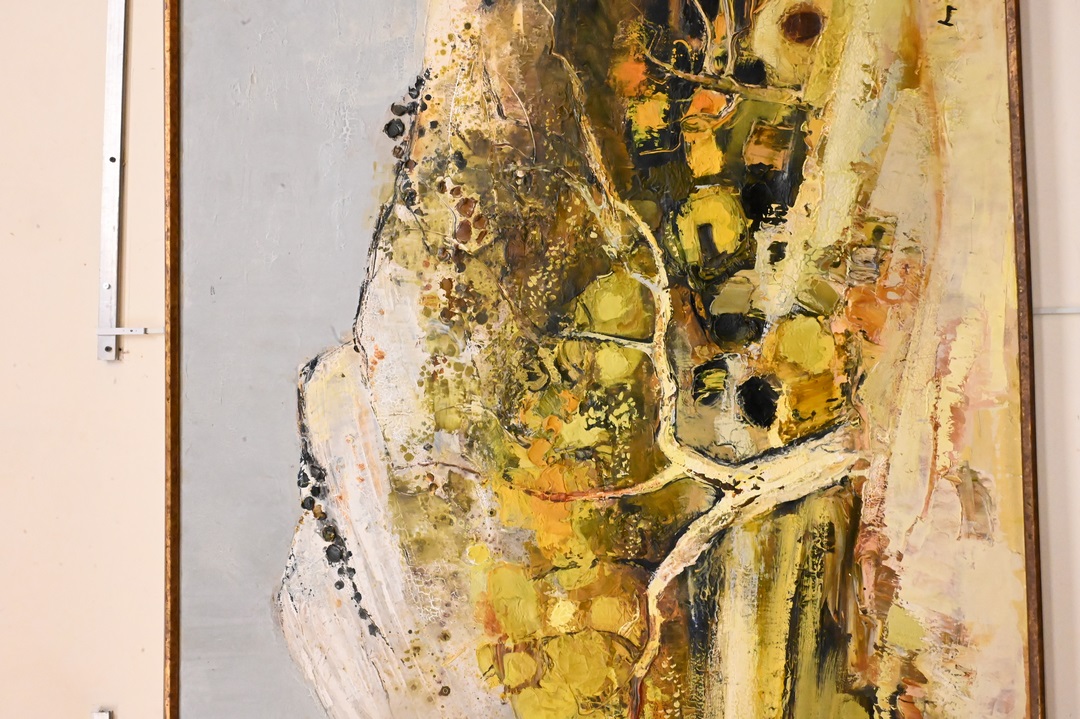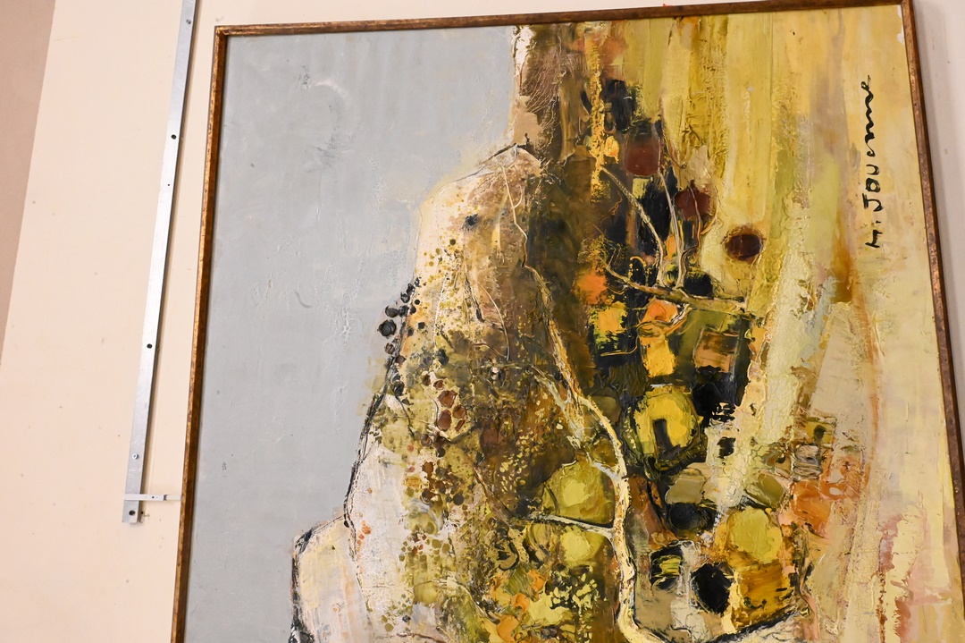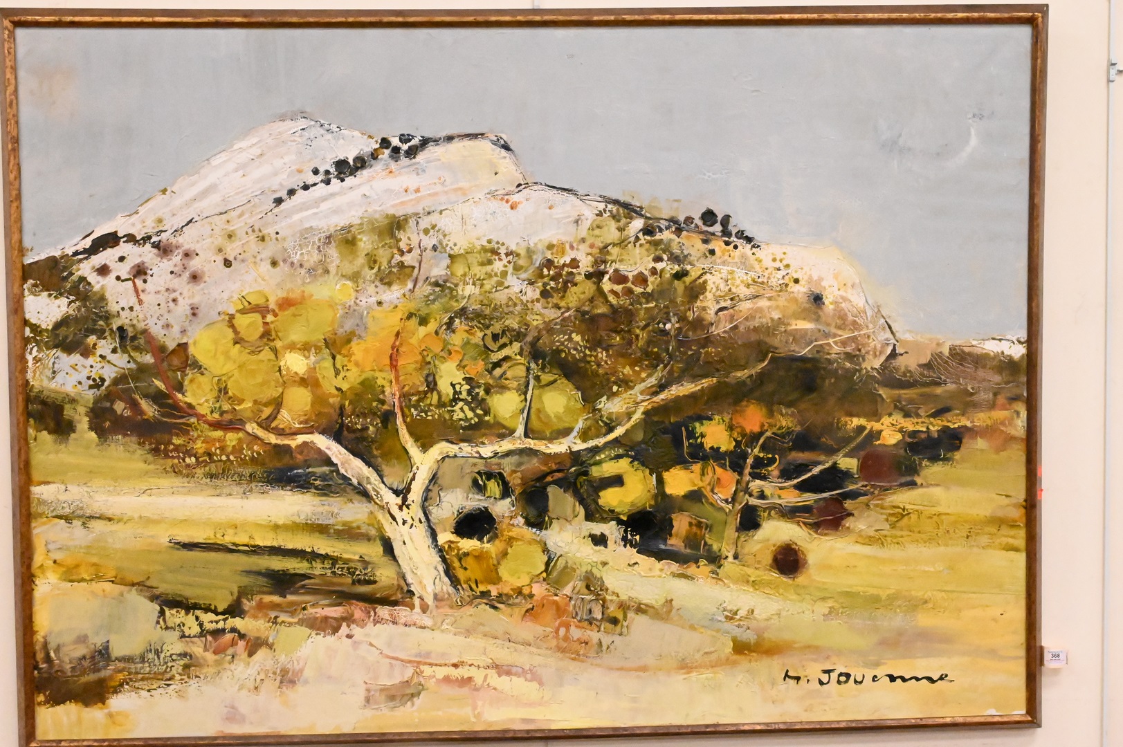 signed lower right M. Jouenne, signed and titled on back of canvas, Salon Des Independants, 1978 paper label on back