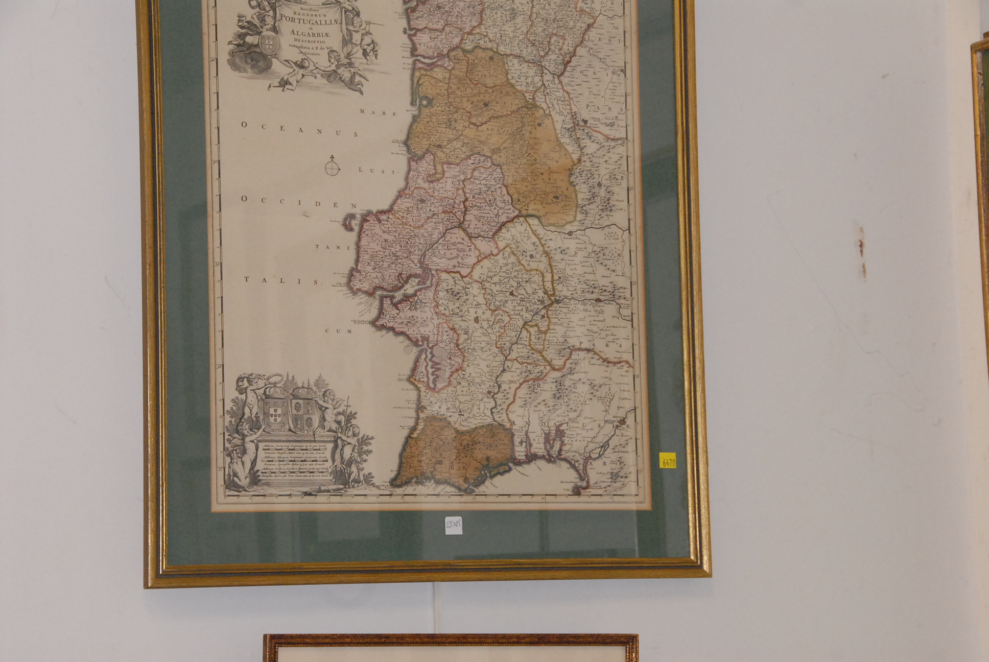 Three prints map of Portugal, pencil signed print, and print of doorway.