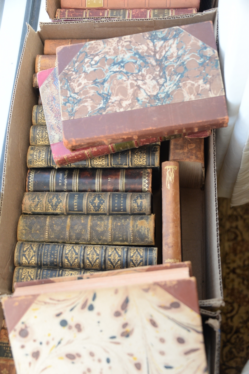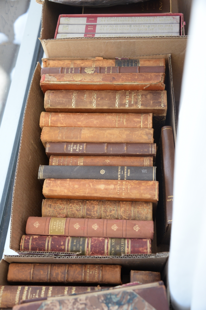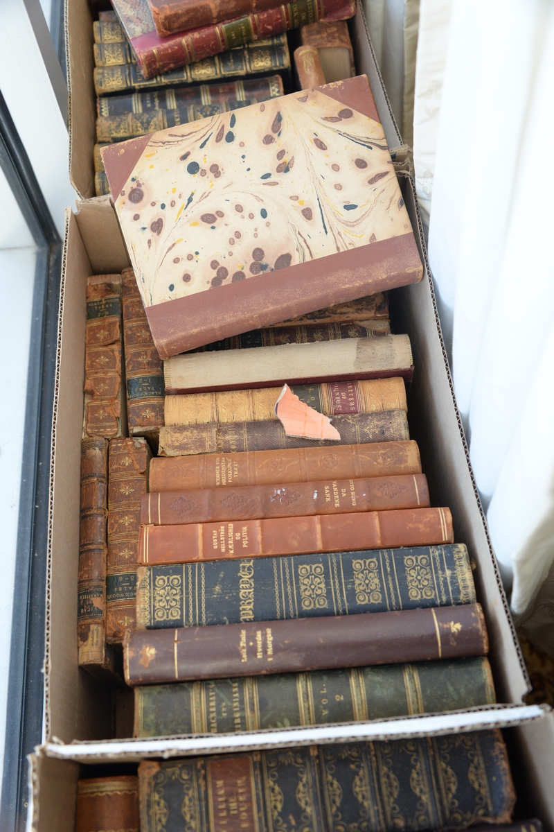 Nine boxes of leather bound books plus large Audubon’s Birds of America.