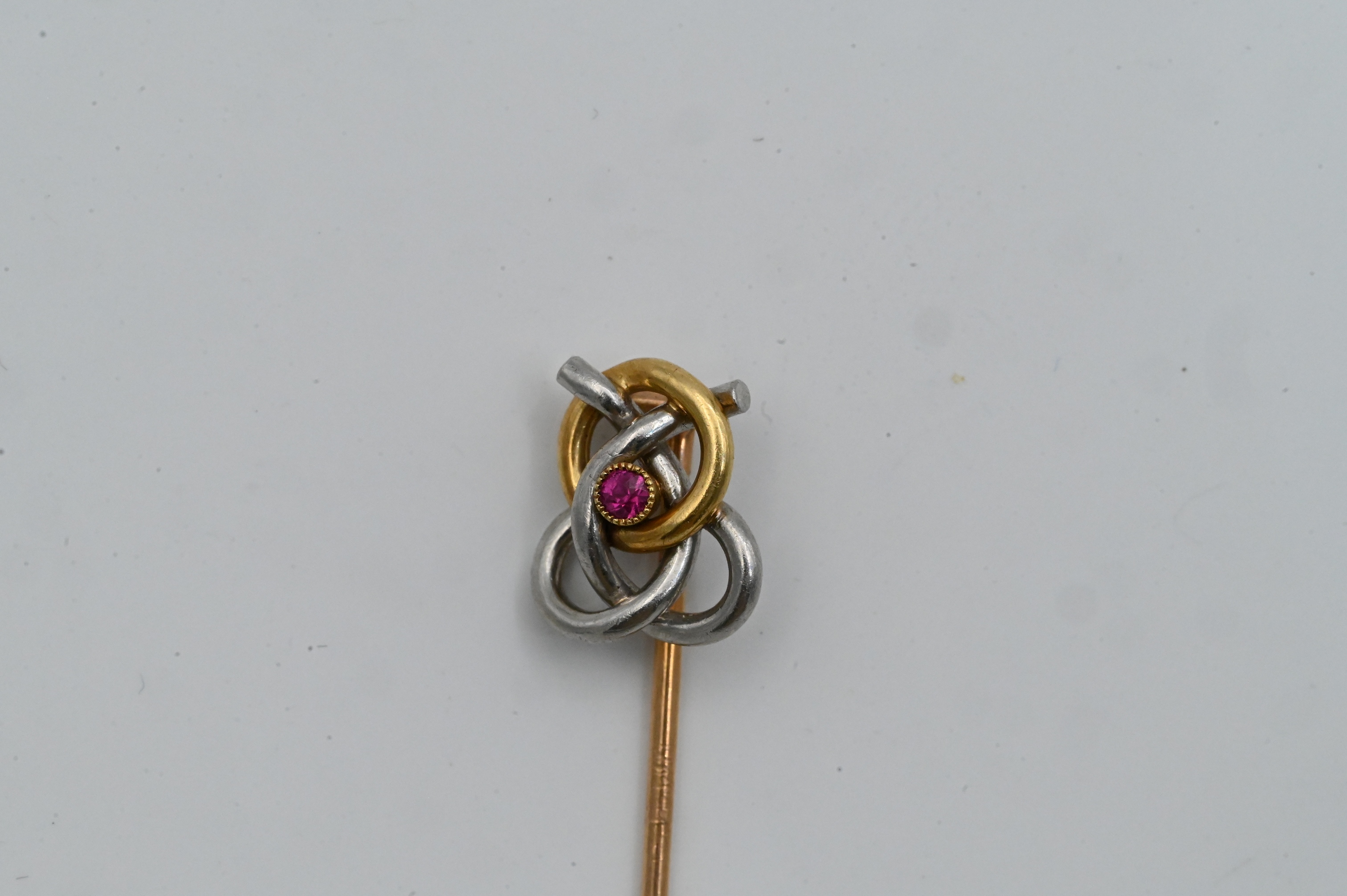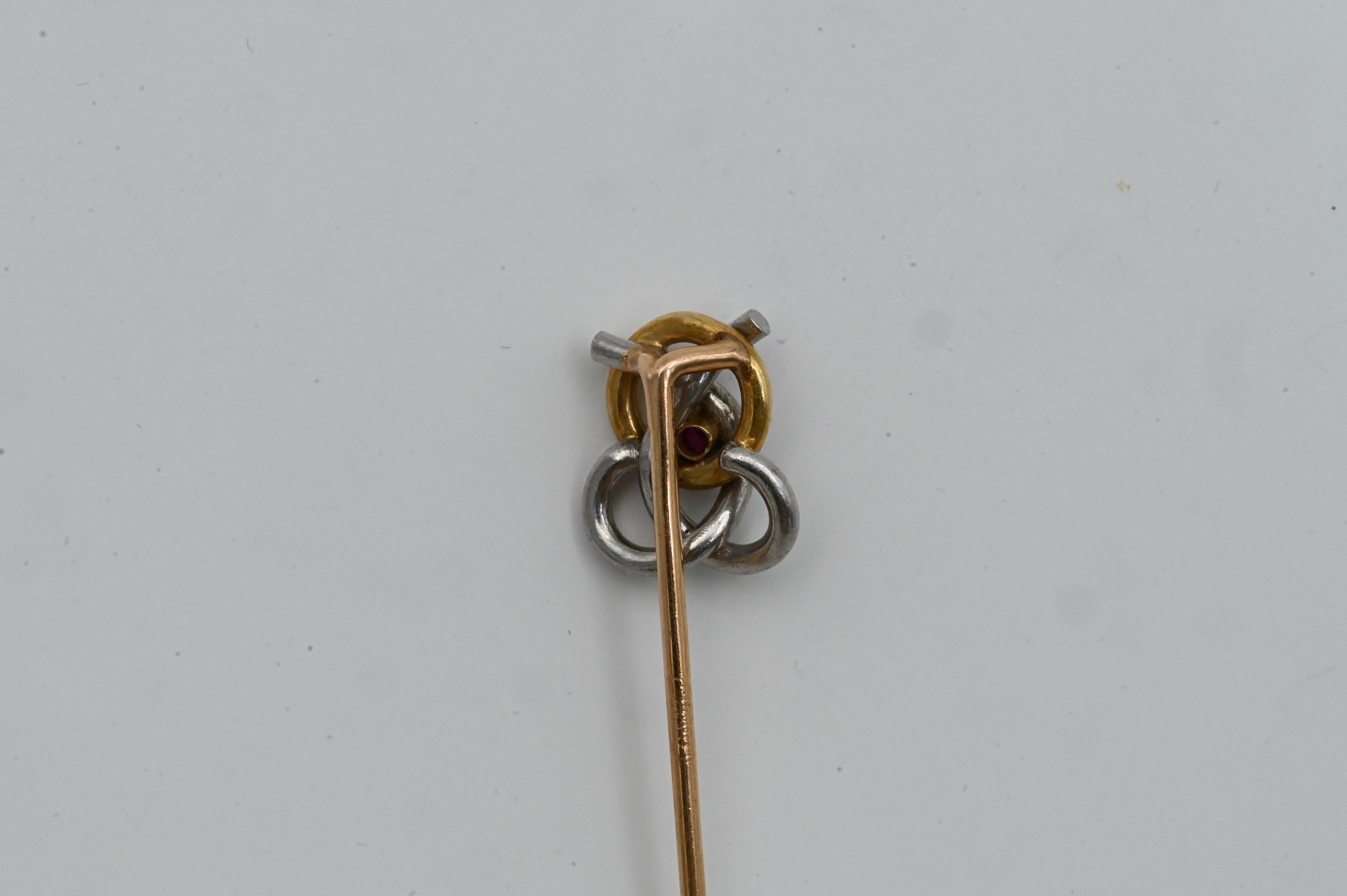 Lot 369: 14K Gold and Silver Stick Pin with Ruby Accent