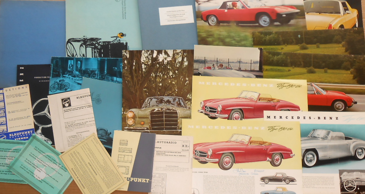 26 broc misc sheets – Mercedes Benz, BMW, Porsche non 356, 911, 912 items