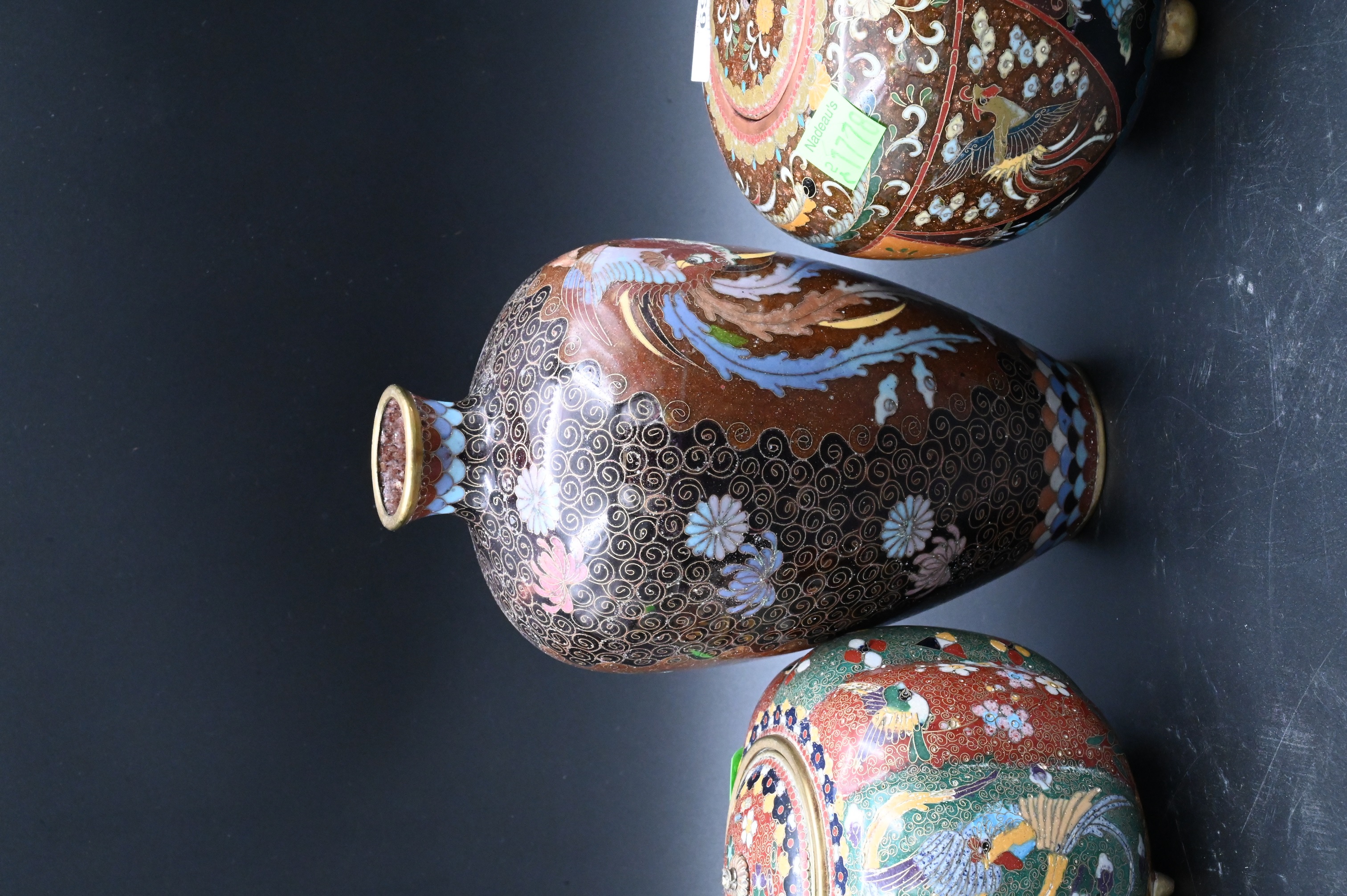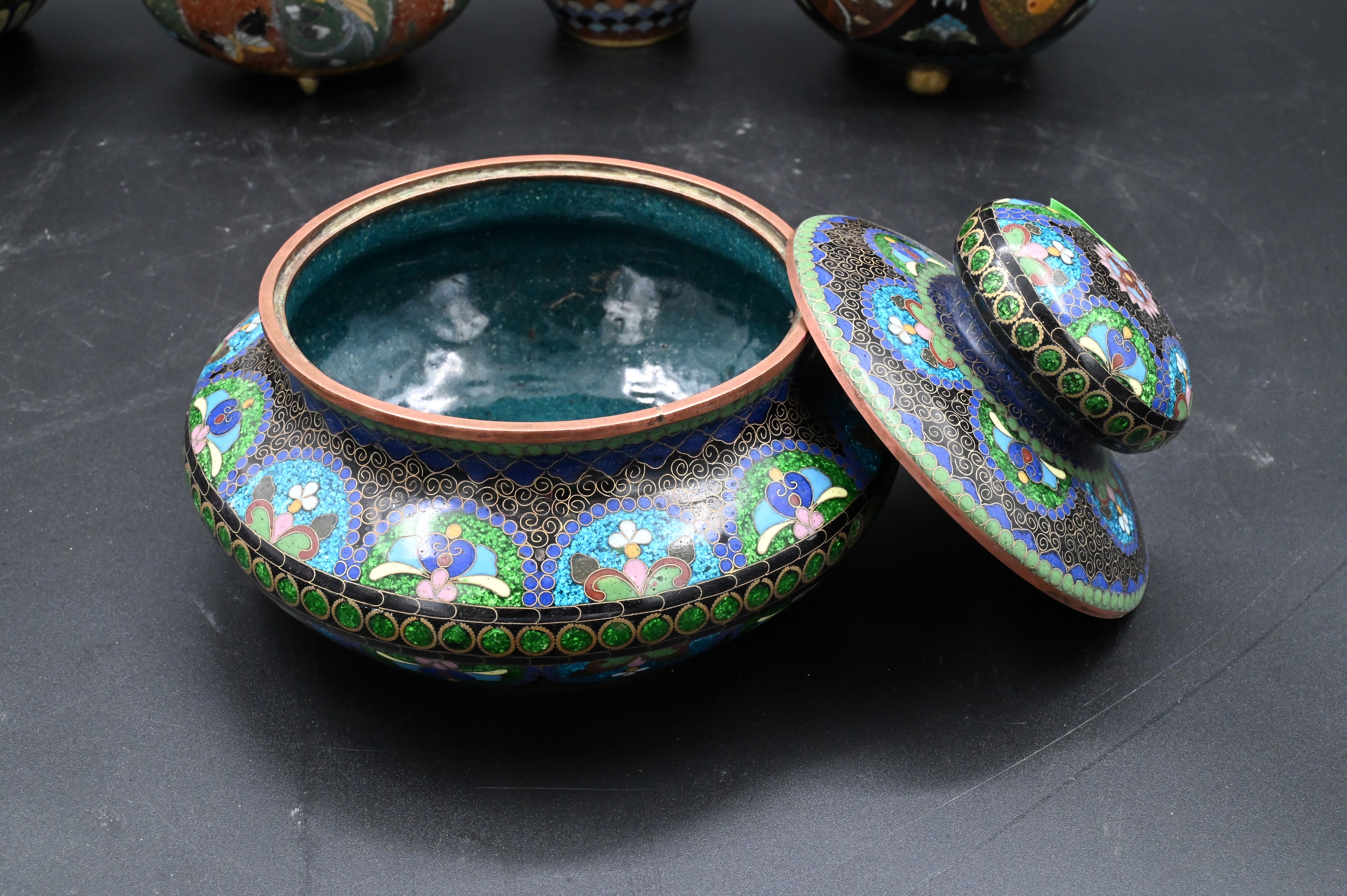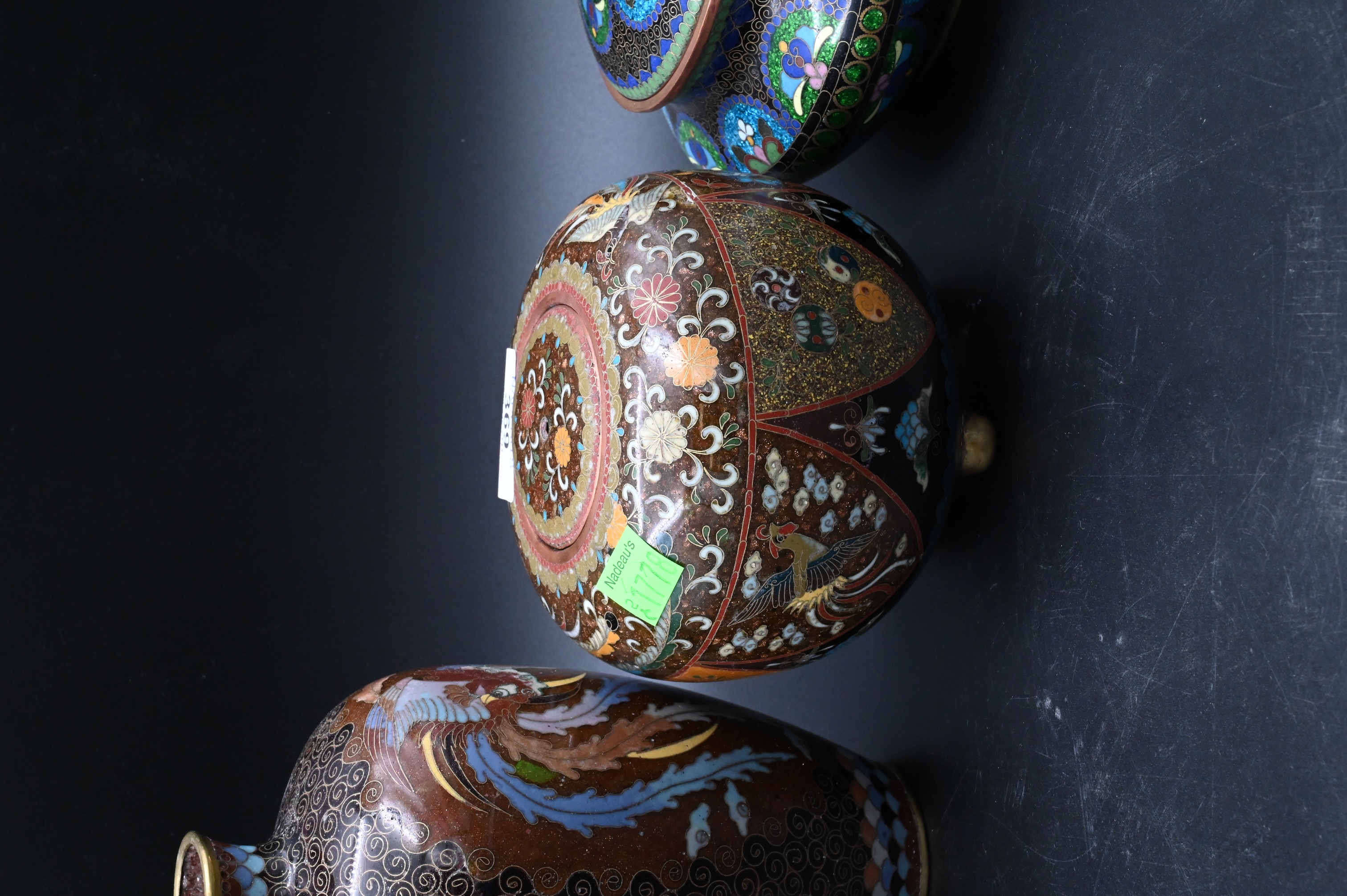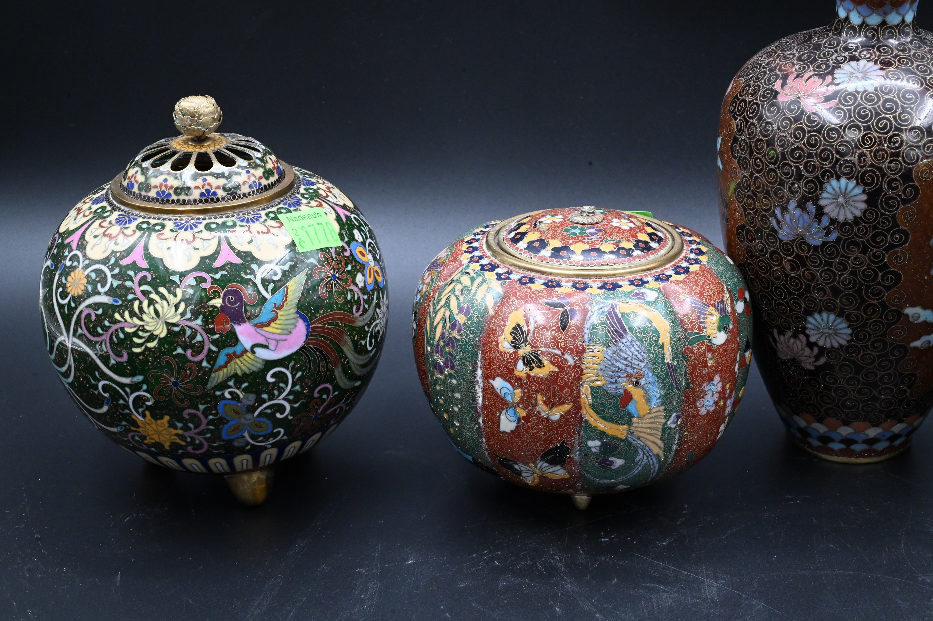Lot 369: Group of Five Japanese Cloisonne Enamel Vessels