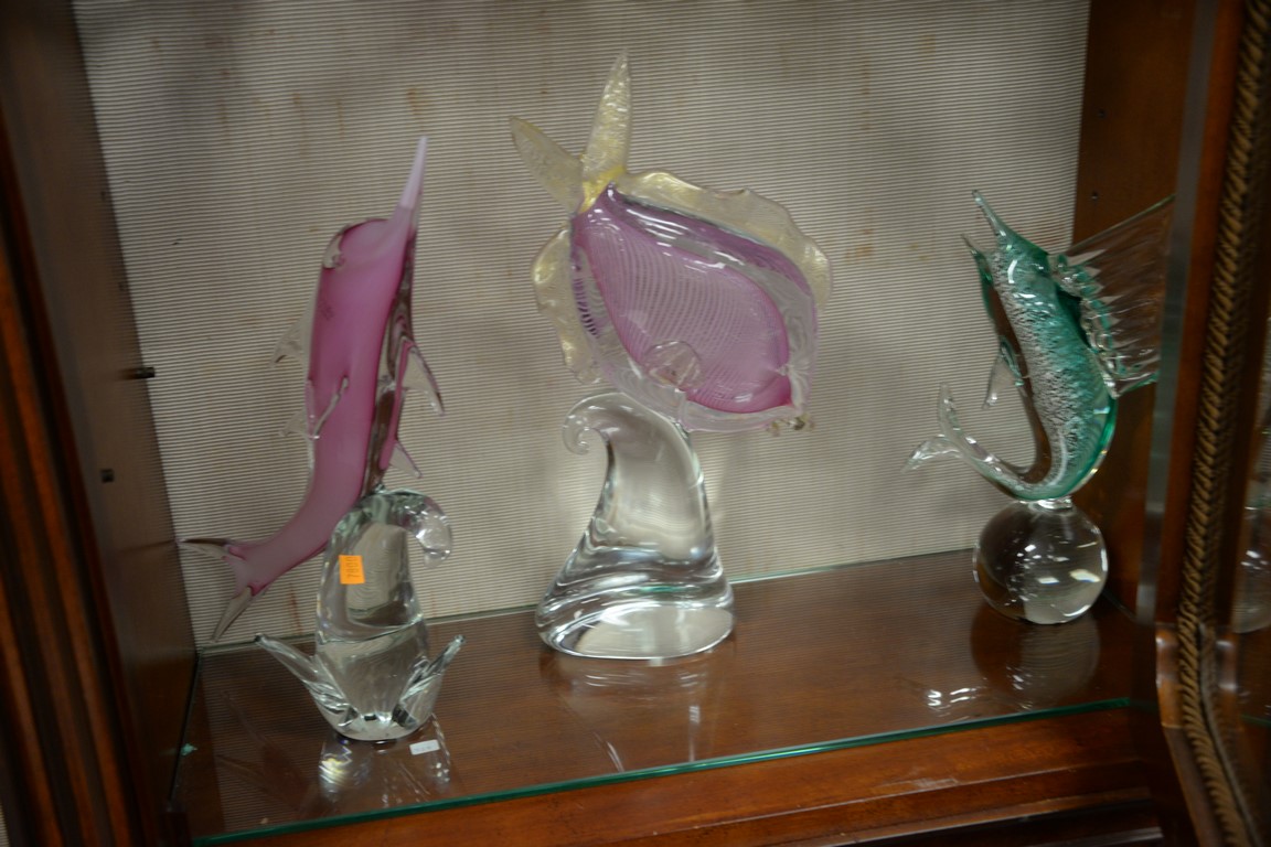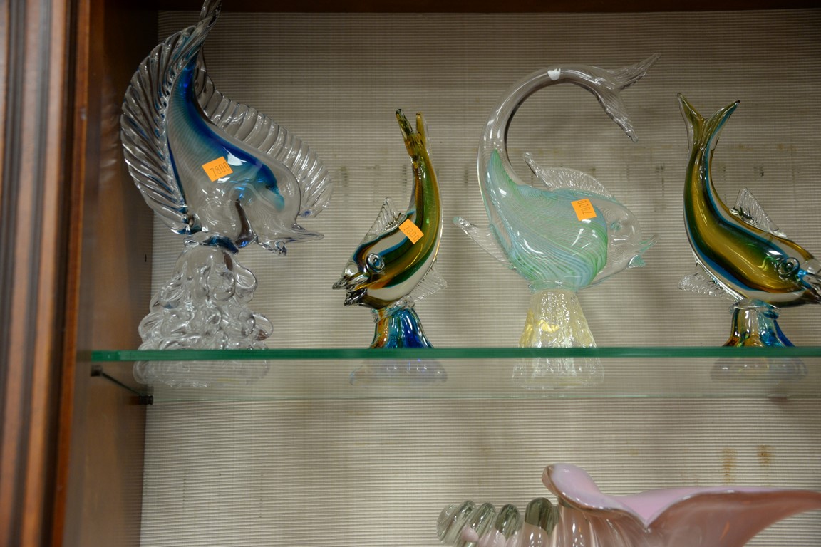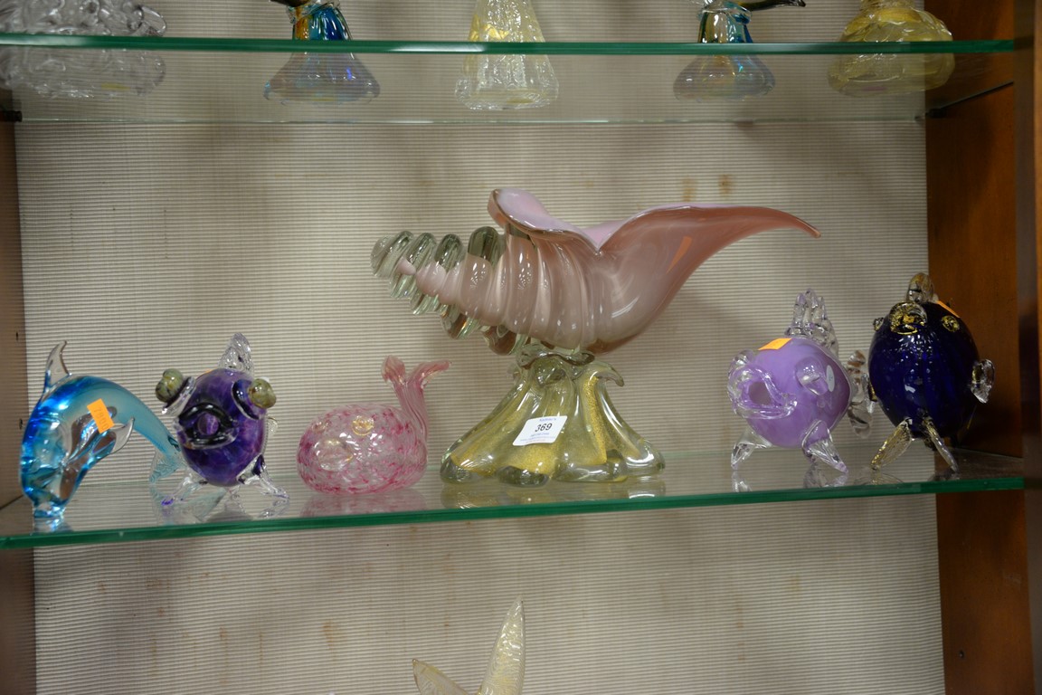 Lot 369: Group of fourteen Murano art glass pieces to include a large conch shell, five large fish, and eight small fish. ht. 3 1/2 in. to 18…