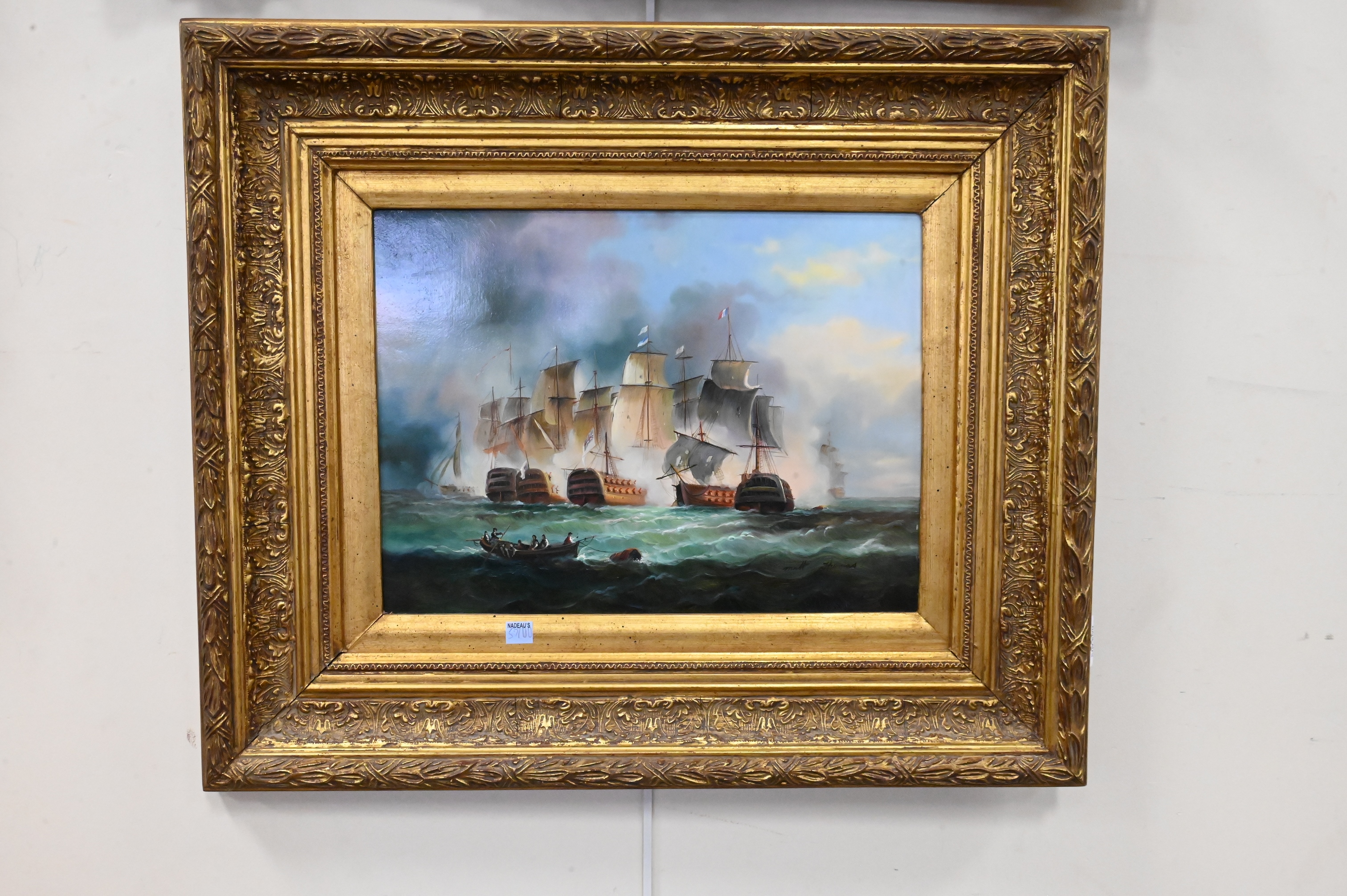 Naval Battle Seascape with French and American Ships