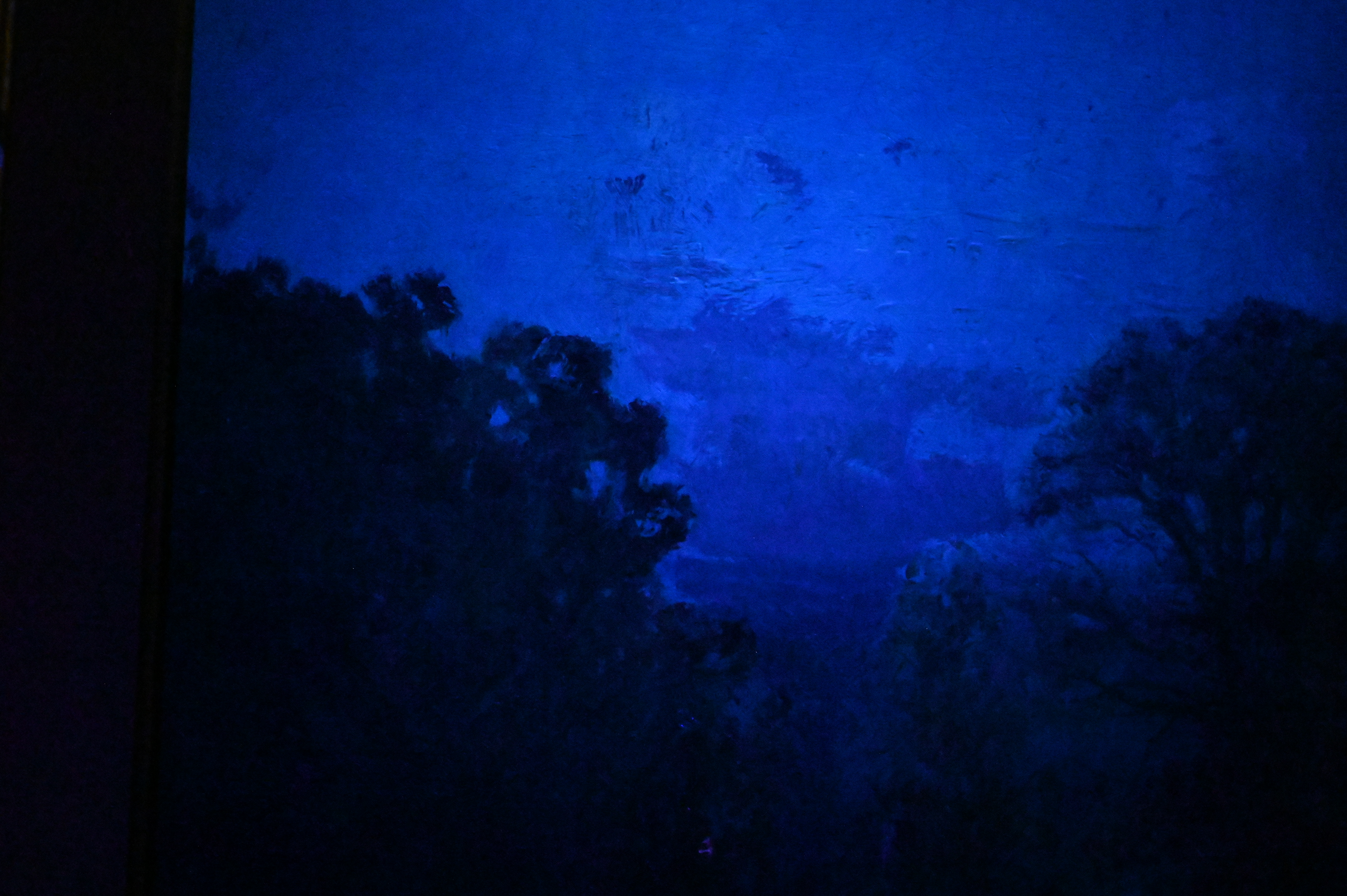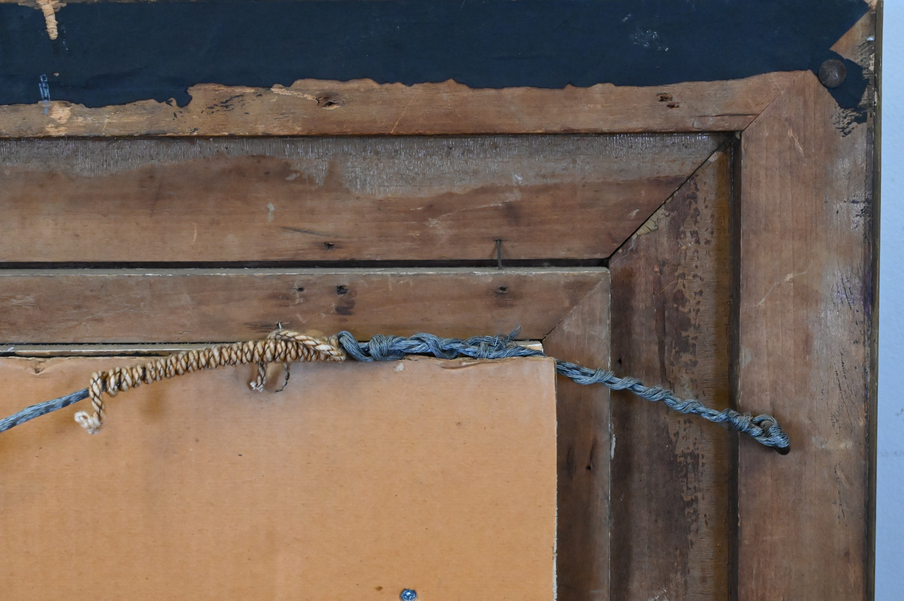 Presents well. Large repair with inpainting center left in sky and background. craquelure. May need to be relined and restretched. Some surface grime and loss to frame. Streaks to varnish. Surface grime.