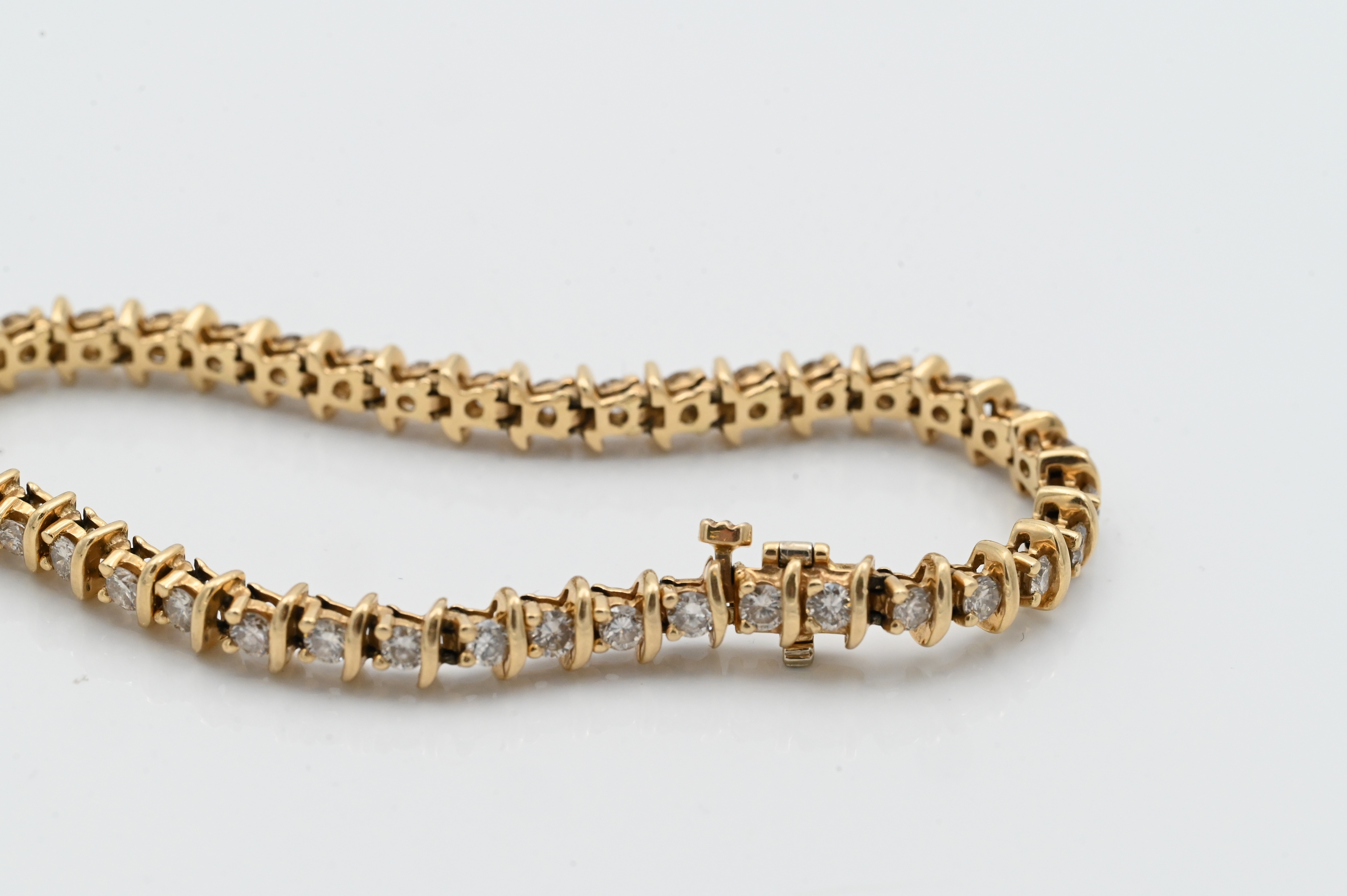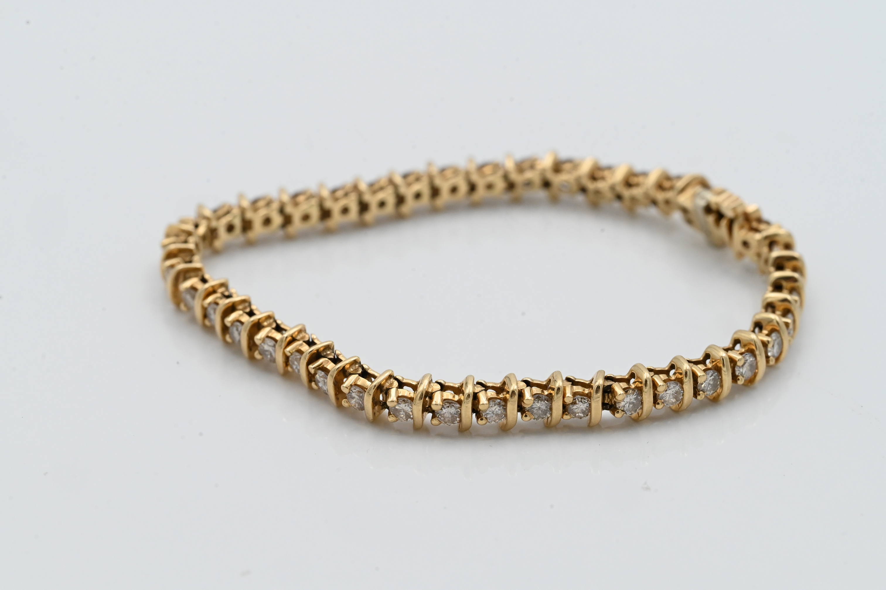 Lot 37: 14K Yellow Gold Diamond Tennis Bracelet