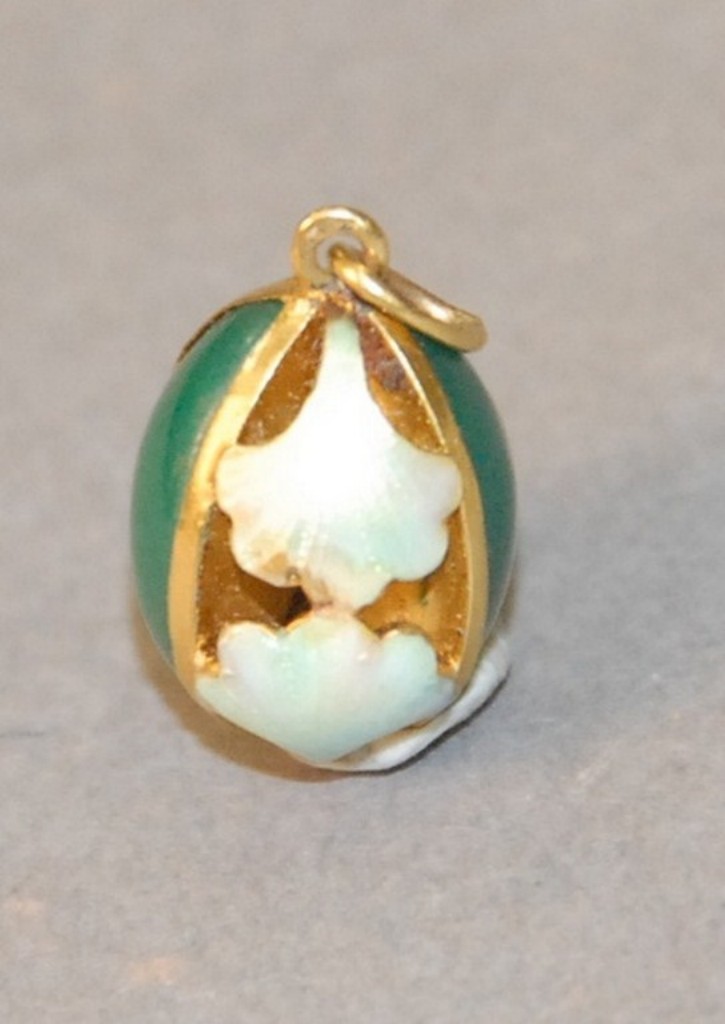 14kt gold enameled egg shaped pendant set with emeralds minor imperfections, possibly Russian.