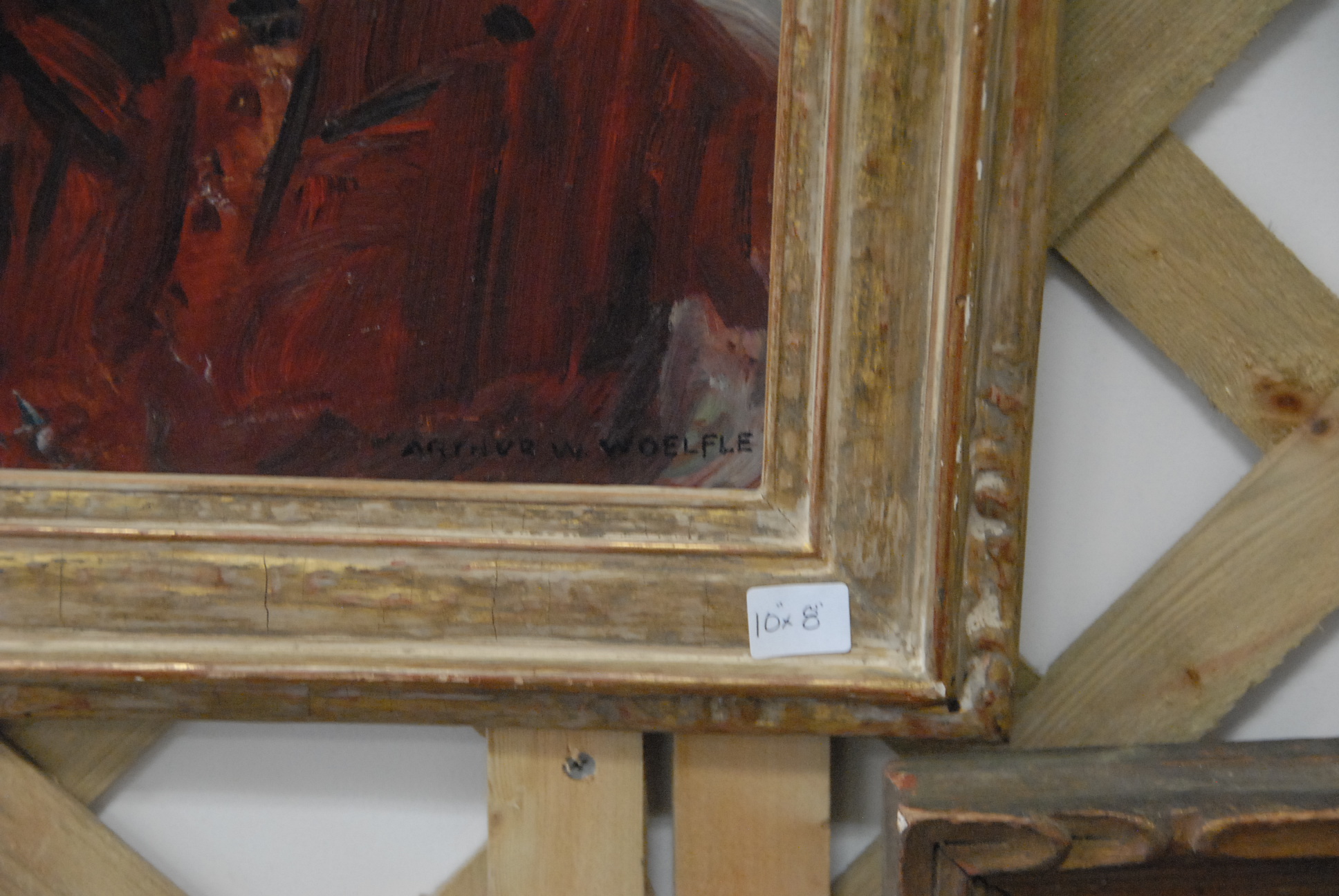 Lot 37: Arthur William Woelfle 1873-1936 oil on board, bust of man in red, signed lower right Arthur W. Woelfle. 10 x 8