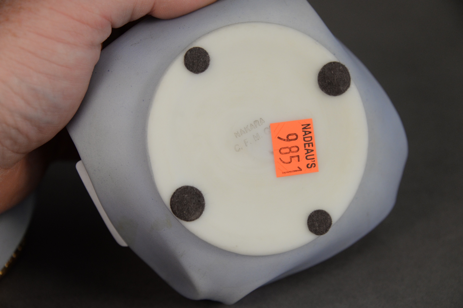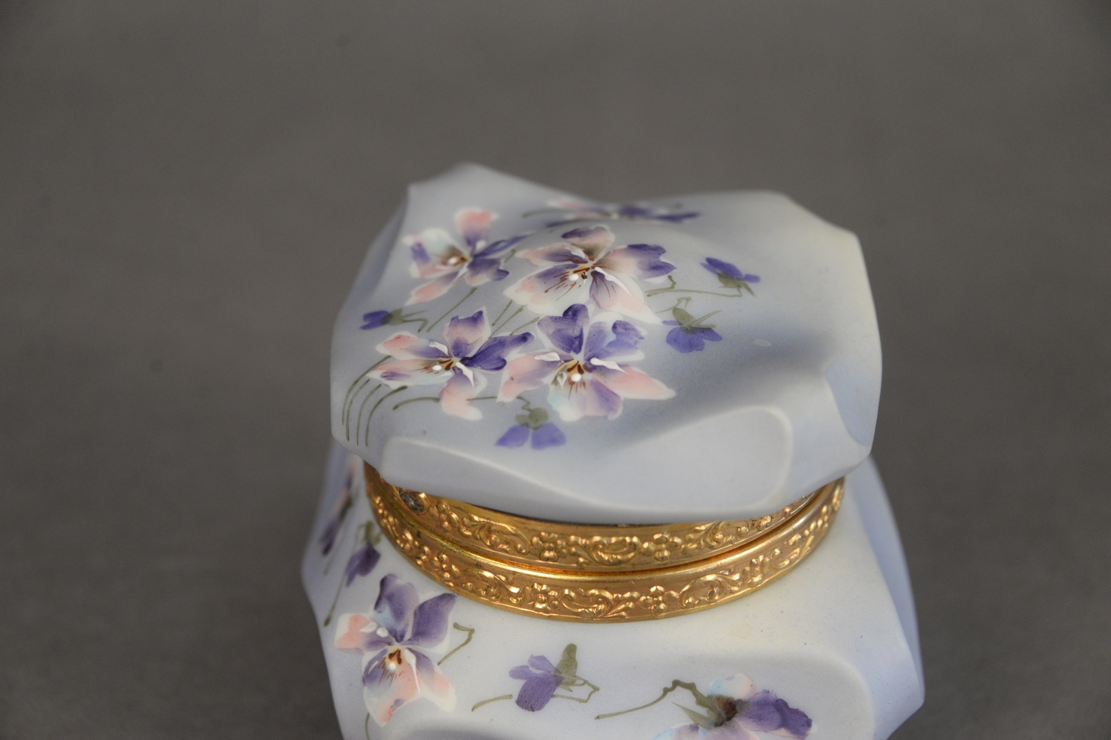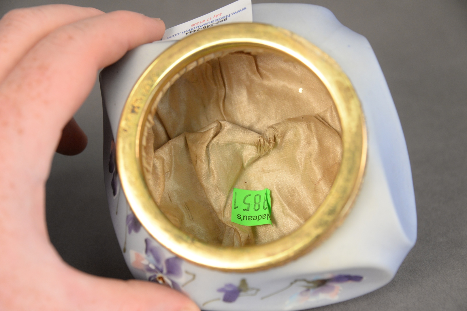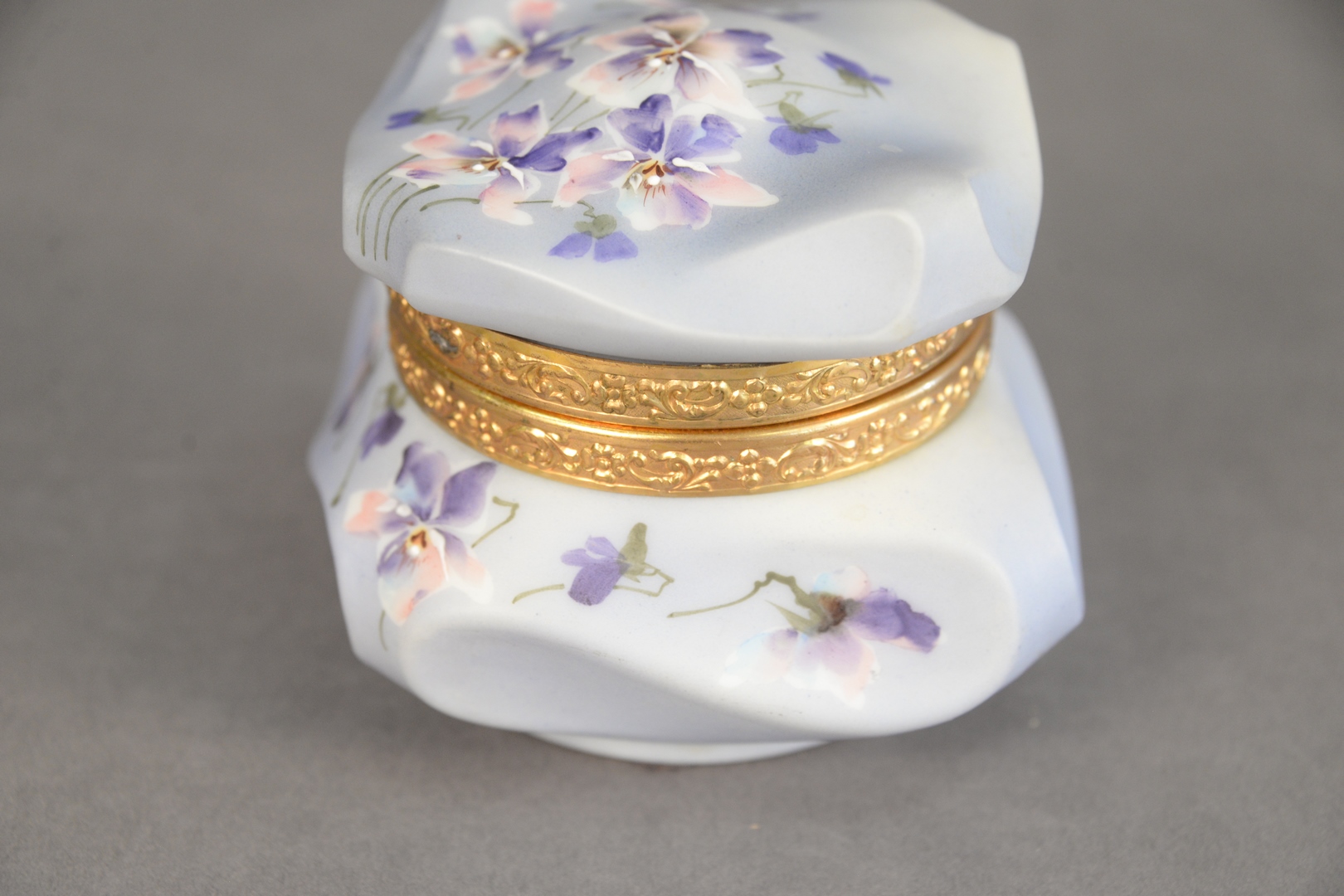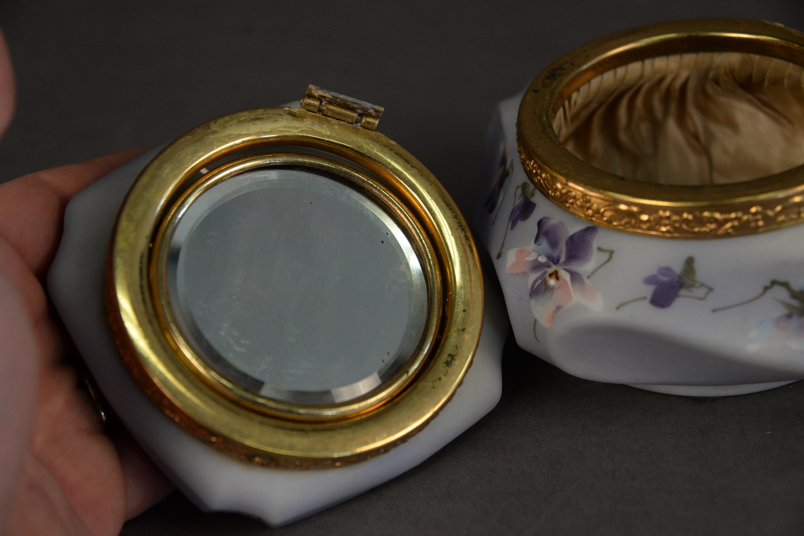 Lot 37: C.F. Monroe Company “Nakara” Dresser Box, having mirrored lid interior, height 3 1/2 inches, width 5 1/2 inches, depth 4 1/2 inches.