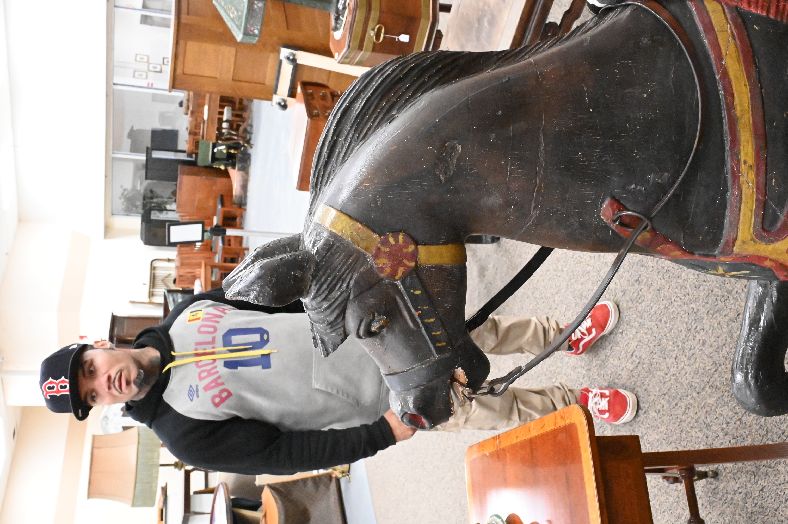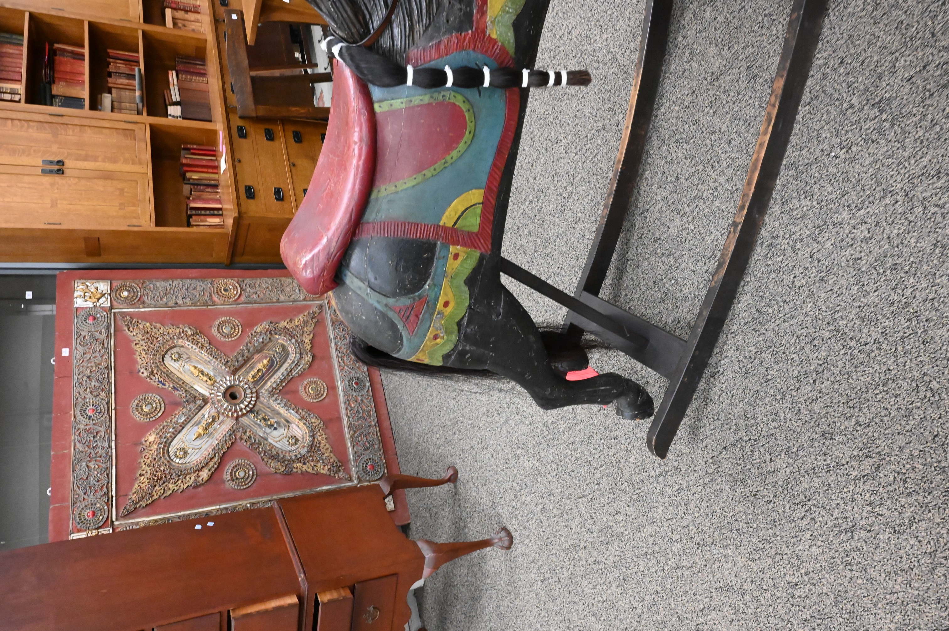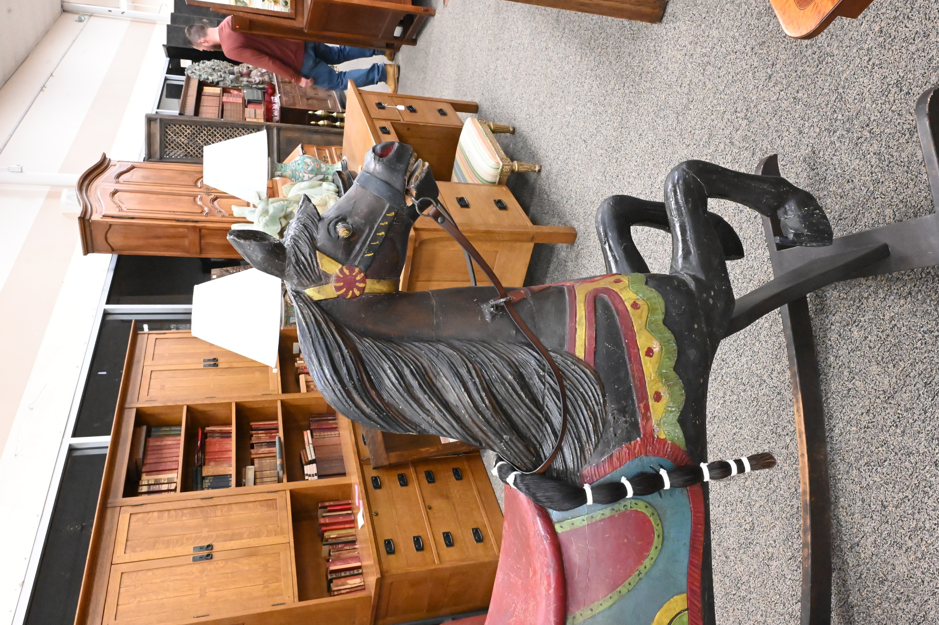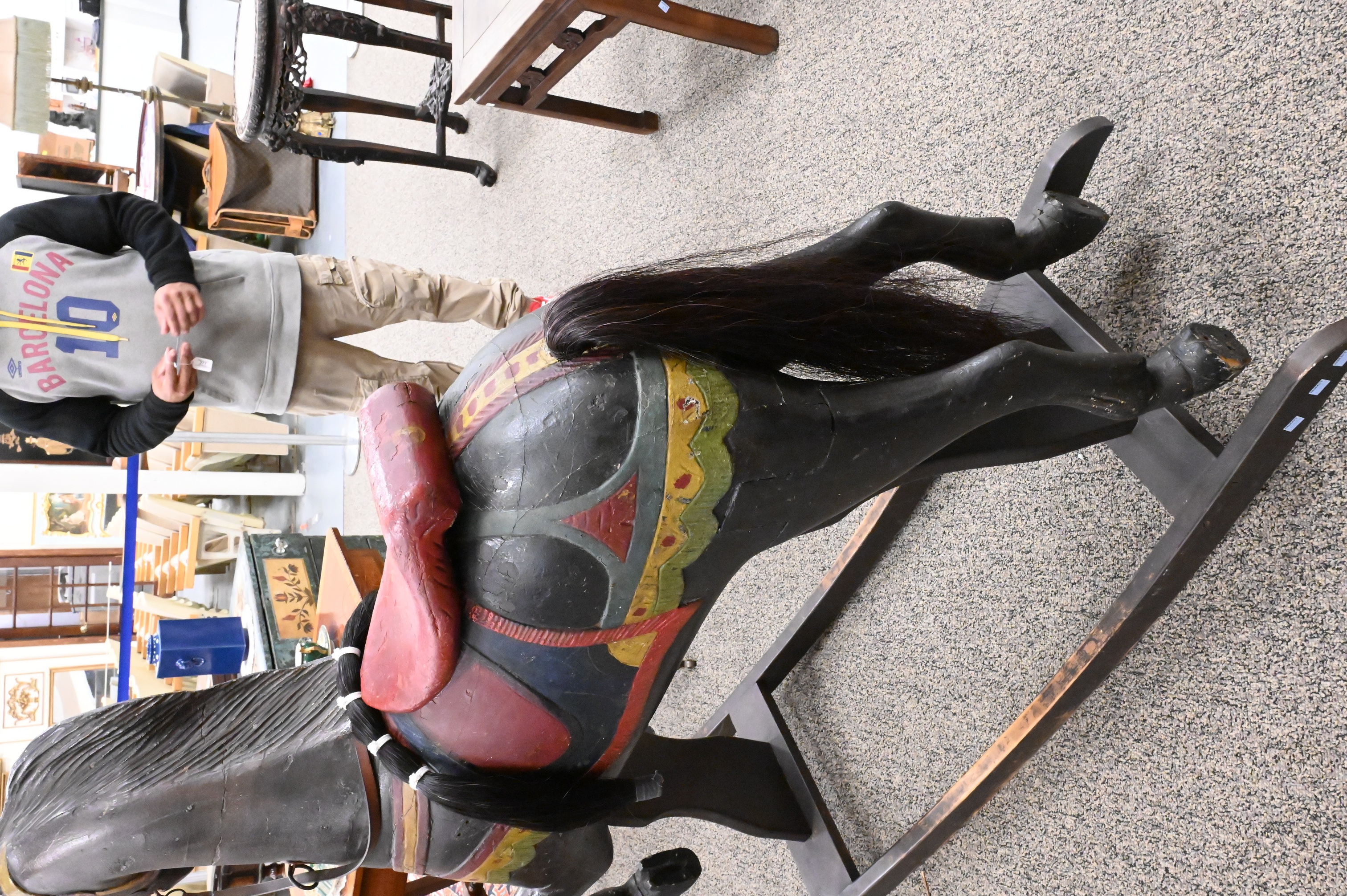 Lot 37: Carousel Horse in Original Park Paint Attributed to Dentzel Carousel Company Philadelphia Now Mounted as a Rocking Horse