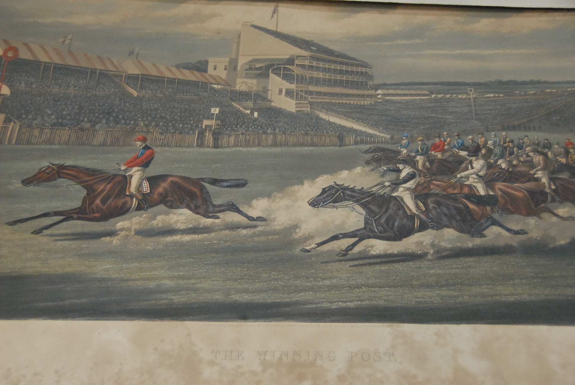 Early racing prints, Doncaster Races, The Winning Post, and Tattenham Corner, 13 1/2 x 24, 17 x 30, and 17 x 30.