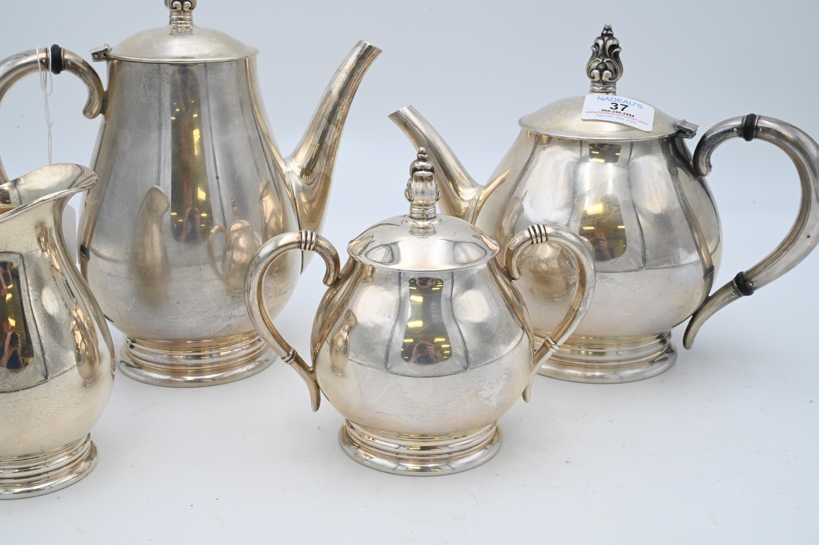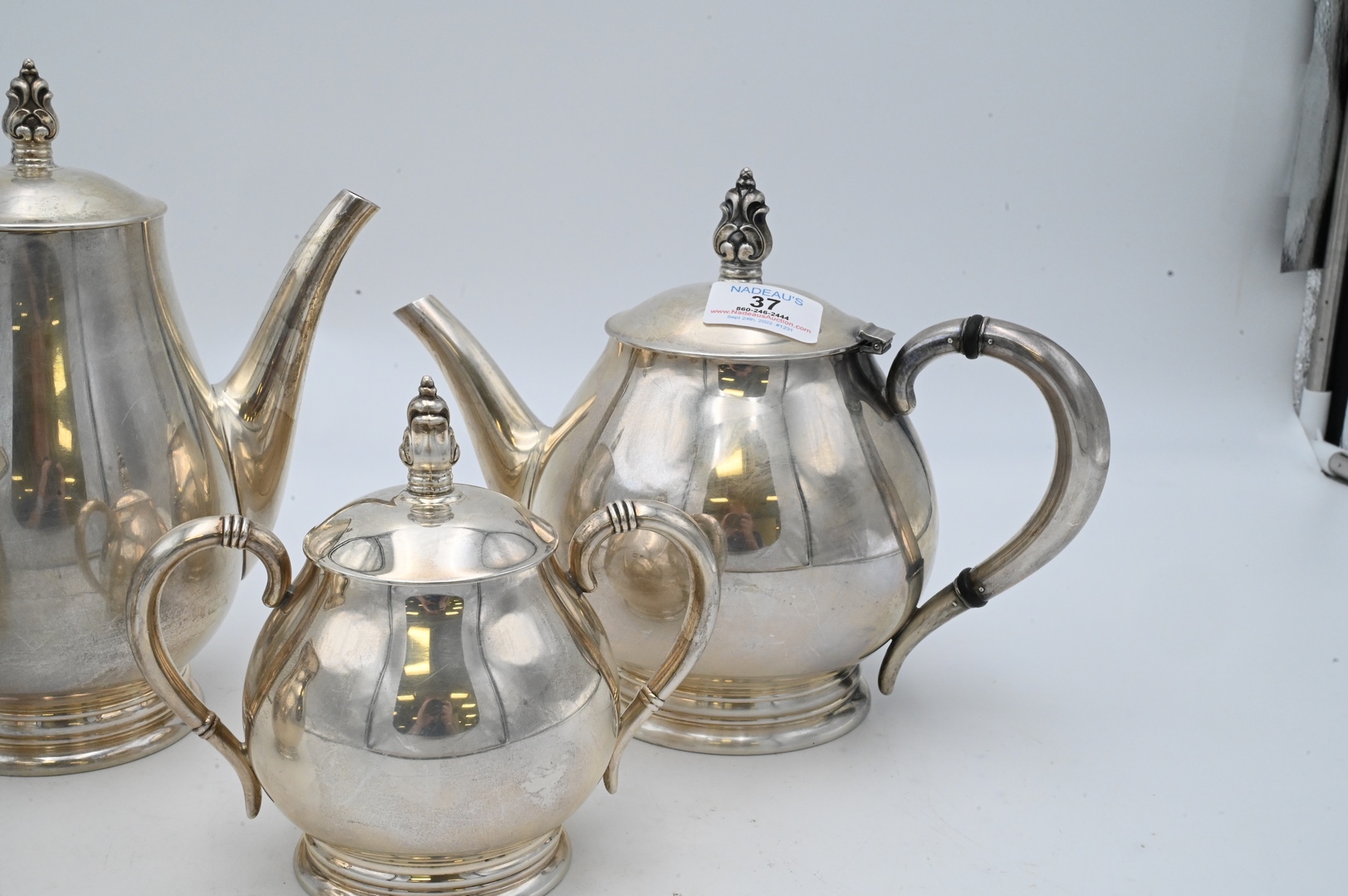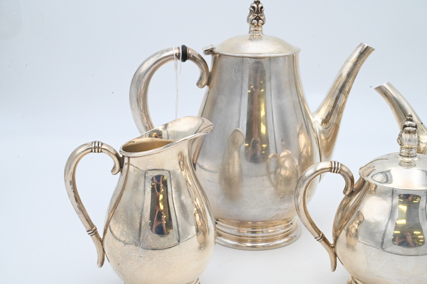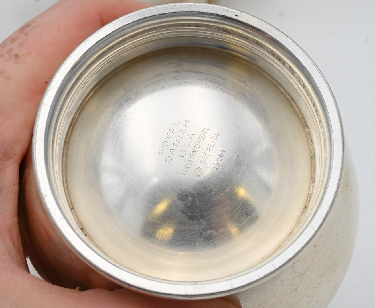 Four Piece Royal Danish Sterling Silver Tea/Coffee Service, to include teapot, coffee pot, creamer, along with sugar, teapot height 8 1/2 inches, 68.2 t.oz.