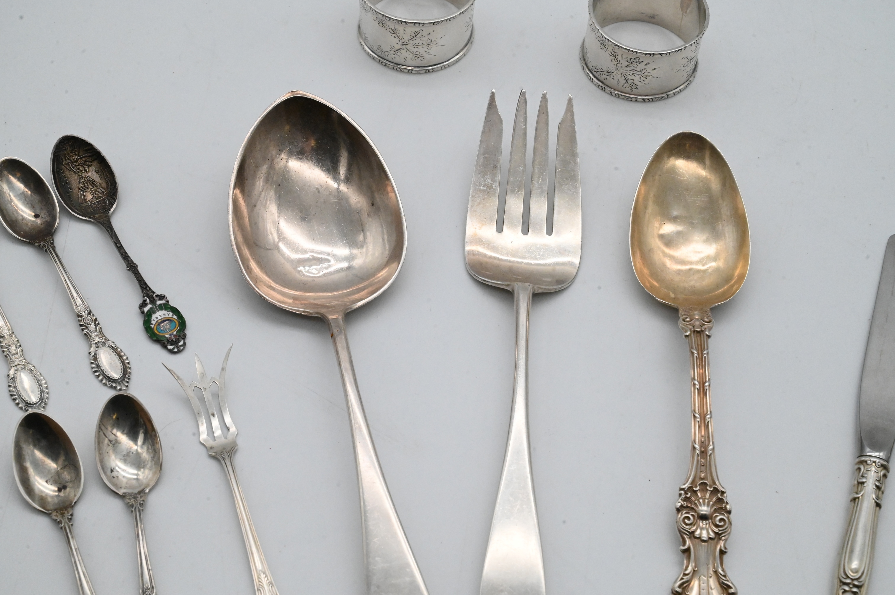 to include serving forks, spoons, two napkin rings, and demi spoons, etc
