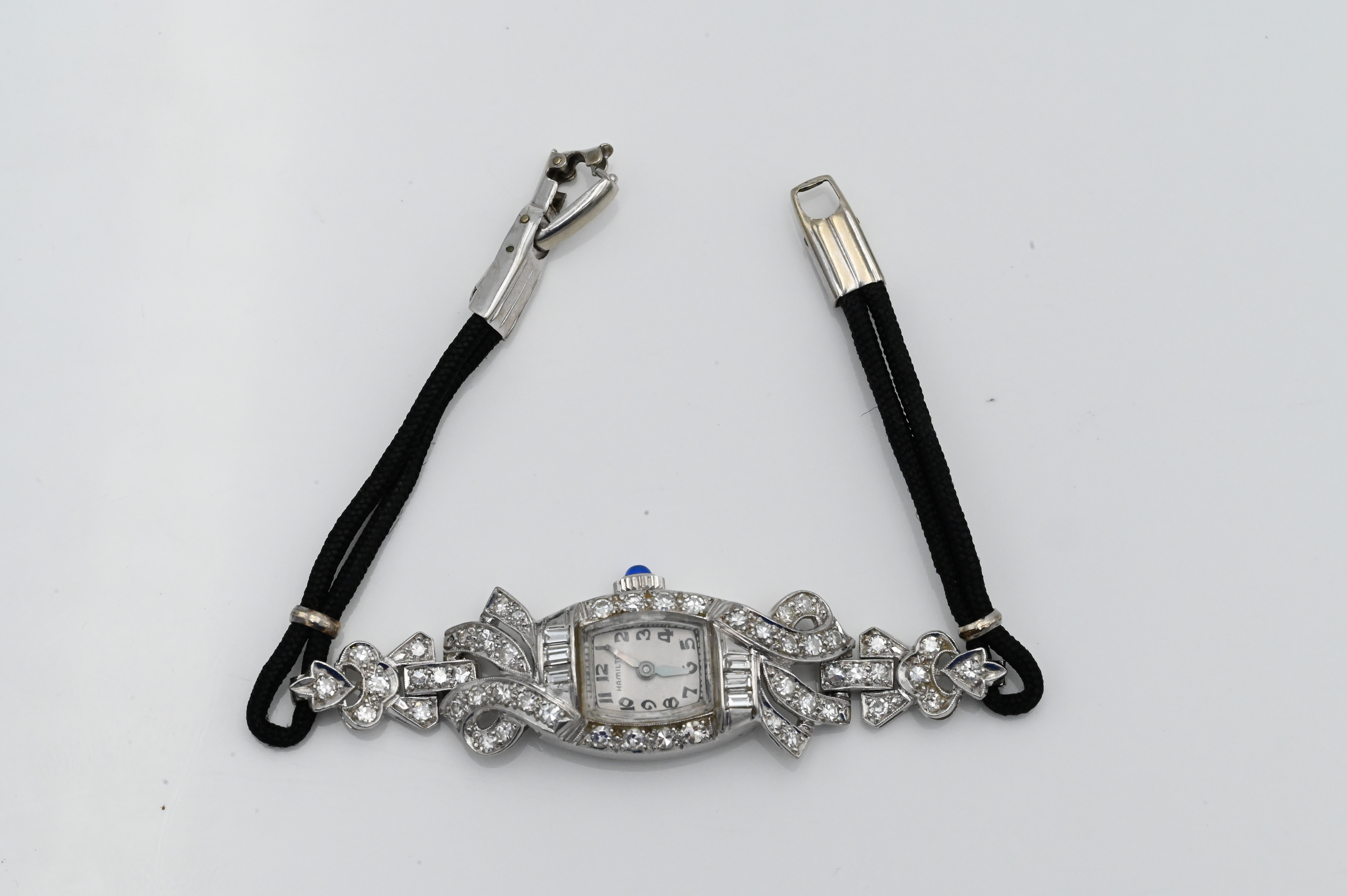 Lot 37: Hamilton Platinum and Diamond Ladies Retro Wristwatch
