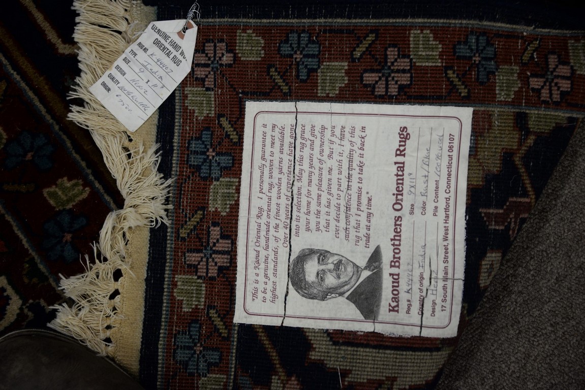 Lot 37: Heriz design Oriental carpet Originally from Kaoud Oriental Rugs, cost 7,500. 8’11 x 11’9