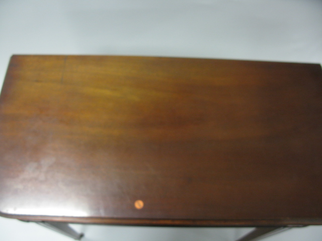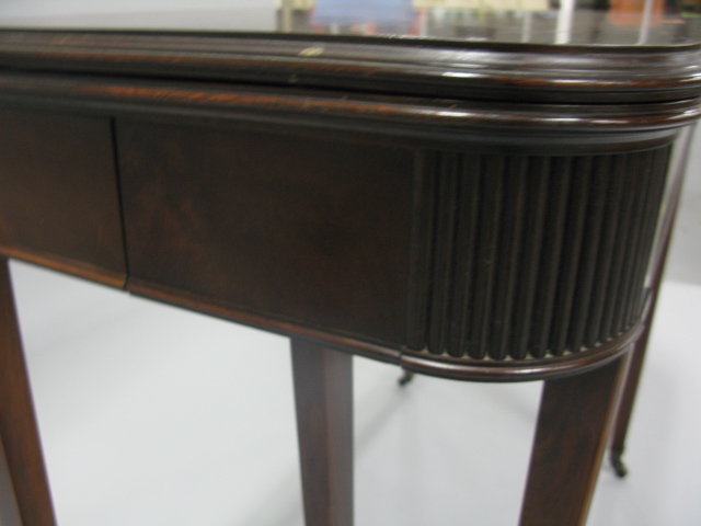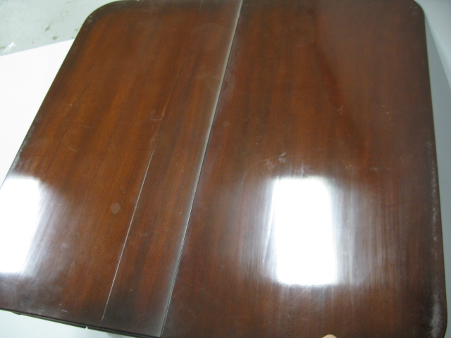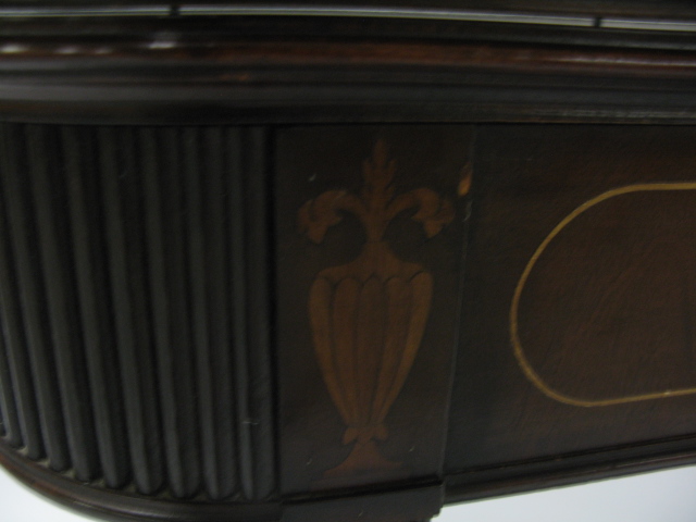 Inlaid mahogany dining table in the form of a console table, three extra leaves.